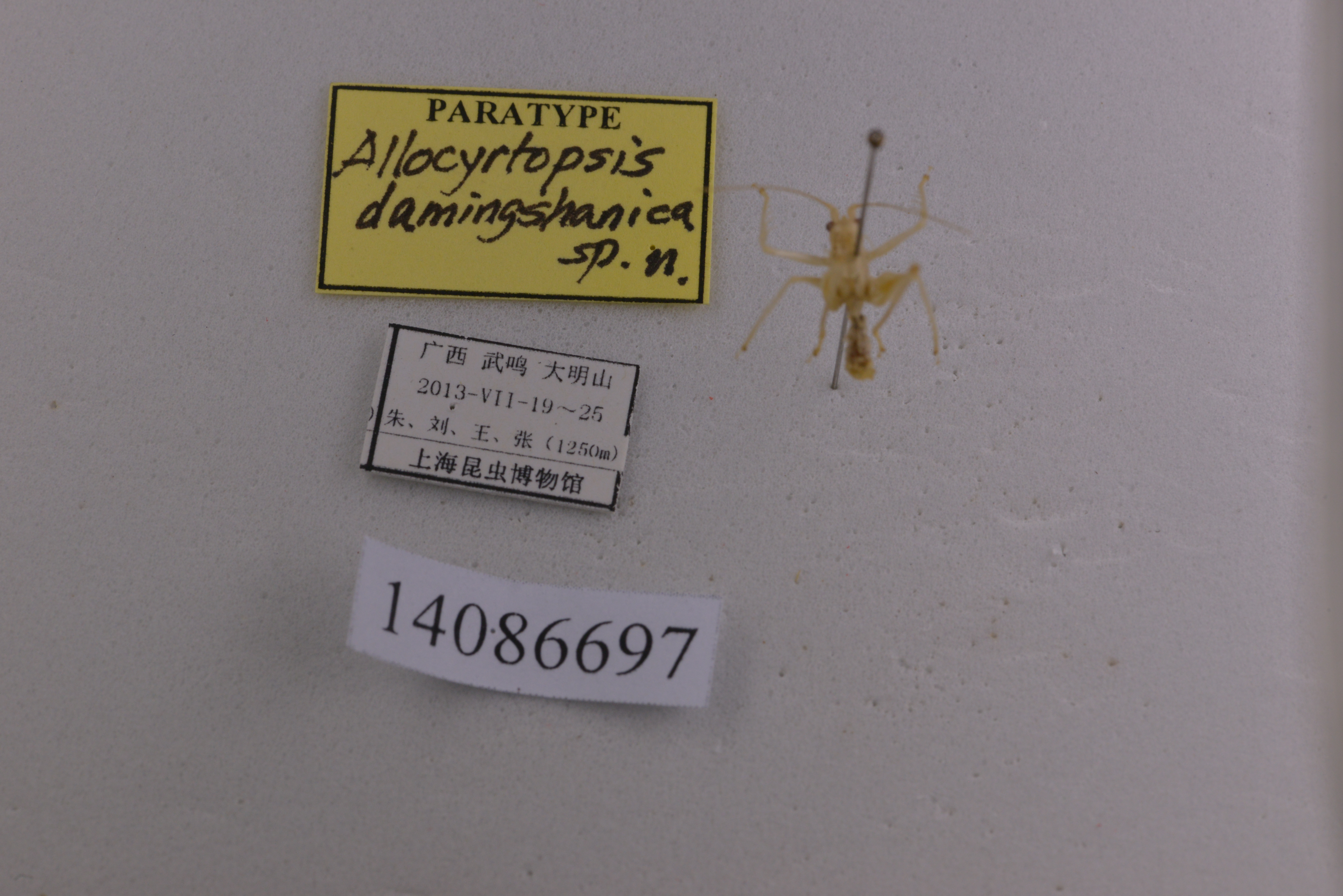描述:Male. Fastigium of vertex conical, apically blunt and dorsally furrowed. Head hypognathous, last