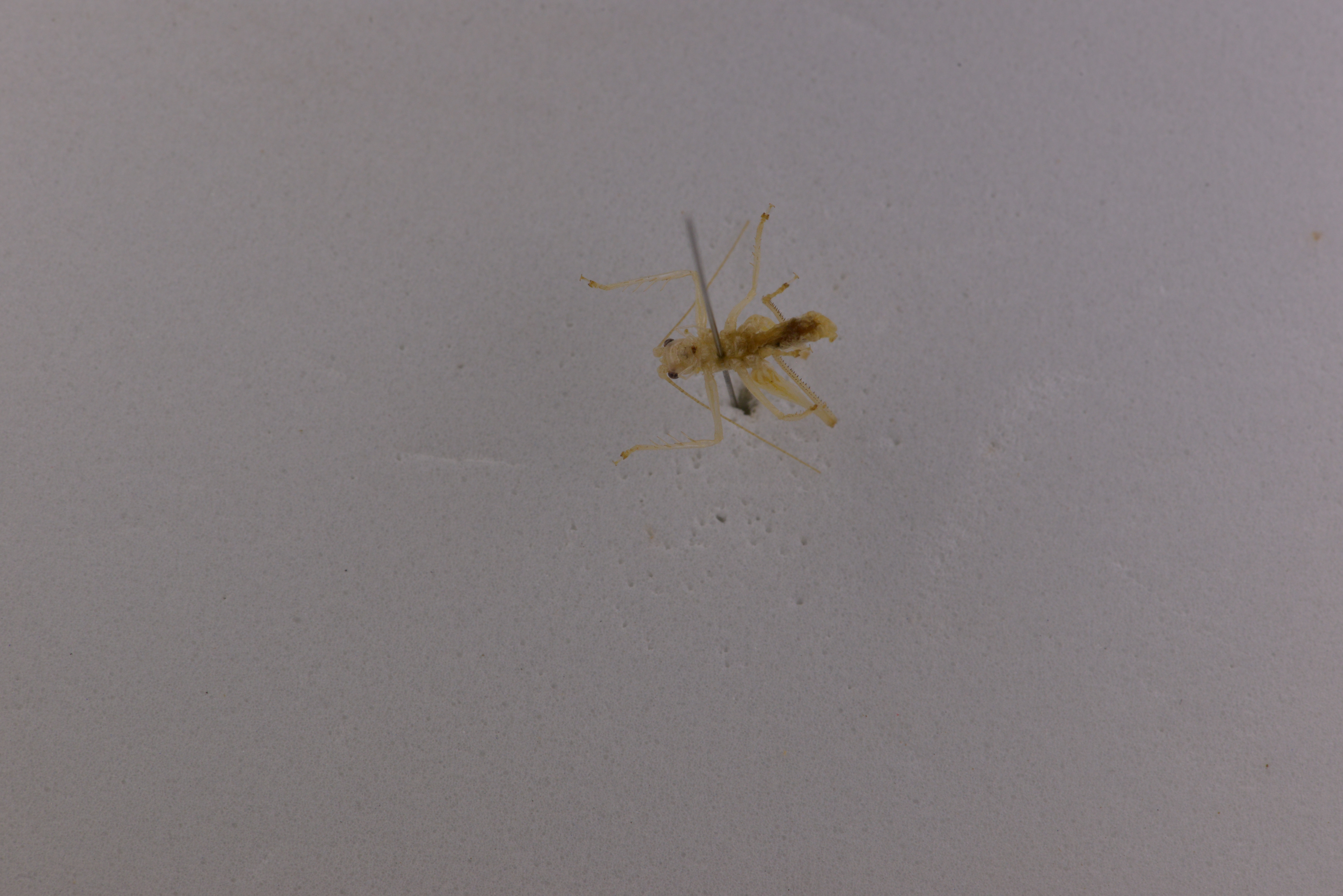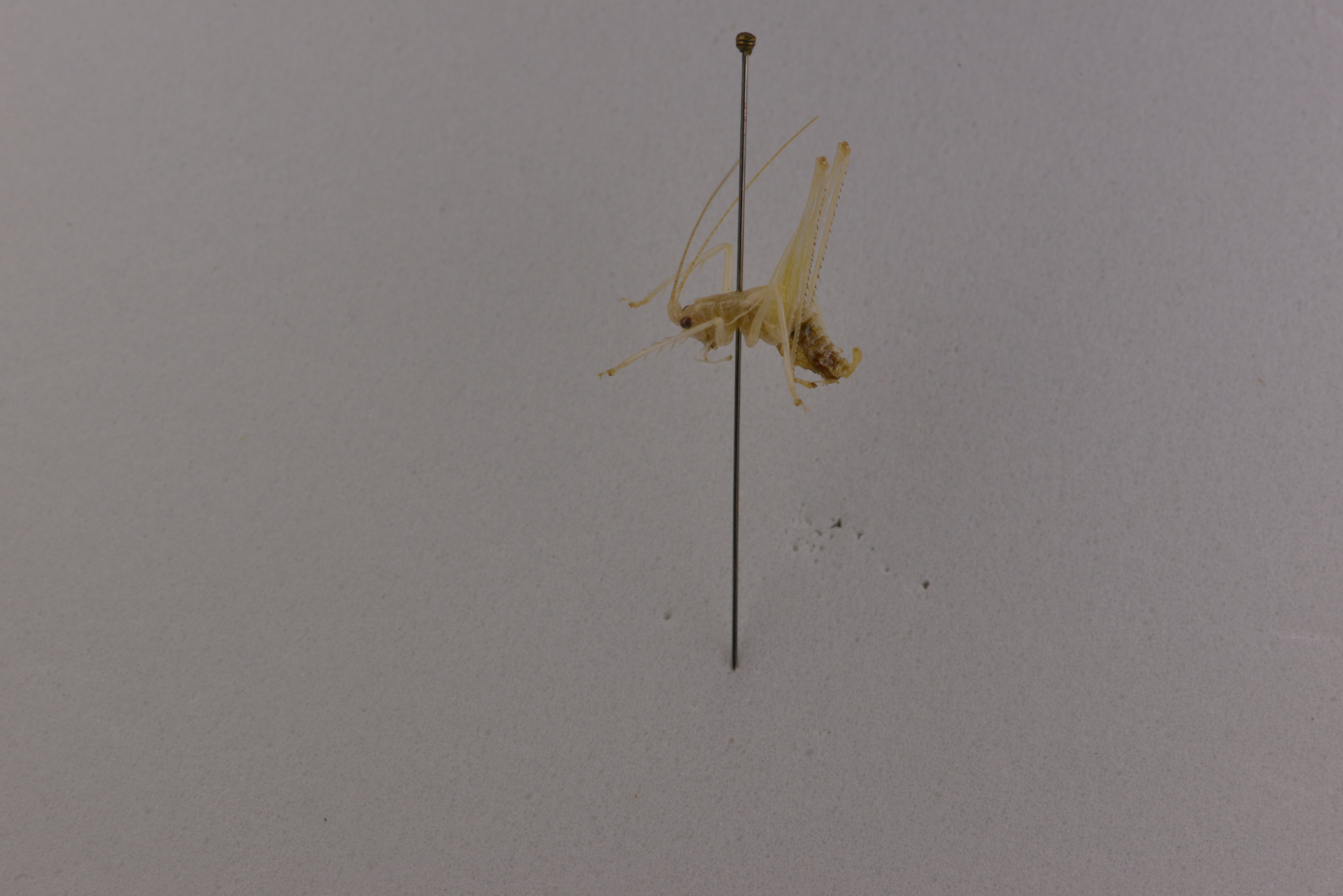Thoracic auditory spiracle totally exposed. Tegmina short, too transparent to notice while alive, hind margin