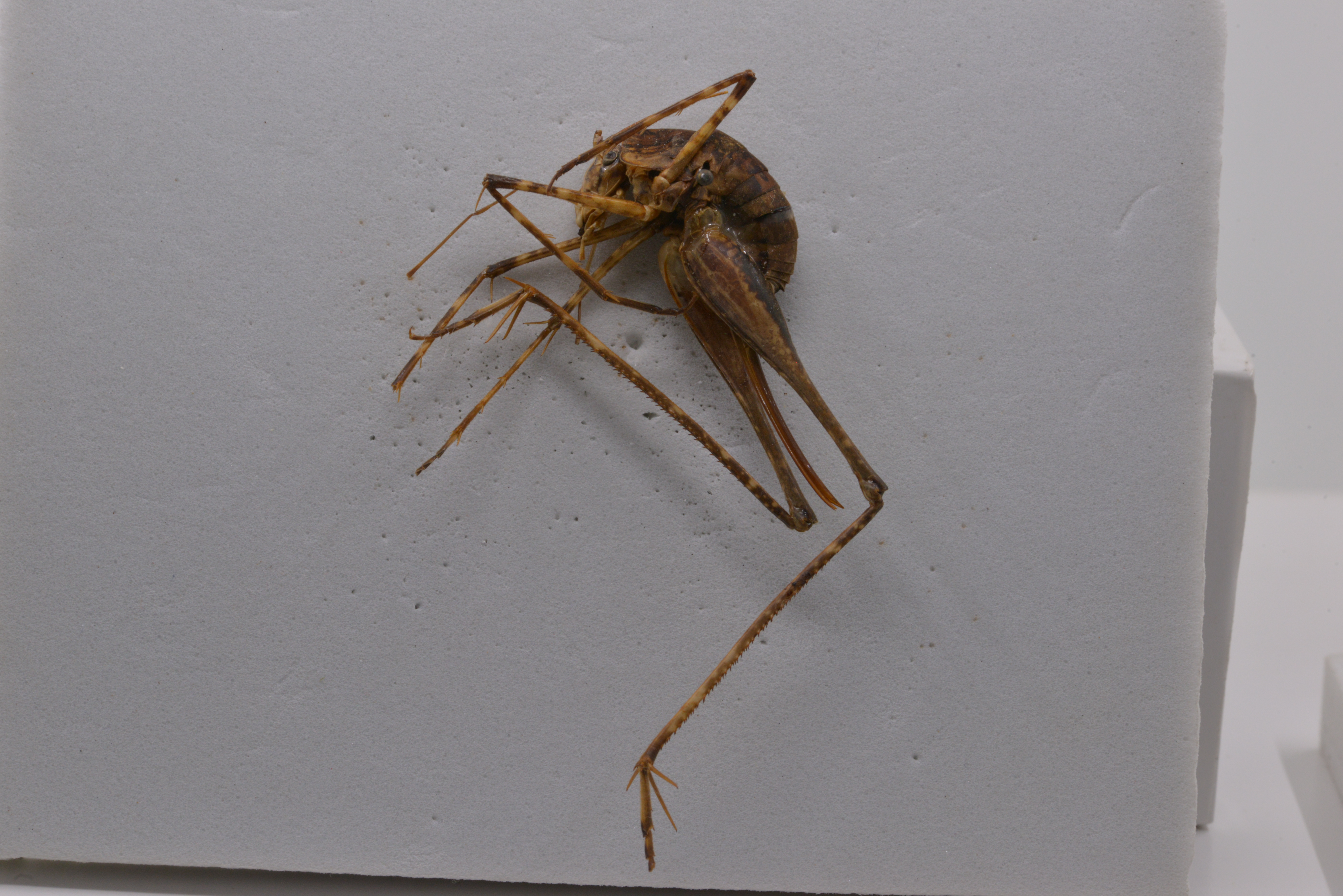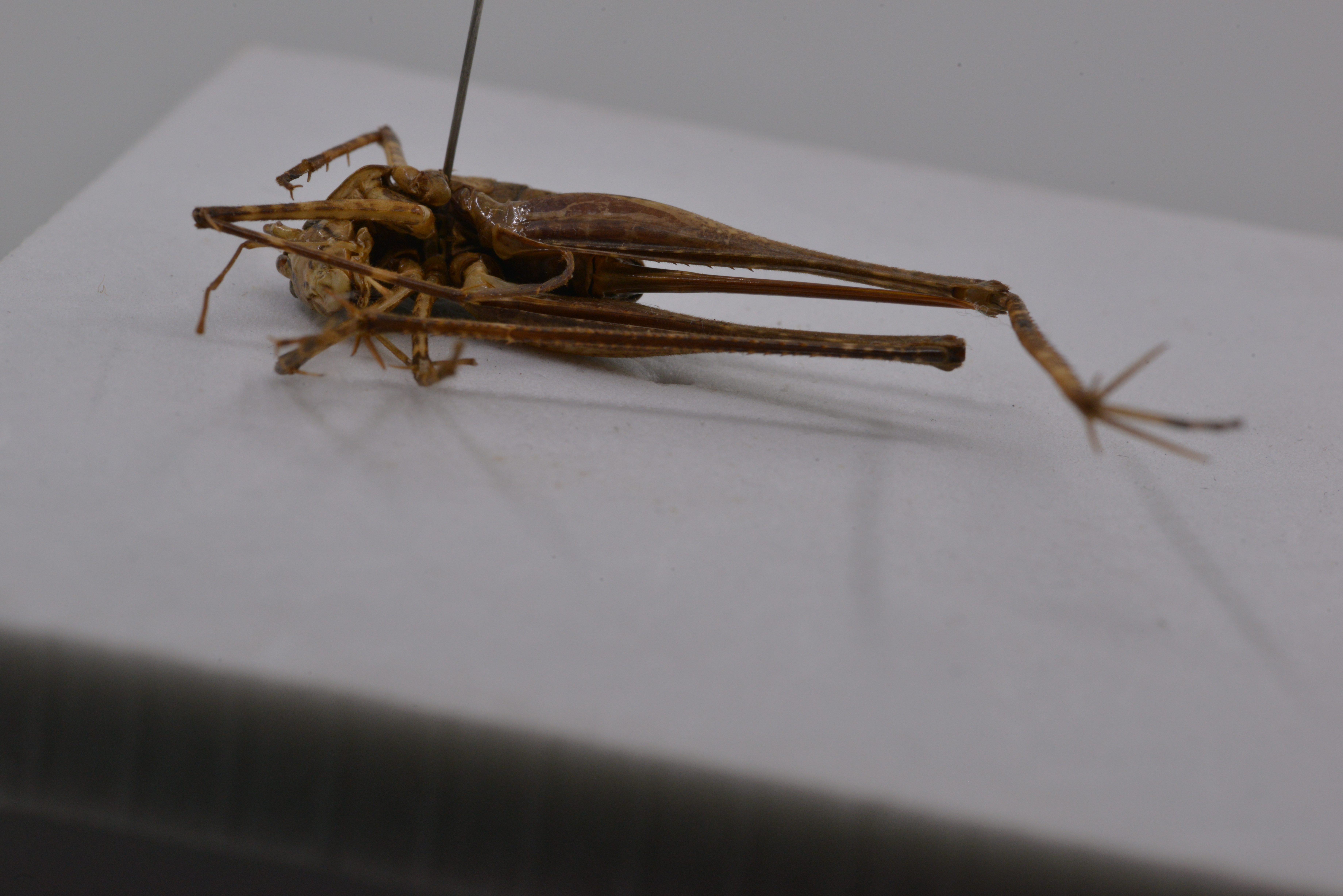 tubercles. Legs long and slender; fore femora about 2.2 times as long as the pronotum, beneath unarmed, internal
