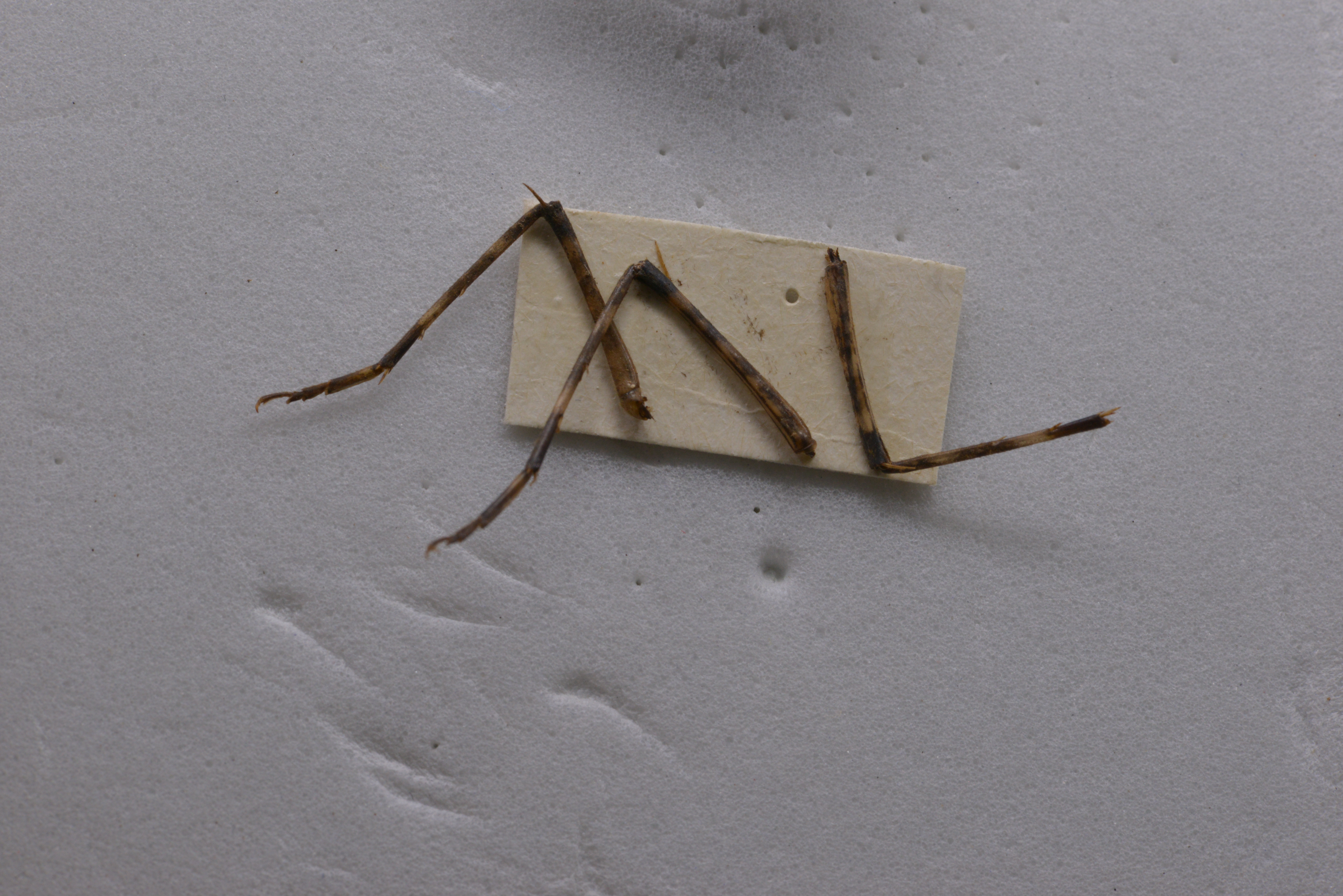 between the paired apical spurs with a short spur. Mid femora with a long movable spur on the genicular lobe; mid