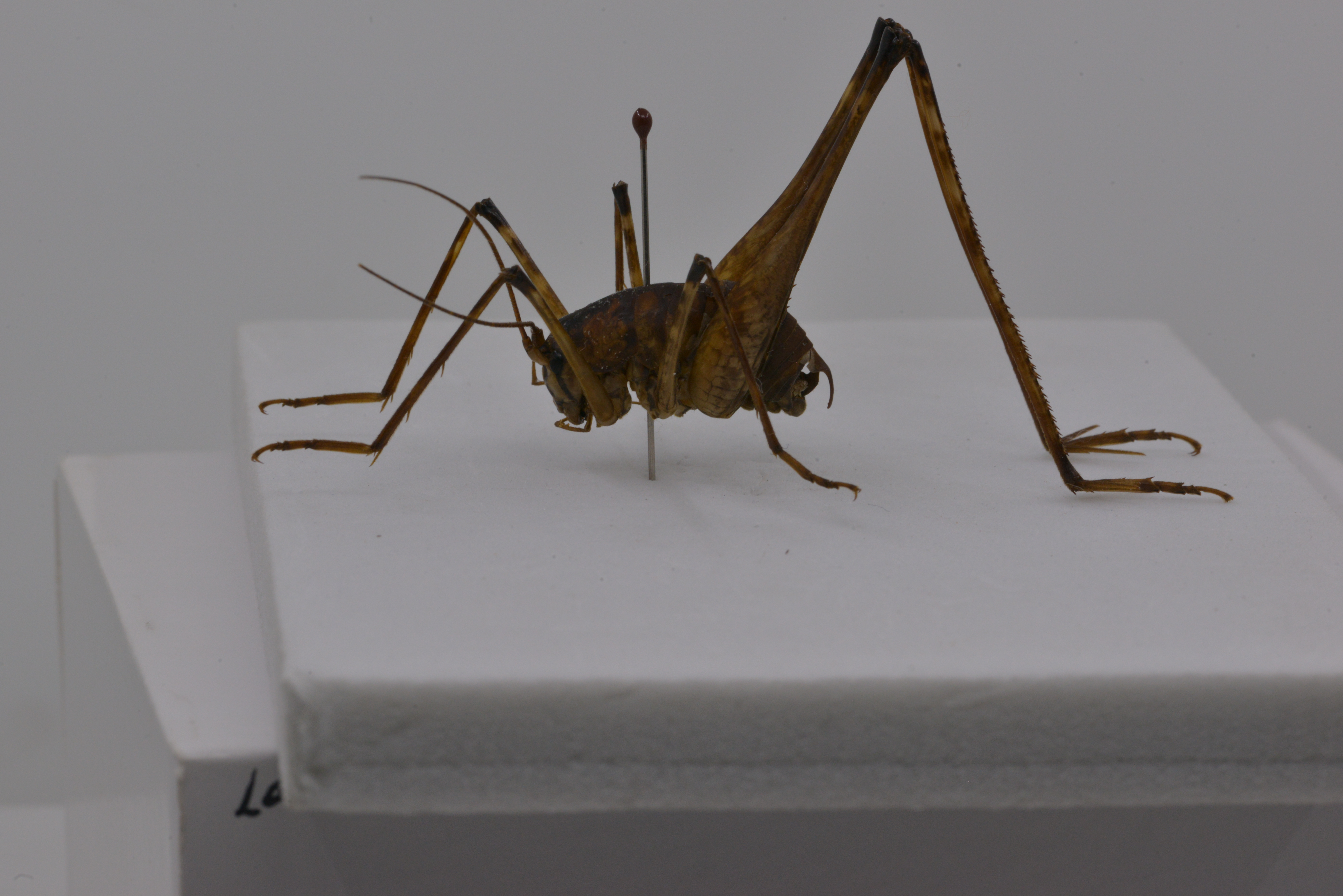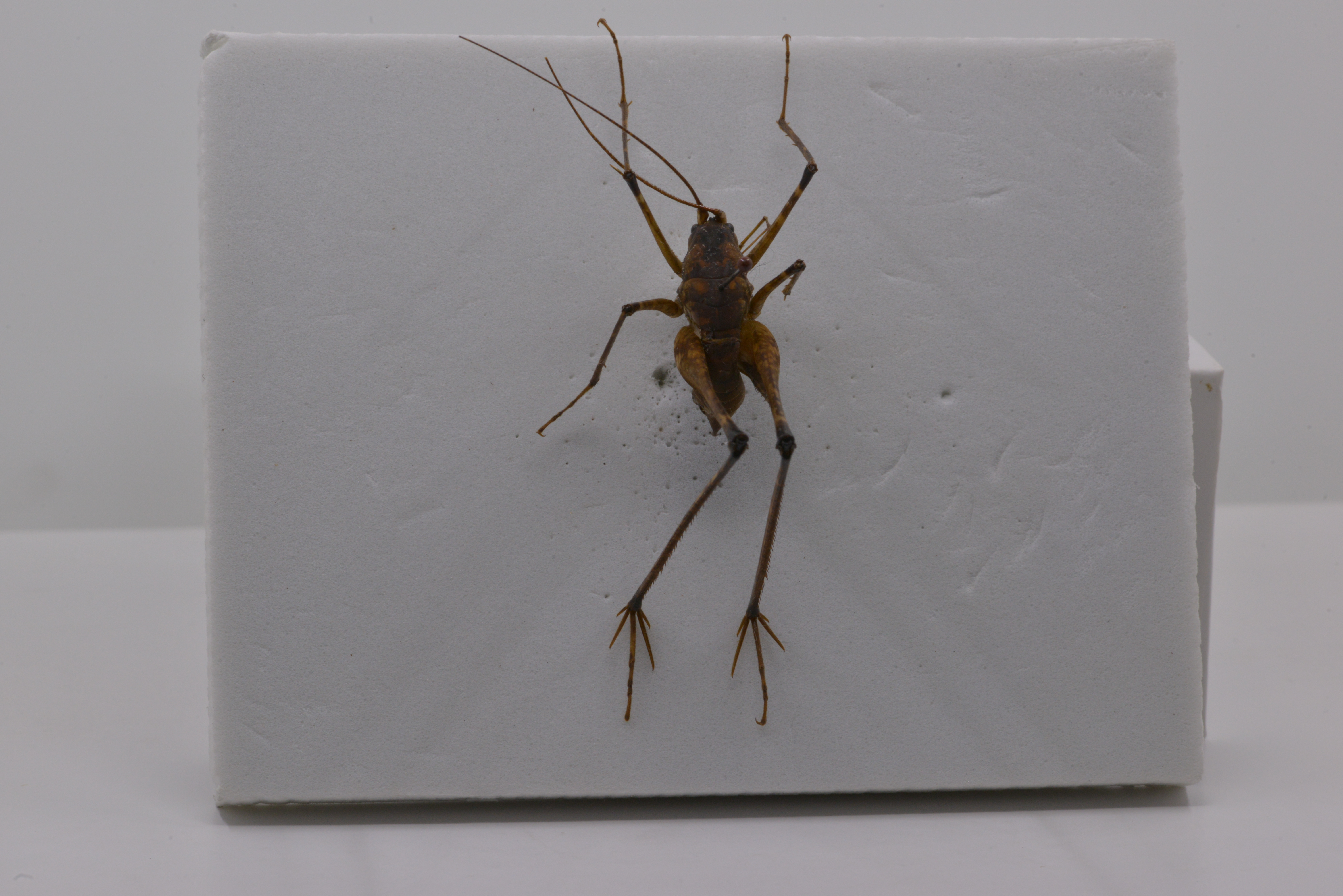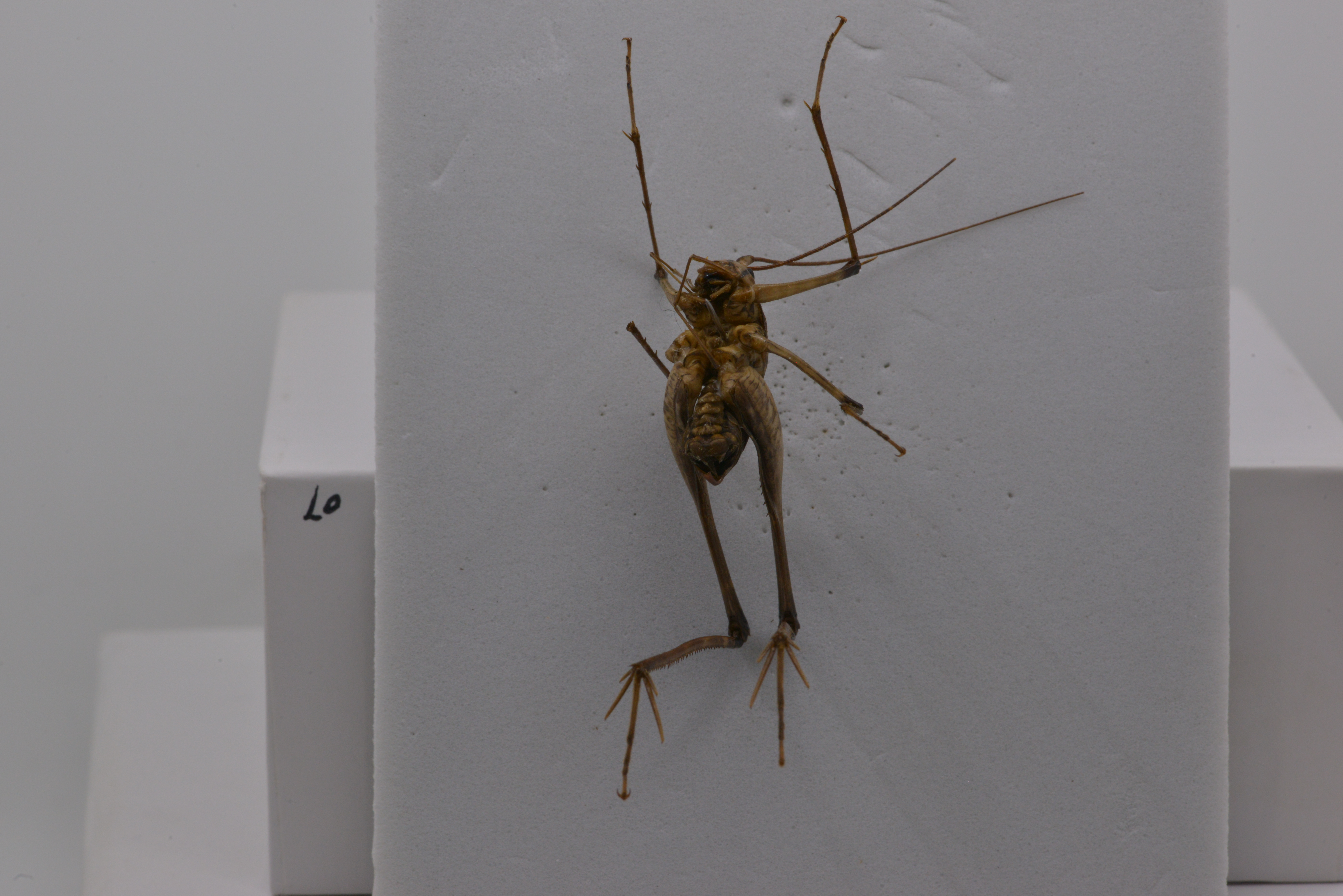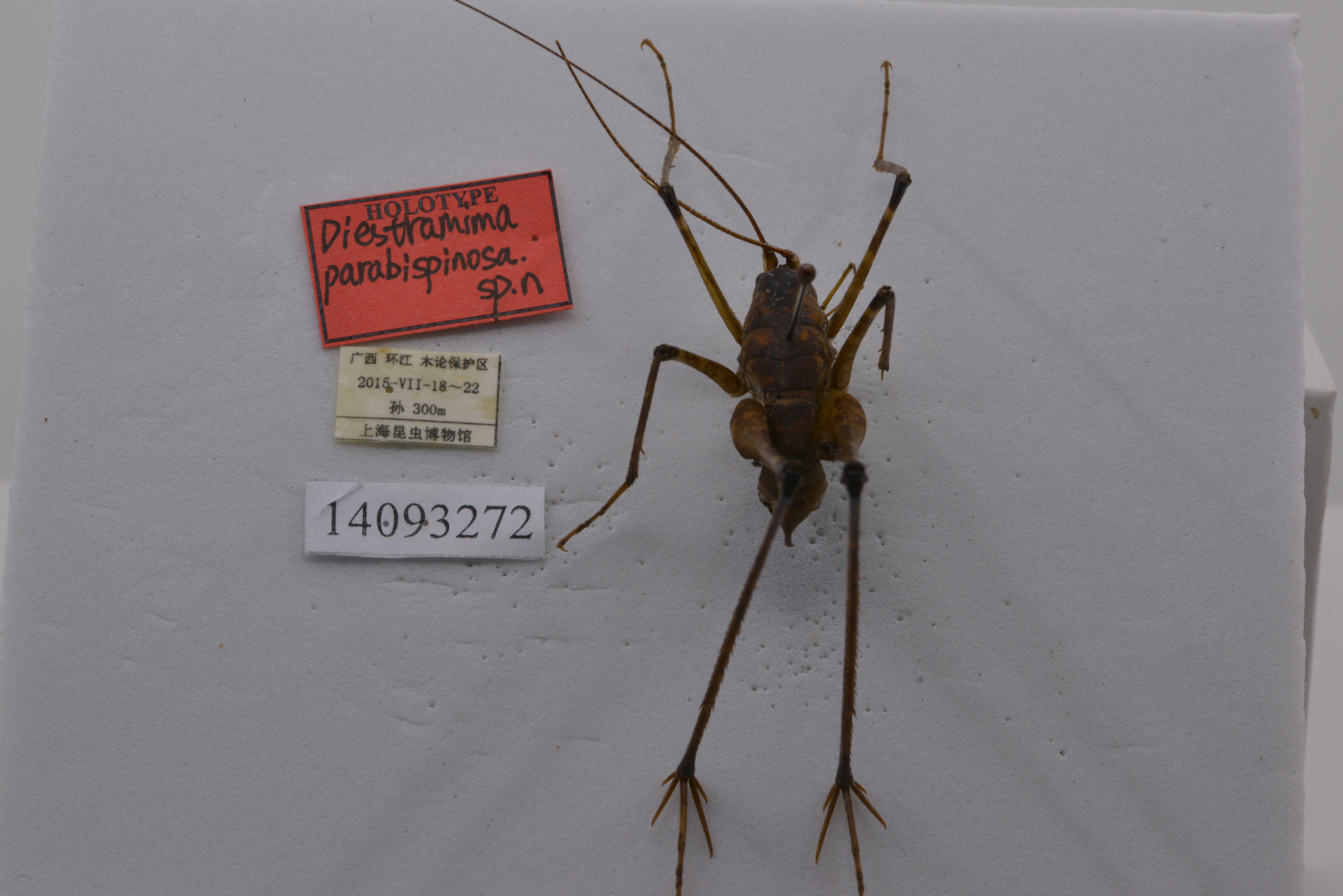 描述:Male. Body large sized. Head with fastigium of vertex divided into two conical tubercles. Legs long