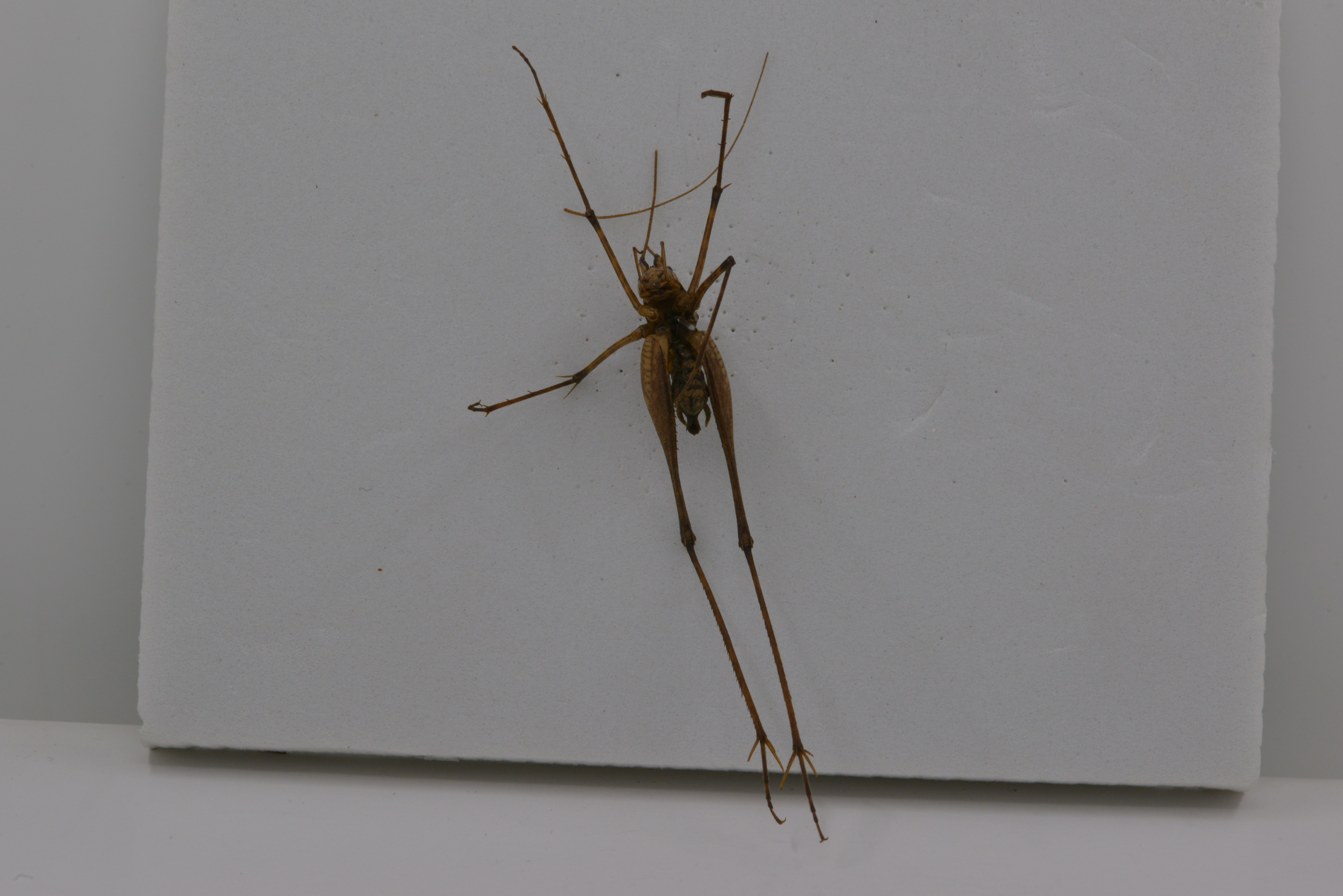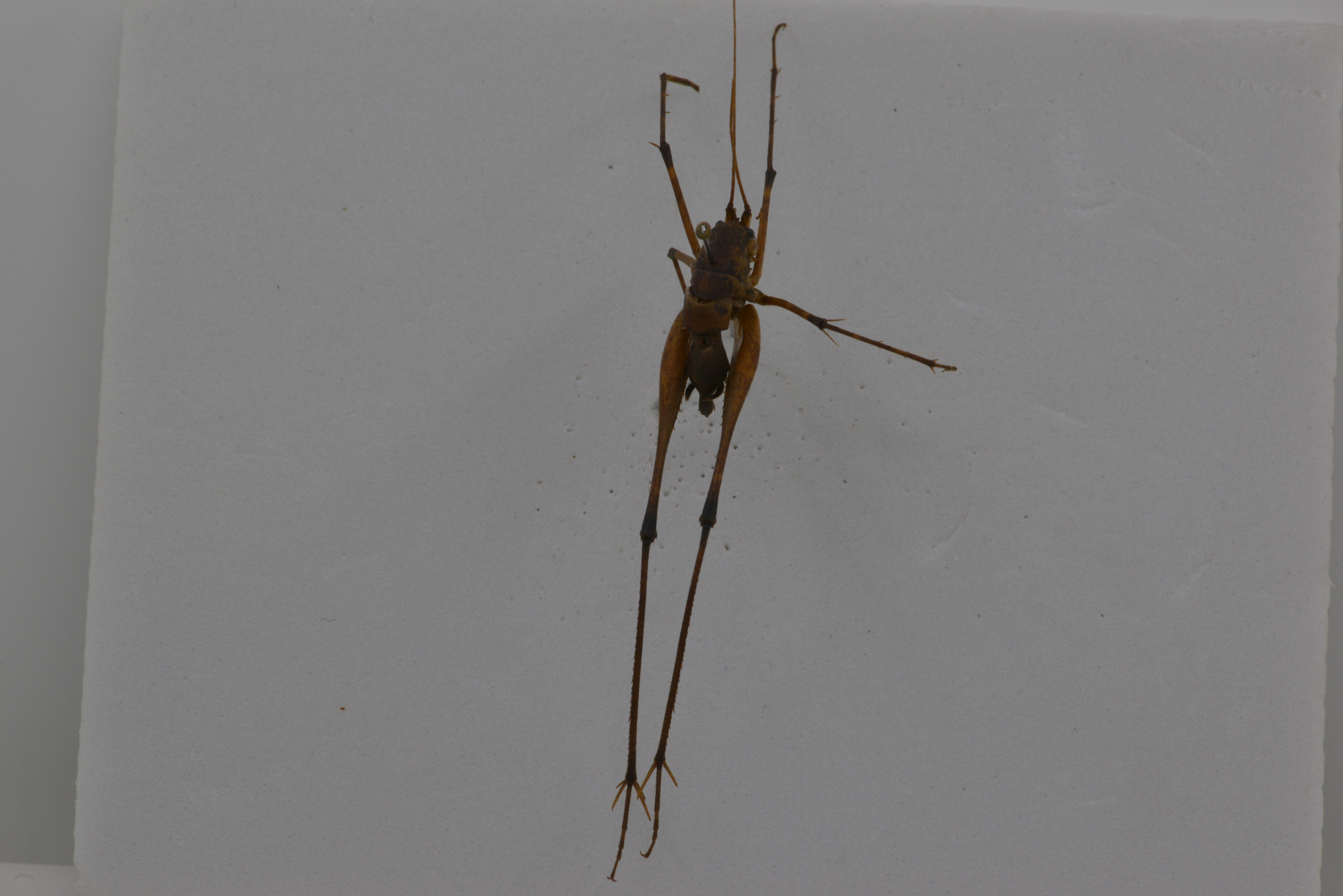 tubercles. Legs long and slender; fore femora about 2.3 times as long as the pronotum, beneath unarmed, internal