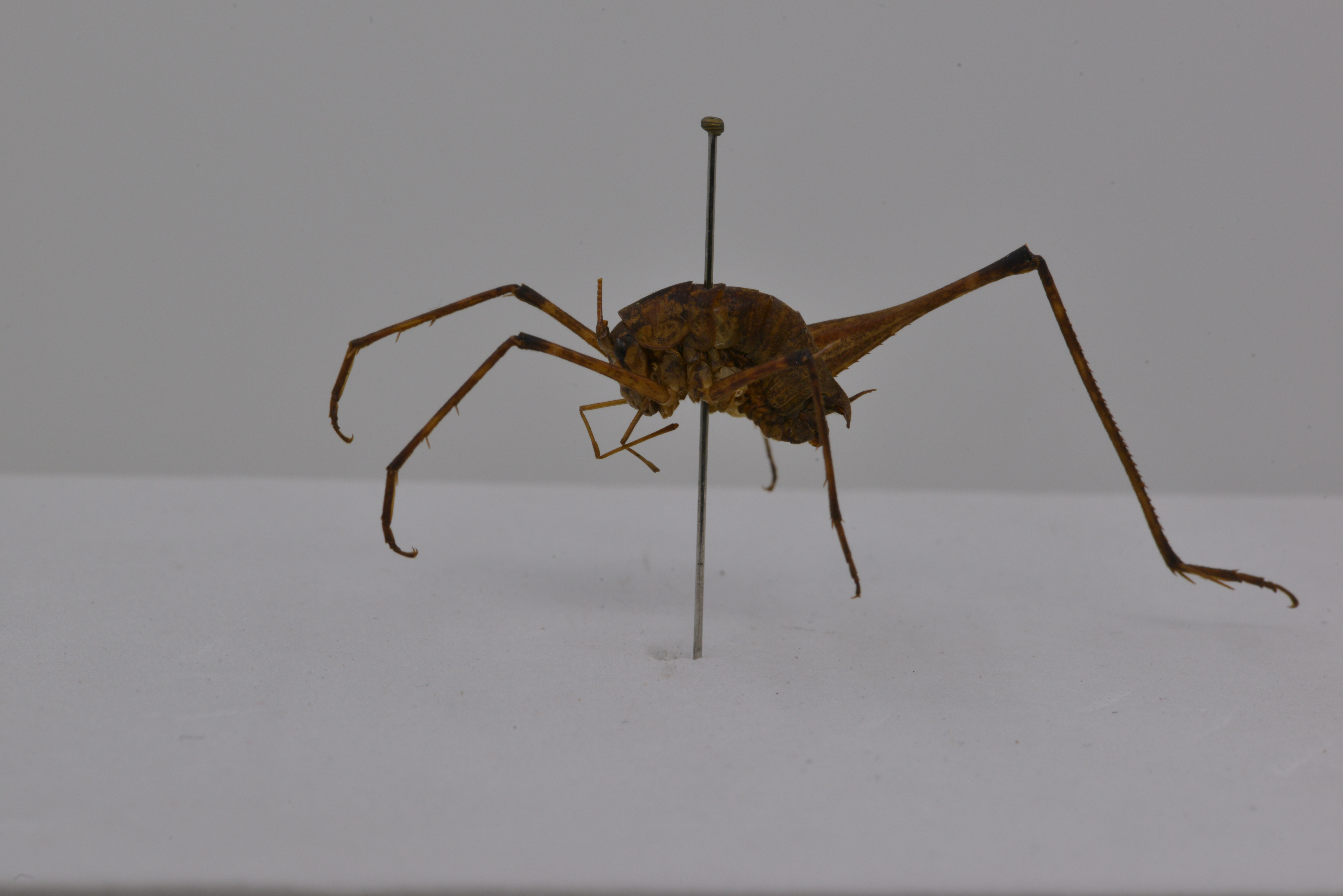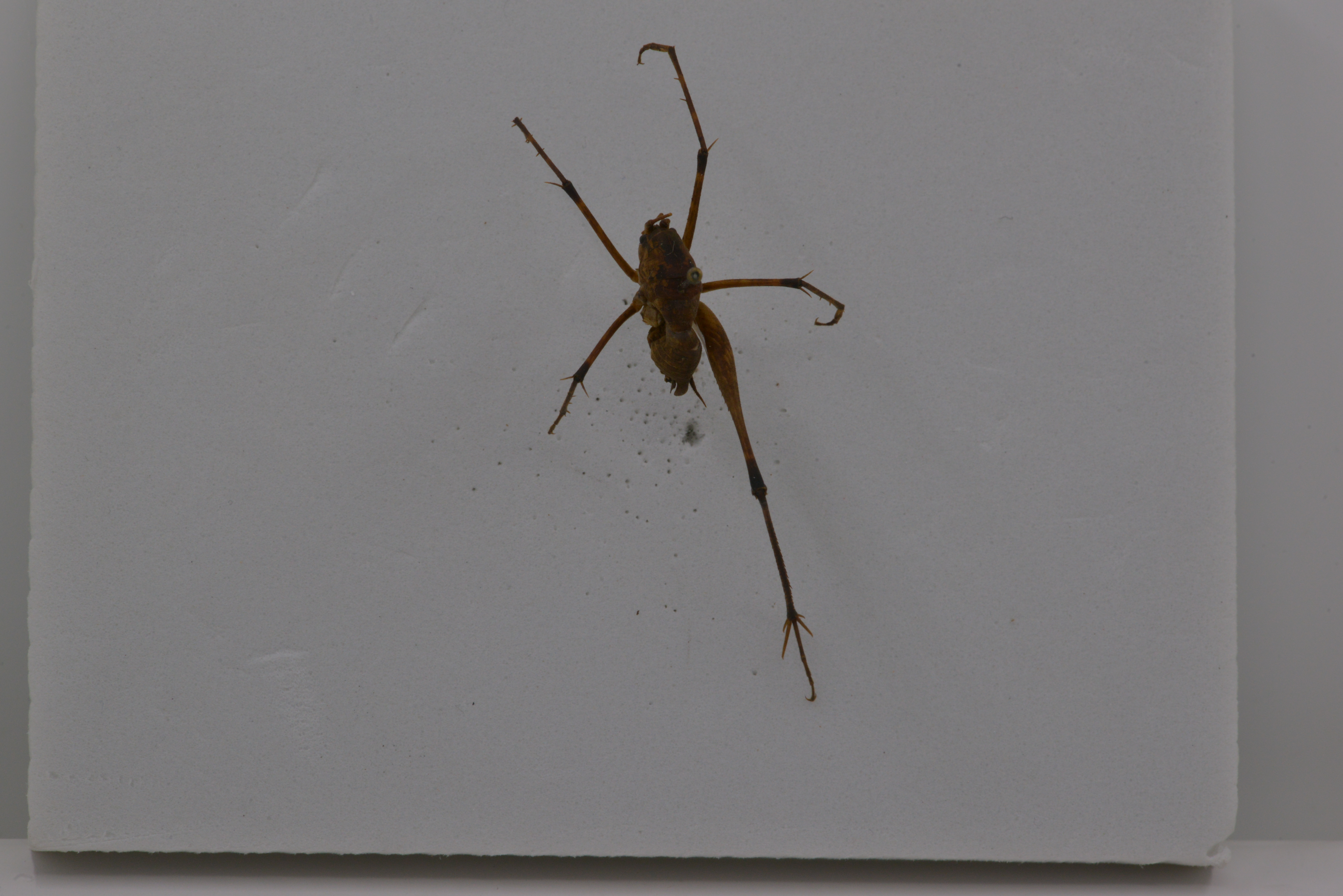tubercles. Legs long and slender; fore femora about 2.3 times as long as the pronotum, beneath unarmed, internal
