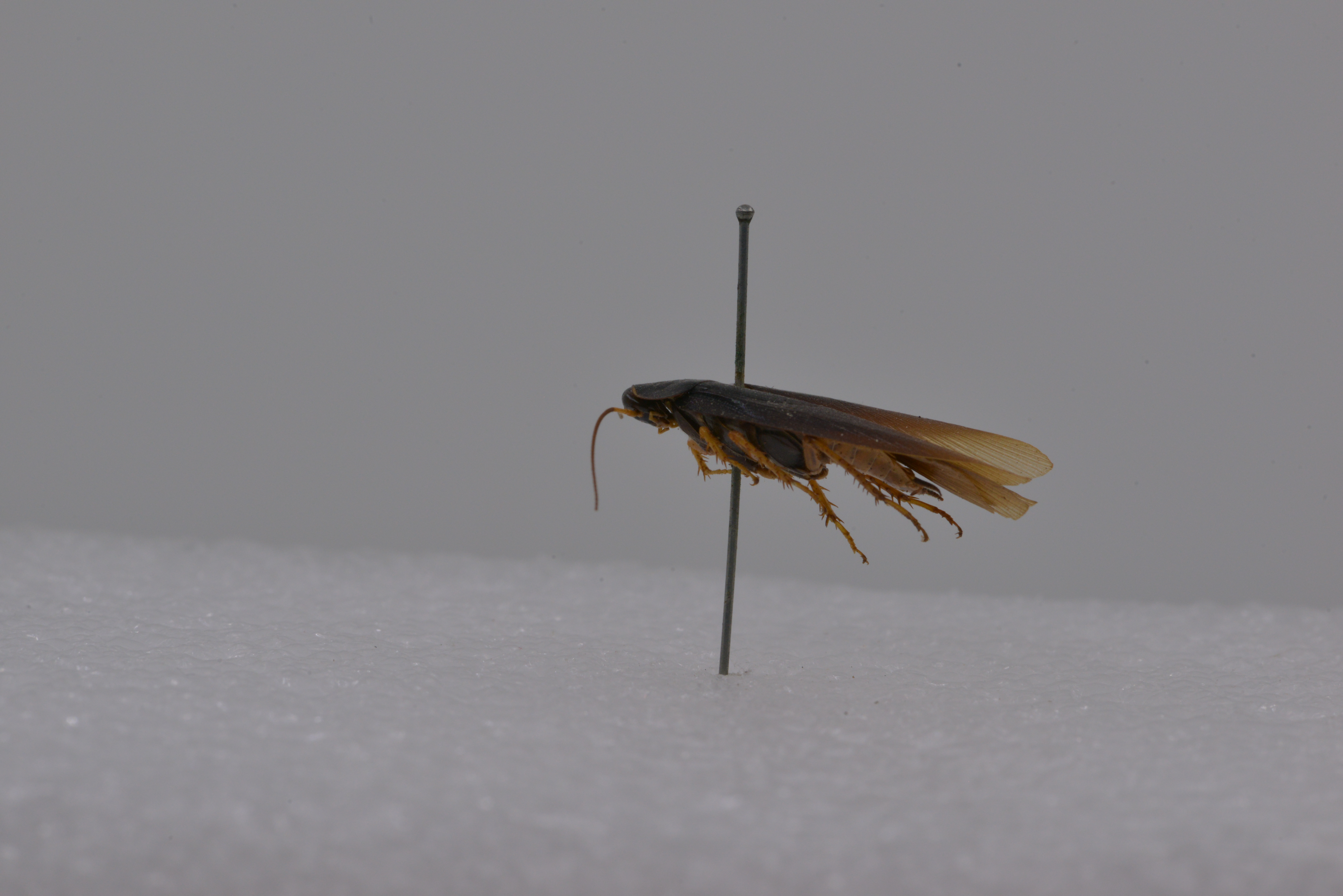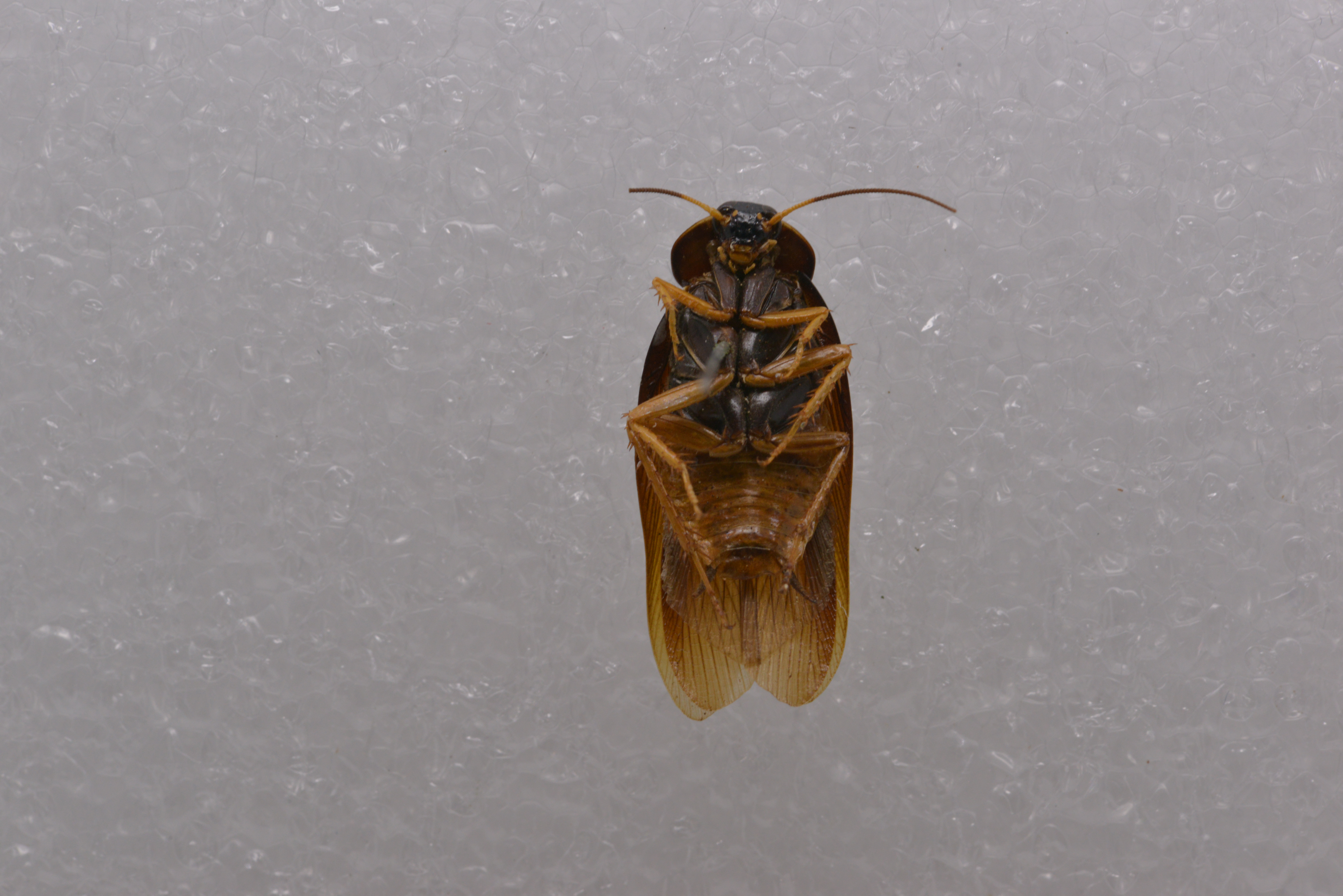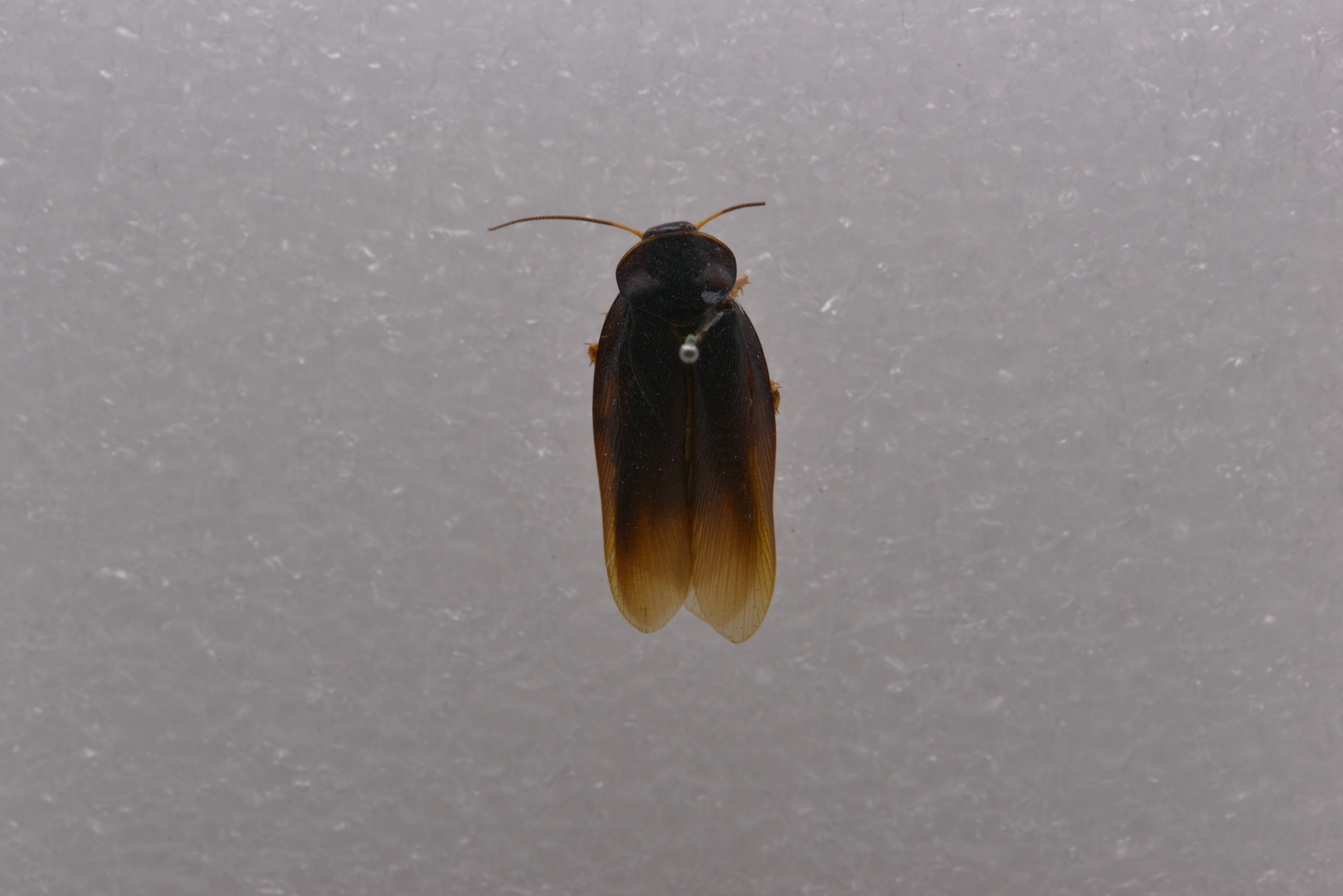 体黑褐色。触角基部橙黄色, 其余黑褐色;前