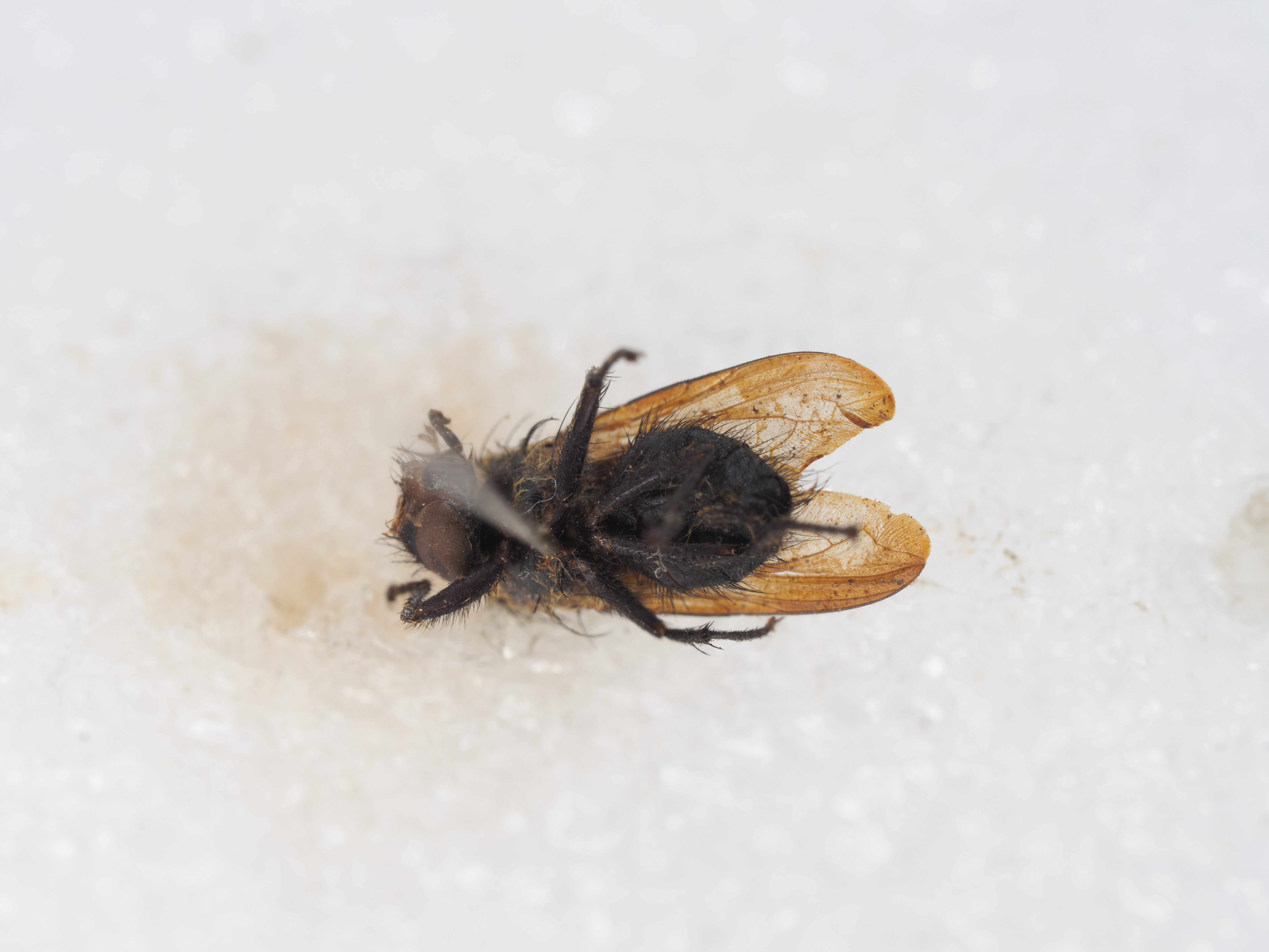 及后气门前肋裸 , 背侧片混生黄、 黑小毛, 翅侧片 、