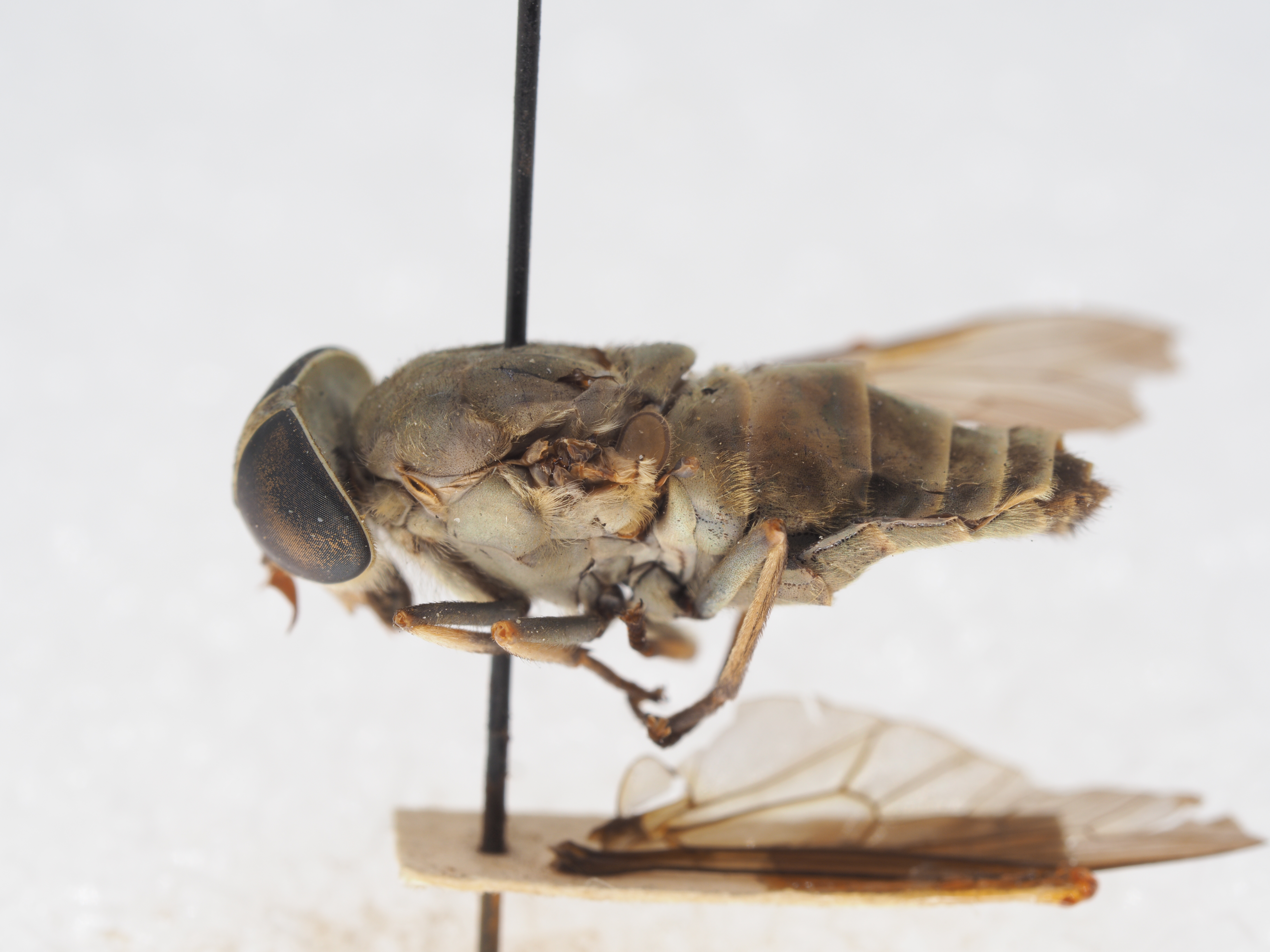 黄色,上端多黑毛,第2、3节橙黄色,第3节第1环节长度约为宽度的2倍,腹缘弧形,背缘近基部1/3处有钝角背突。颚鬃长度为直径3倍,复黒毛及白毛。胸部盾片灰色,无显著纹饰。侧片密复淡黄毛。翅R4脉无附枝。前足腿节黒色,胫节基部约1/2淡黄色,末端1/2及跗节黑色,中、后足与前足纹饰相似,但胫节基部大部淡黄色。腹部背板灰棕色,中央具一条连续的,但轮廓不很显著的灰色纵纹,每节具末端浅灰色带,第2-3节两侧有但不显著的浅灰色斑痕。腹板深灰色。