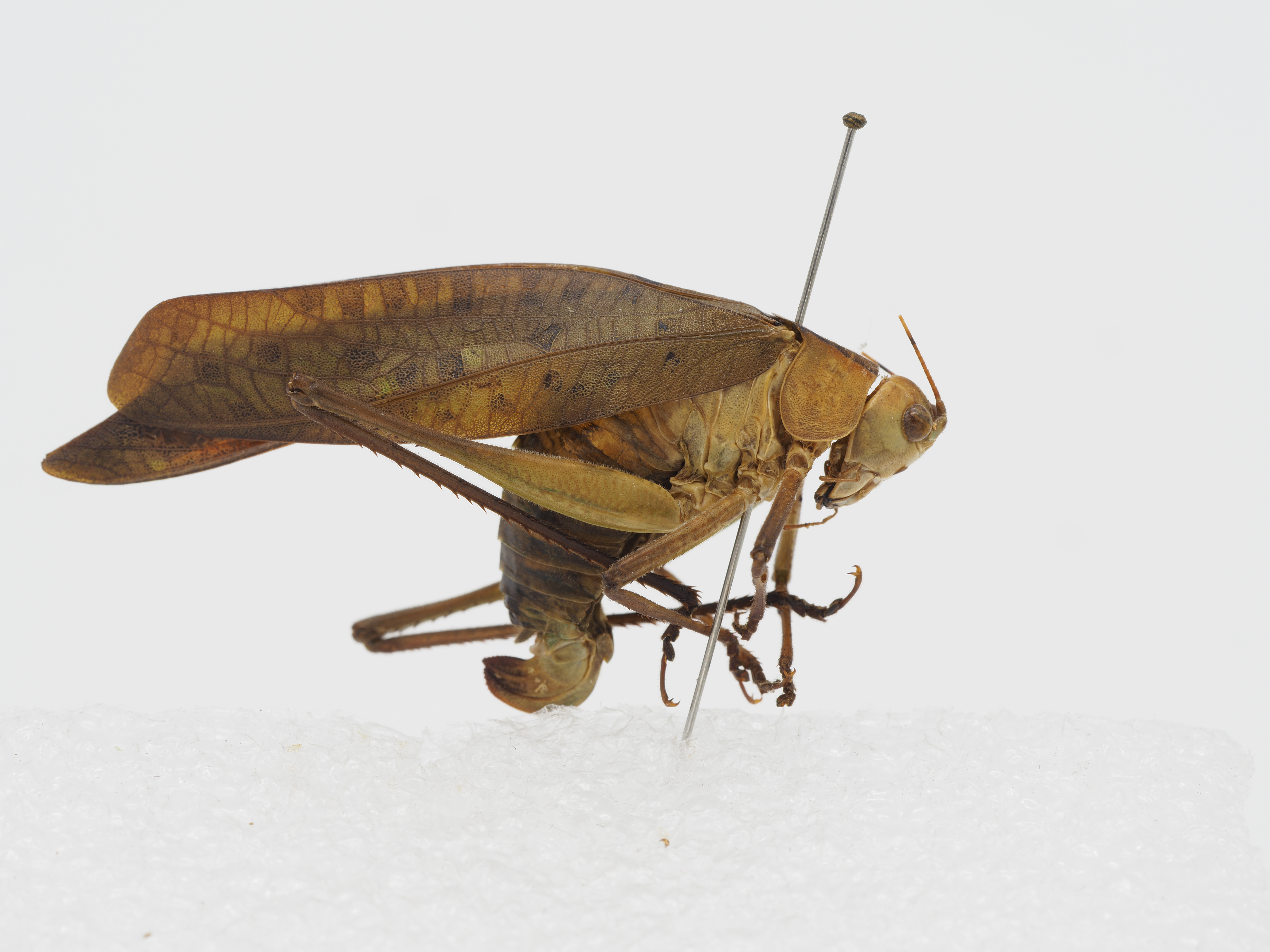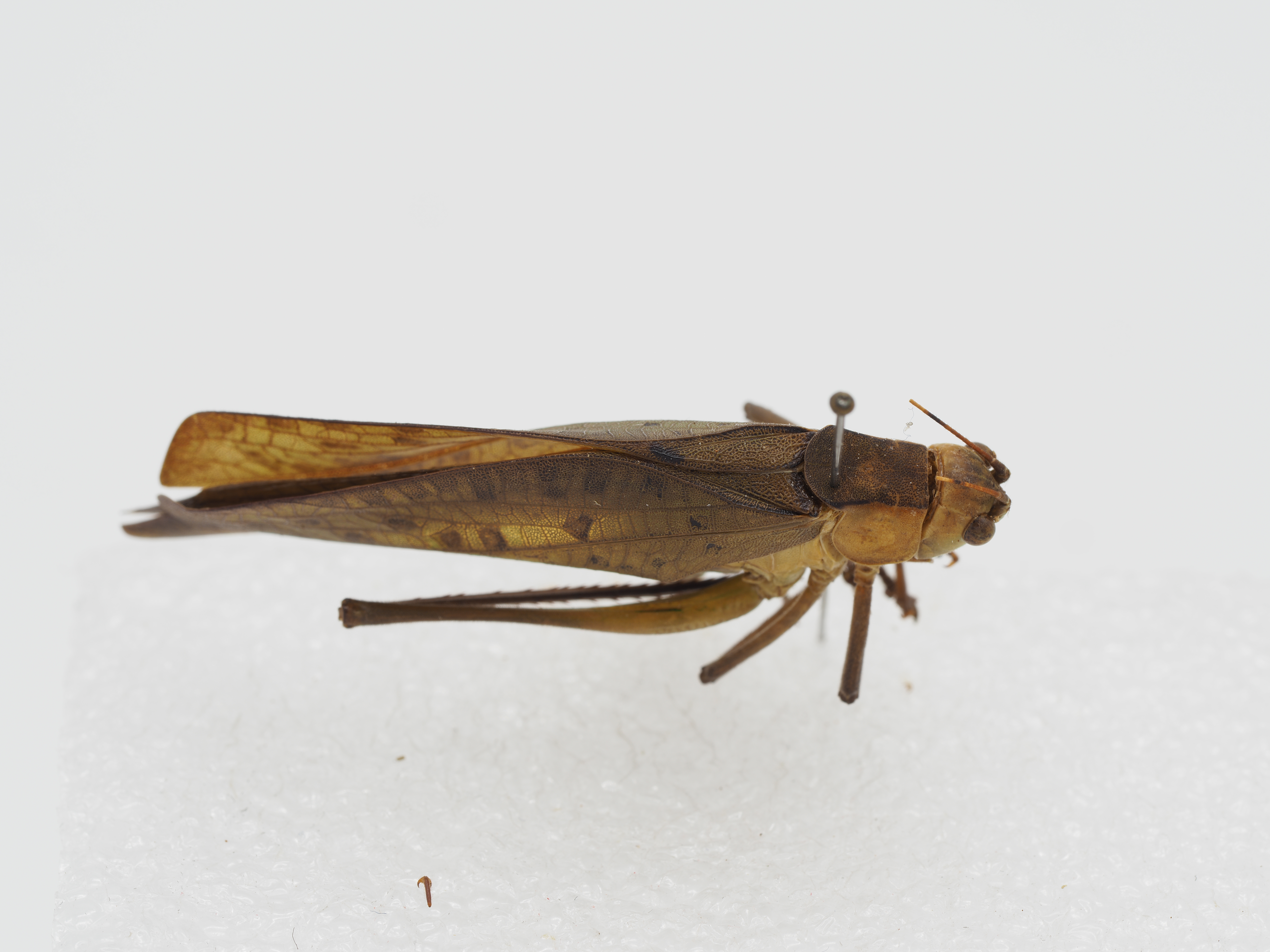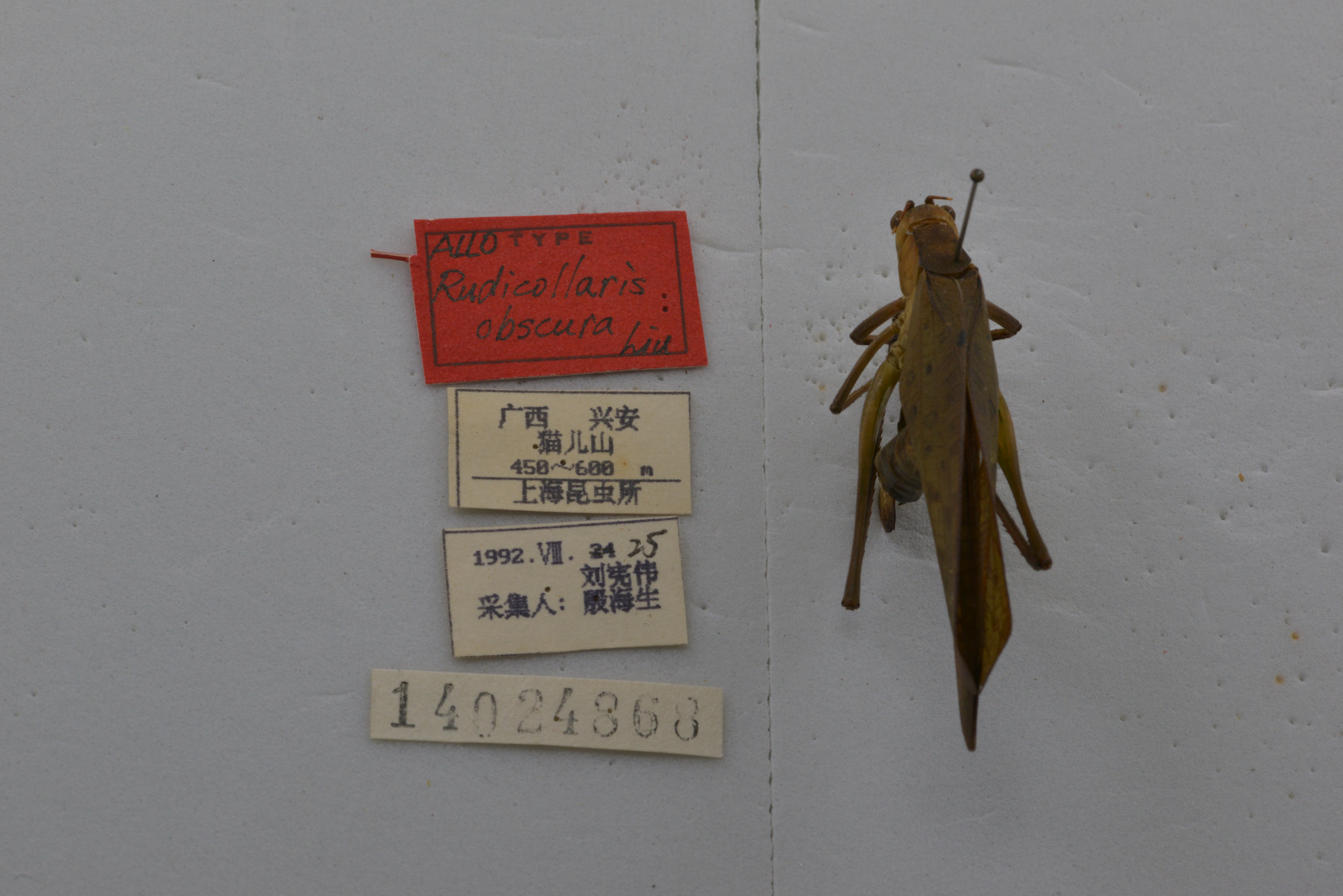 描述:雄性颜面和前胸背板具明显的粗刻点。前翅远超过后足股节端部,端部斜截形,表面缺光泽;c脉不明显,Sc脉和R脉从基部分开,除近端部之外较紧密地靠拢Rs脉从R脉中部之前分出,分叉。后翅长于前翅。前足基节具刺。前足股节腹面内缘具8~9个刺,中足股节