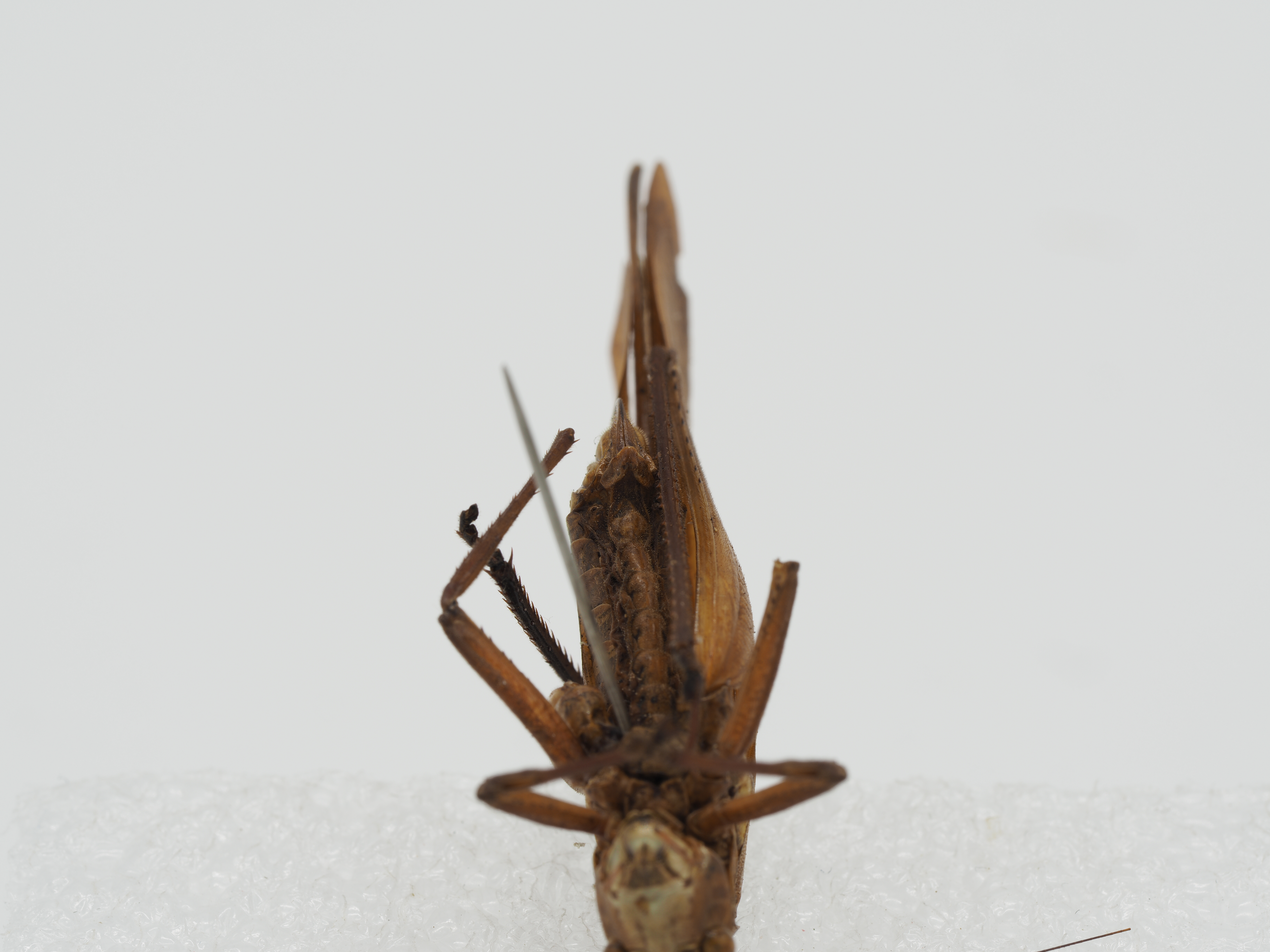 腹面外缘约具6~8个刺,后足股节腹面内缘具6个刺,外缘具9个刺,膝叶端部缺刺。第10腹节背板后缘截形。尾须圆柱形,略内弯,端部具极微小的刺。下生殖板延长,后缘具三角形凹口;腹突圆柱形,长约为宽3倍。