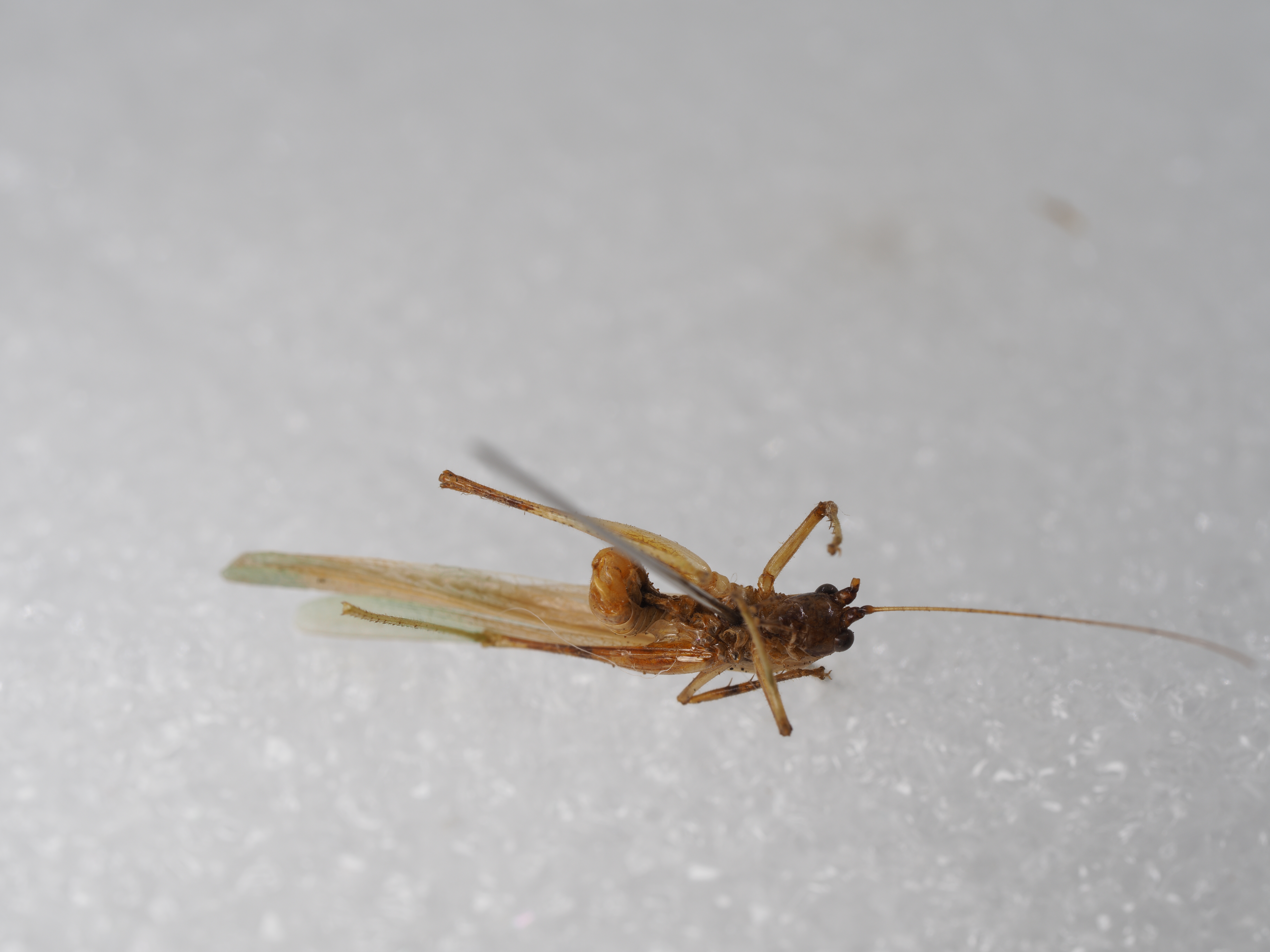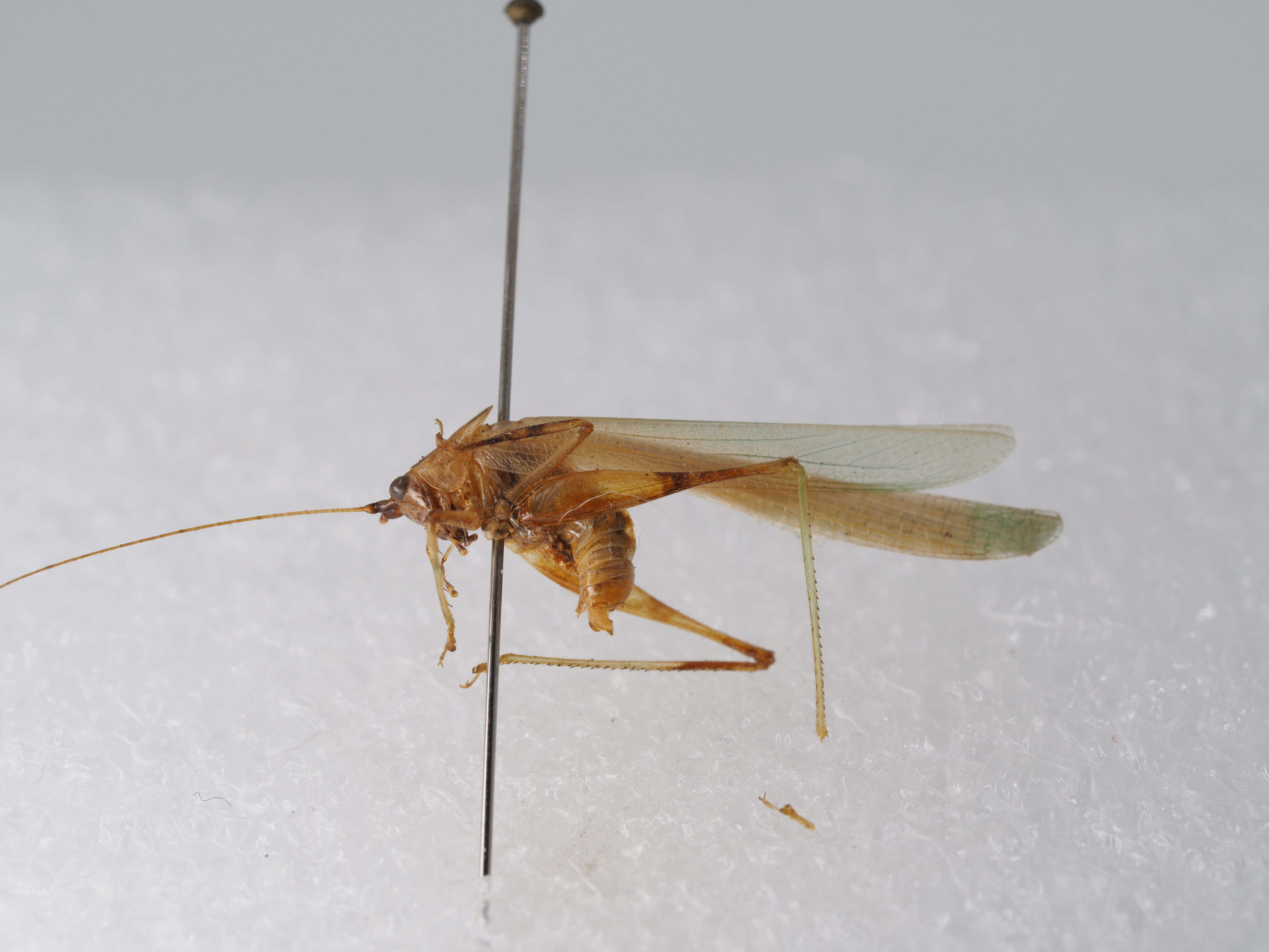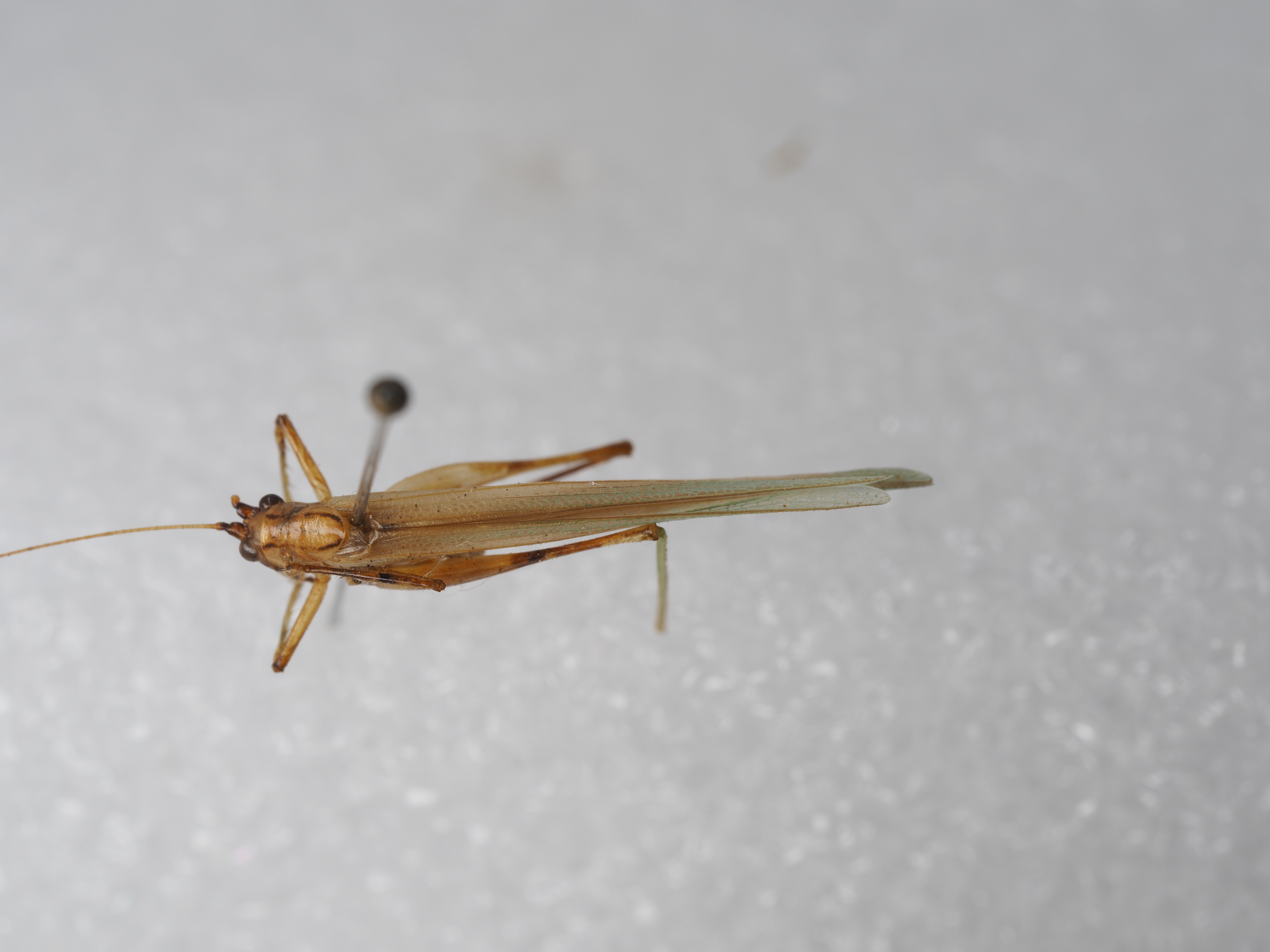 描述:雄性头顶略鼓,颜顶角非扁平,中央具1纵沟。下颚须末节与前节约等长。前胸背板侧板较深,具明显的肩凹。胸听器大,不被侧板覆盖。前足基节具刺,前足胫节具3个外缘剩,4个内缘刺和1对端距;中足胫节具4个外缘刺,3个内缘刺和1对短距;后足股节下膝侧片端圆,胫节端部具1对背距和2对腹距。第10腹节背板后缘具2个分离的突起。尾须内腹叶后端角向后突出,尾须端部强内弯。下生殖板