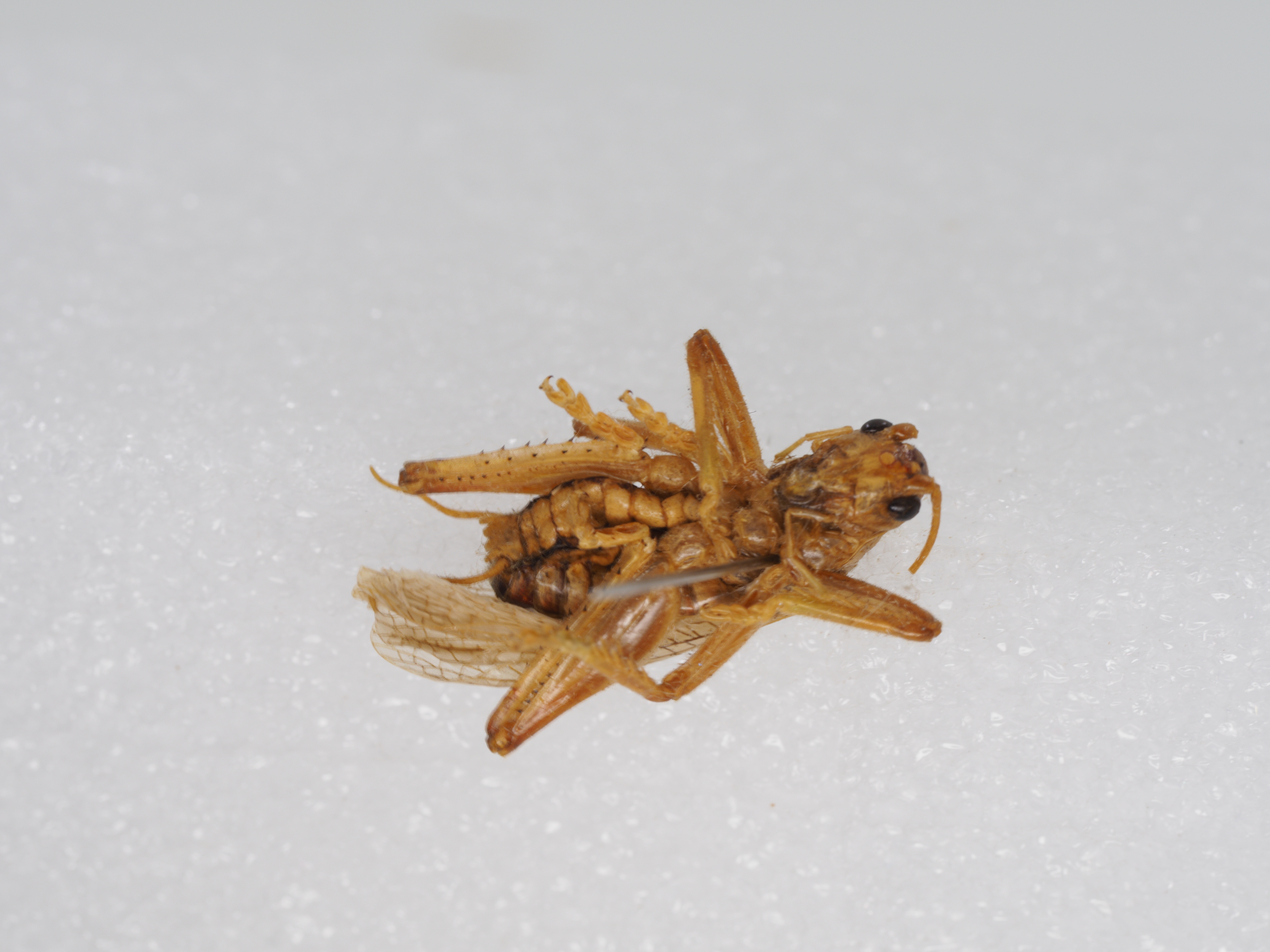 体黄褐色。单眼黄色 ,复眼、腹部末端及后足刺暗黑色