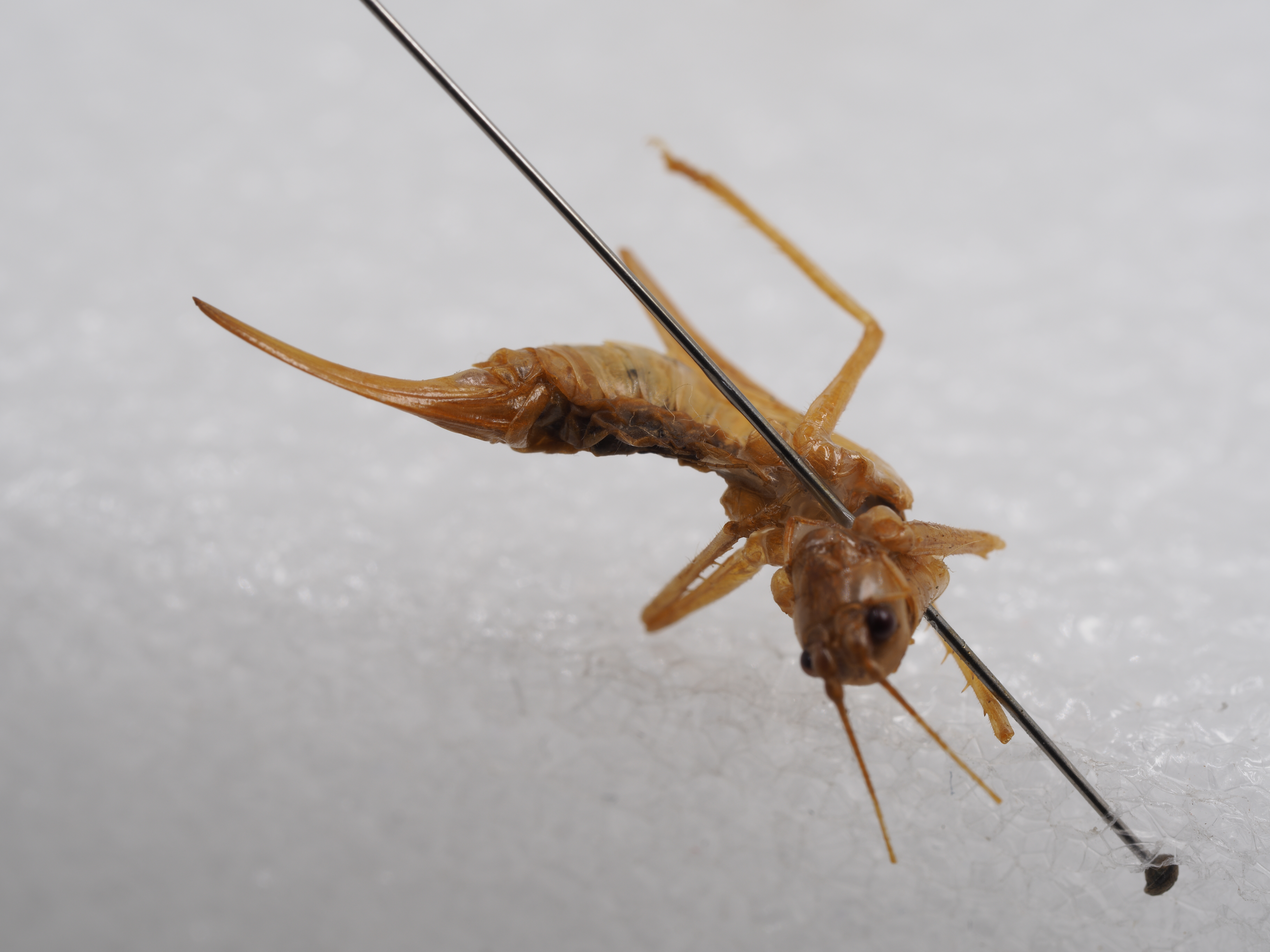 前 翅 不 超 过 后 足 股 节 端 部 ,后翅几乎不长于前翅。前 足 基 具 刺 。股 节 腹 面 缺 刺 ,膝叶端部钝