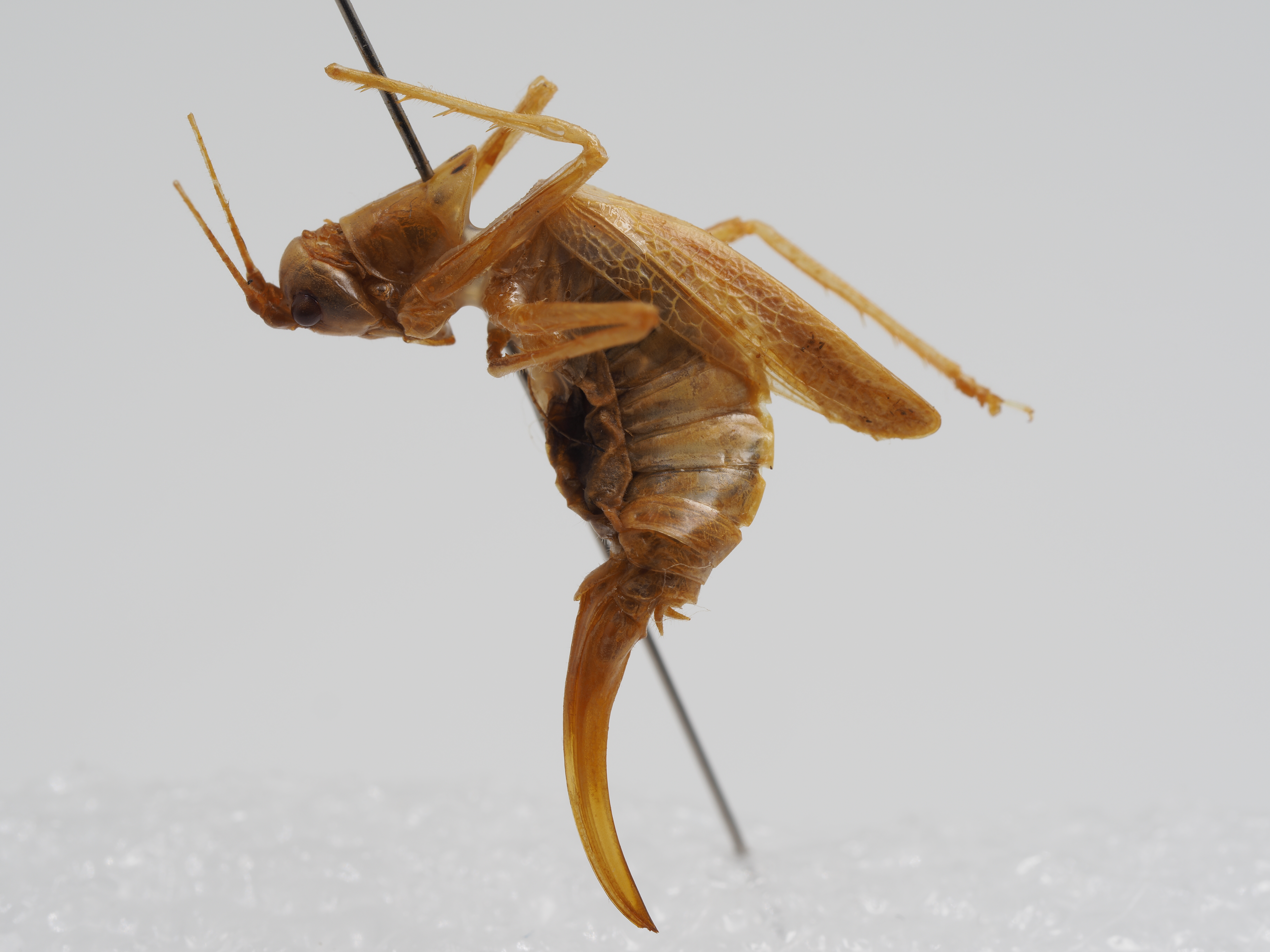 描述:雄性: 体中等 ,较粗壮。头 顶 圆 锥 形 ,端部钝圆 ,背面具沟。前 胸 背 板 稍 向 后 延 长 ,前缘几