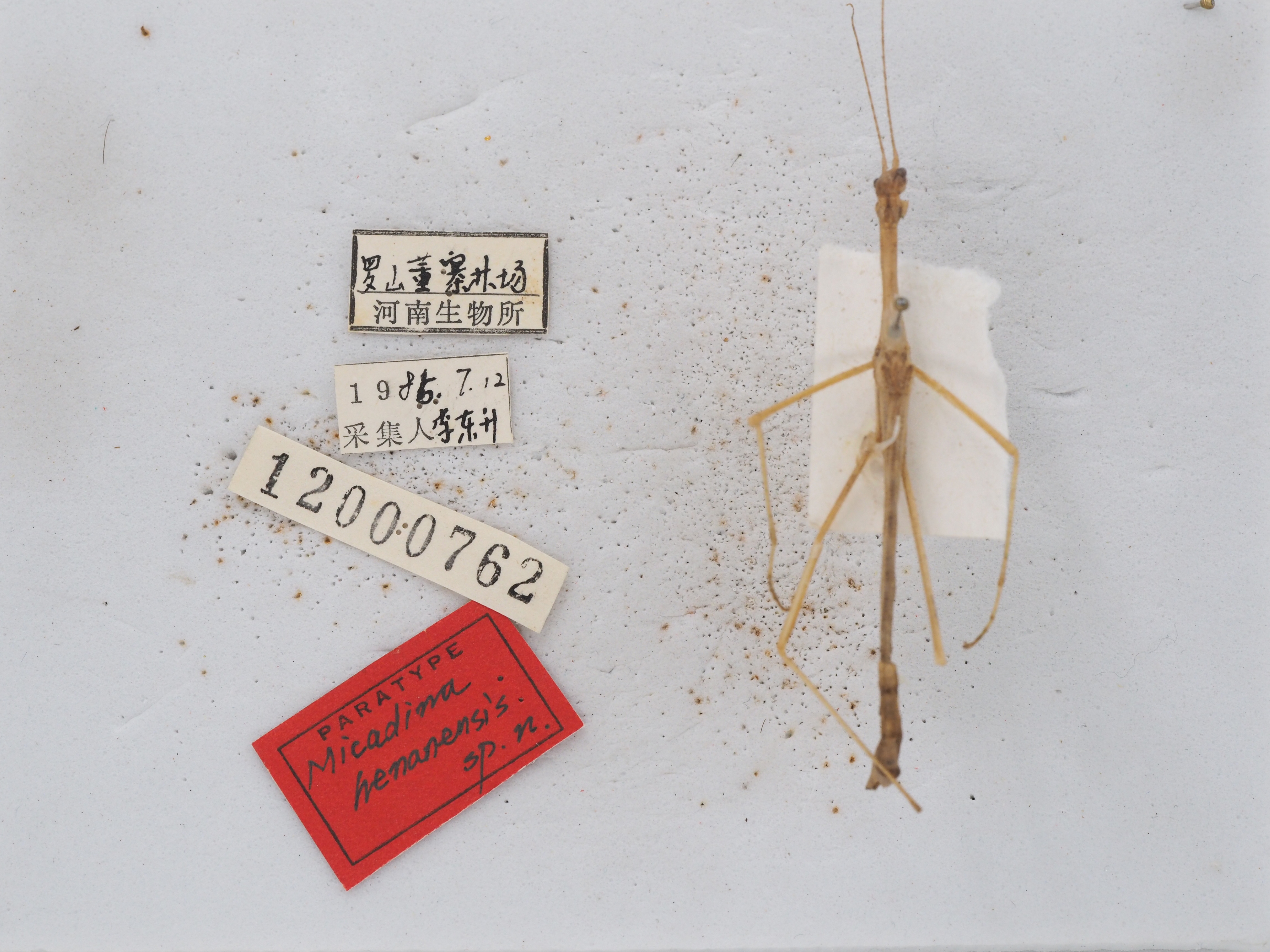 描述:雄性体较细长,褐色。眼后各具1条暗色纵带纹。头顶前端在近触角之间具1个圆形凹陷,后头具中隆线。复眼球形,向外突出;触角丝状,超过前足端部甚远,第1节扁柱形,长为宽的1.5倍,第2节柱形,为第1节长的2/3,第3节为细长柱形,与第1节等长。前胸背板 较短,亚梯形,中纵沟达前、后缘,中横沟较深,在中央之前具1个明显的十字形沟痕。中胸圆筒形,较长,约为前胸背板的3倍,背板具不明显的和不规则的小颗粒,中隆线和侧隆线明显。前翅较短,翅脉网状,长约为宽2 倍,翅突起较尖,黑色,端部平弧形;后翅较长,达第6 腹节中部。腹部第7节长于第8节或第9节, 8、9两腹节较宽扁,臀节较狭短,其长稍大于第9节之半,背板中隆线明显,端部中央呈弧形深凹,具短毛和小齿,两侧顶端垂直向下。尾须圆锥形,较短,不超过腹端,顶端向上翘,与臀节两侧向下顶端相对。下生殖板兜状,向后不超过第9腹节端部。雌性未知。