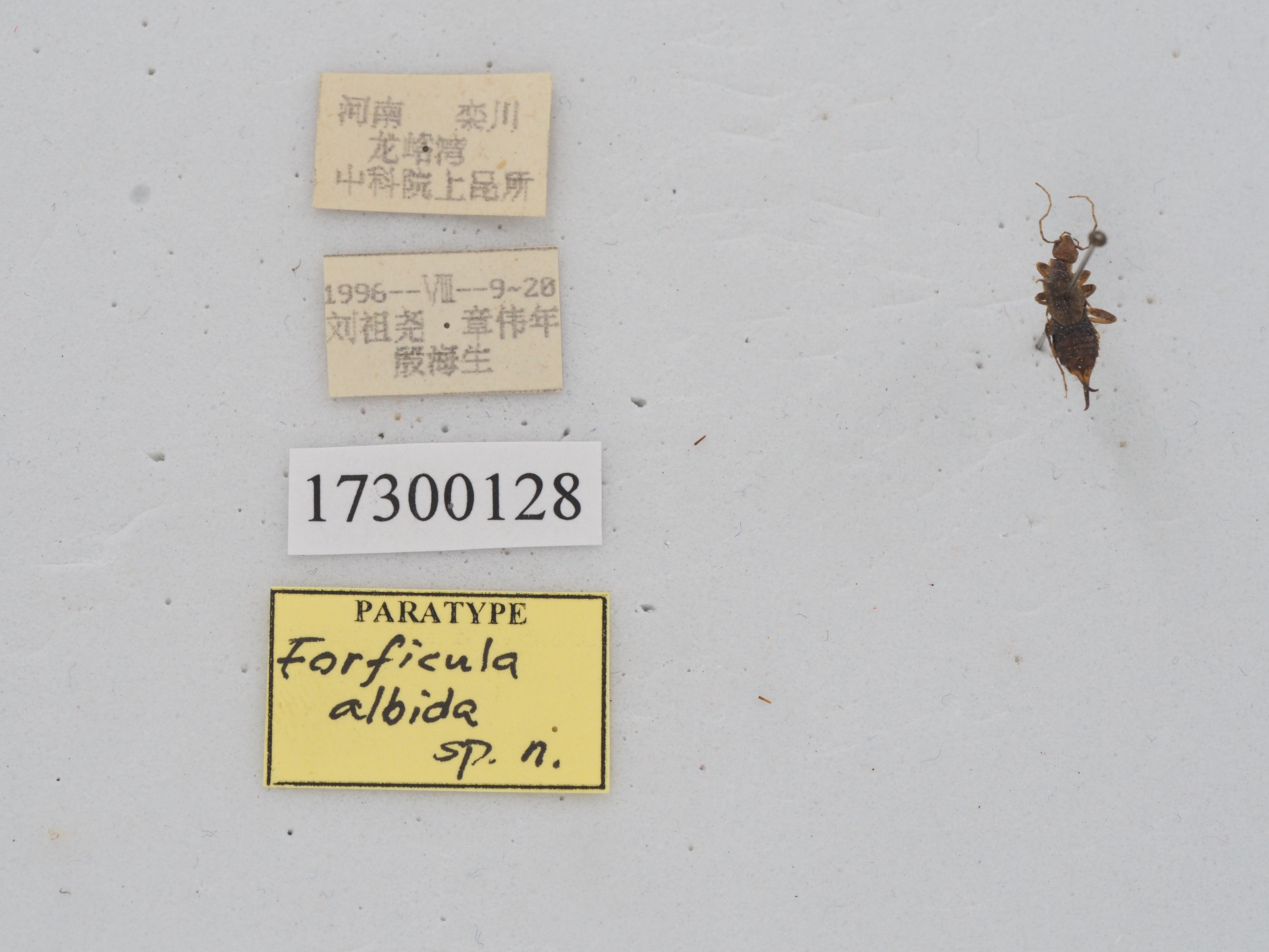 表面具极弱的刻点后翅长于前翅。足较粗壮。腹部狭长,中部稍扩宽,表面具较密的细刻点,第3、第4节两侧具腺褶。雄性第10腹节背板横宽,背面中央微凹陷,两侧具弱的隆丘肛上板突出,端部截形或微圆尾铗微内弯,基部扩宽部分约占全长的l/3(图6-8-2)端角呈钝角形(短铗型)或直角形(长铗型),内缘齿不明显阳基端叶较长。雌性尾铗较直,几乎毗连,内缘缺细齿(图6-8-4))