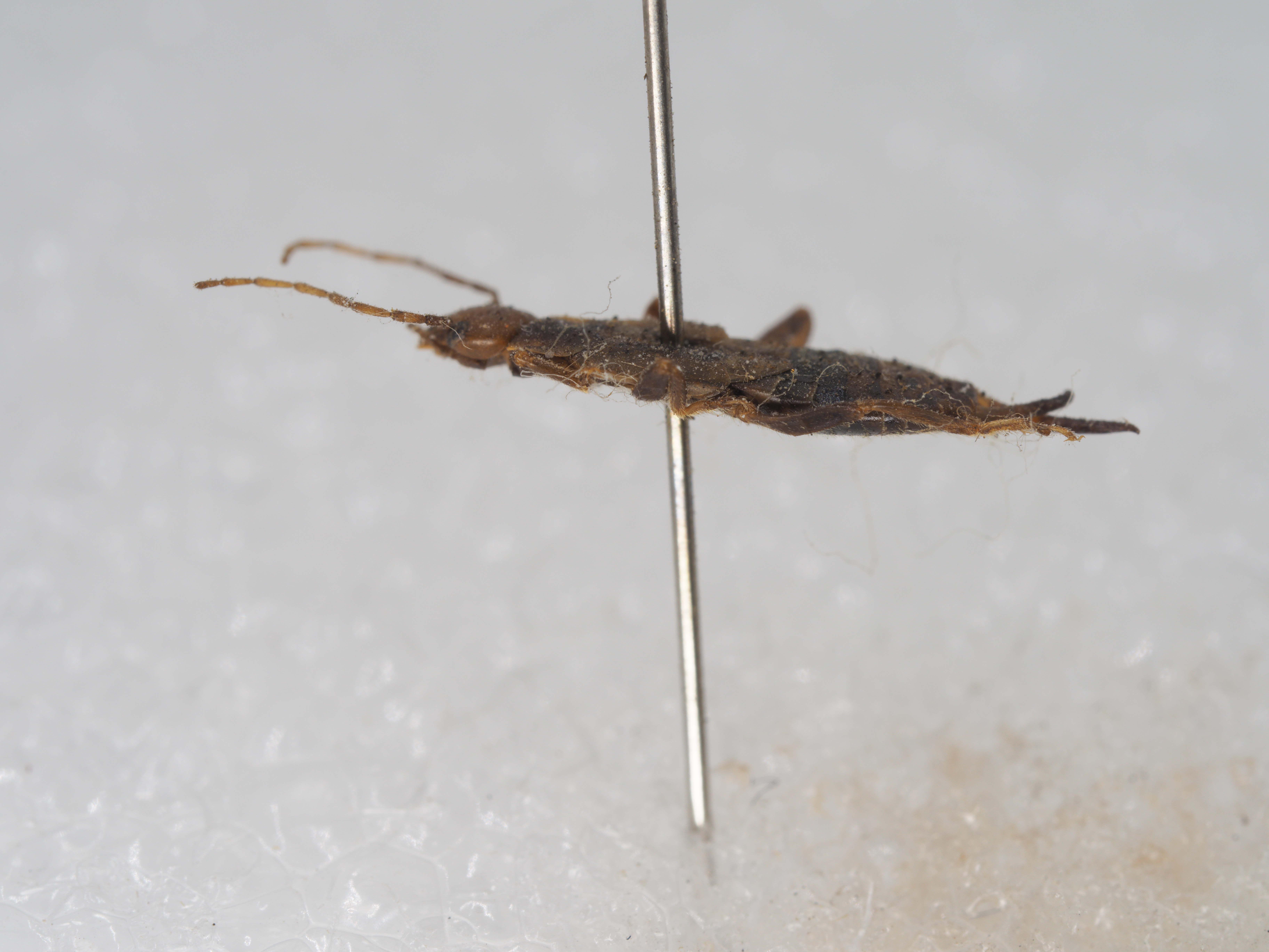 描述:体型中等,较细长(图6-8-1)。头部扁平,具稀疏的刻点冠缝不明显。触角12节;第1节约等长于第2、第3节之和,第4节稍短于第3节。前胸背板长宽约相等,不宽于头部,侧缘平行,后缘宽圆形,沟前区隆起,中沟不明显。前翅较狭,长约为宽的2.5倍,端缘微凹,