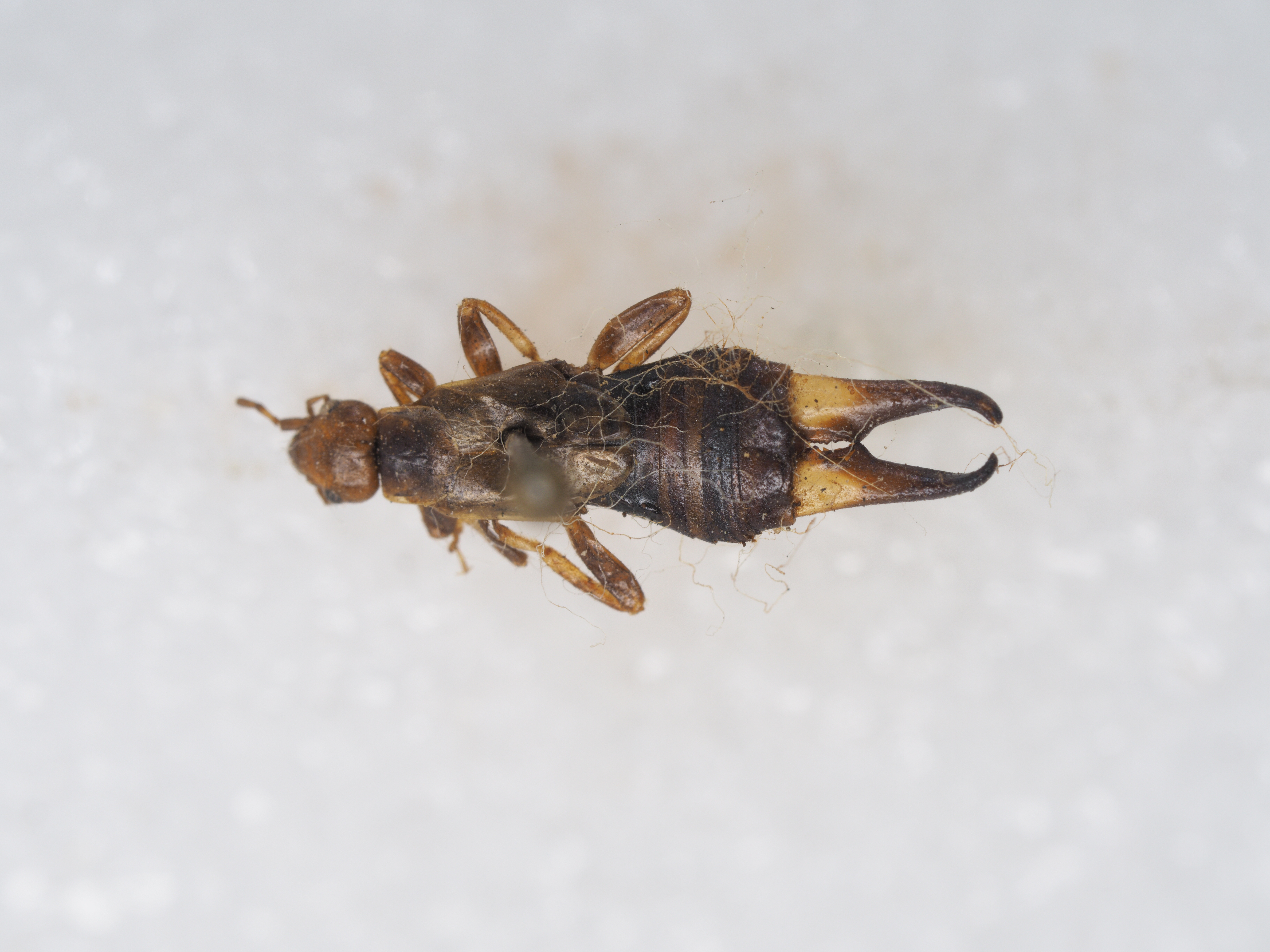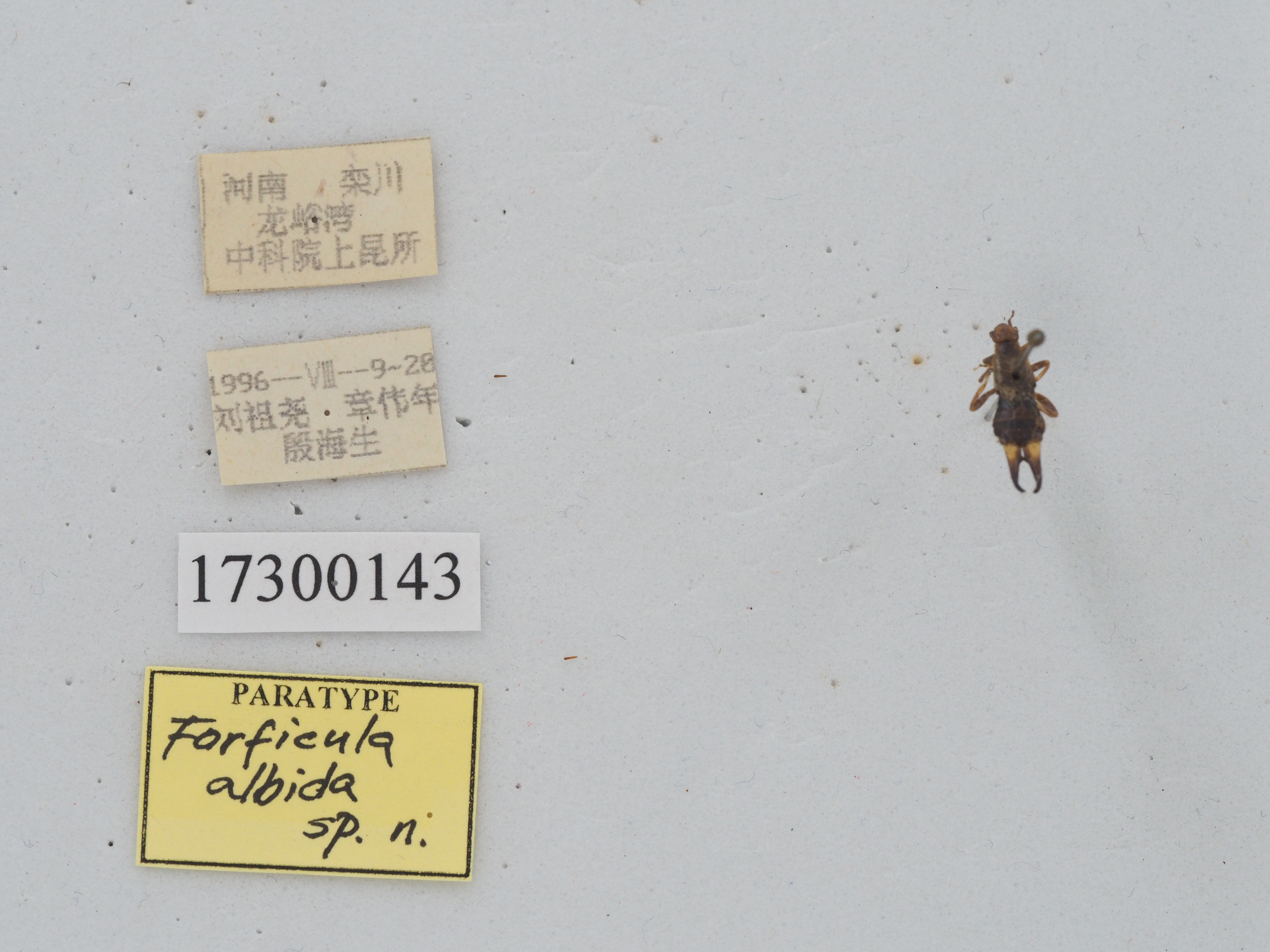 表面具极弱的刻点后翅长于前翅。足较粗壮。腹部狭长,中部稍扩宽,表面具较密的细刻点,第3、第4节两侧具腺褶。雄性第10腹节背板横宽,背面中央微凹陷,两侧具弱的隆丘肛上板突出,端部截形或微圆尾铗微内弯,基部扩宽部分约占全长的l/3(图6-8-2)端角呈钝角形(短铗型)或直角形(长铗型),内缘齿不明显阳基端叶较长。雌性尾铗较直,几乎毗连,内缘缺细齿(图6-8-4))