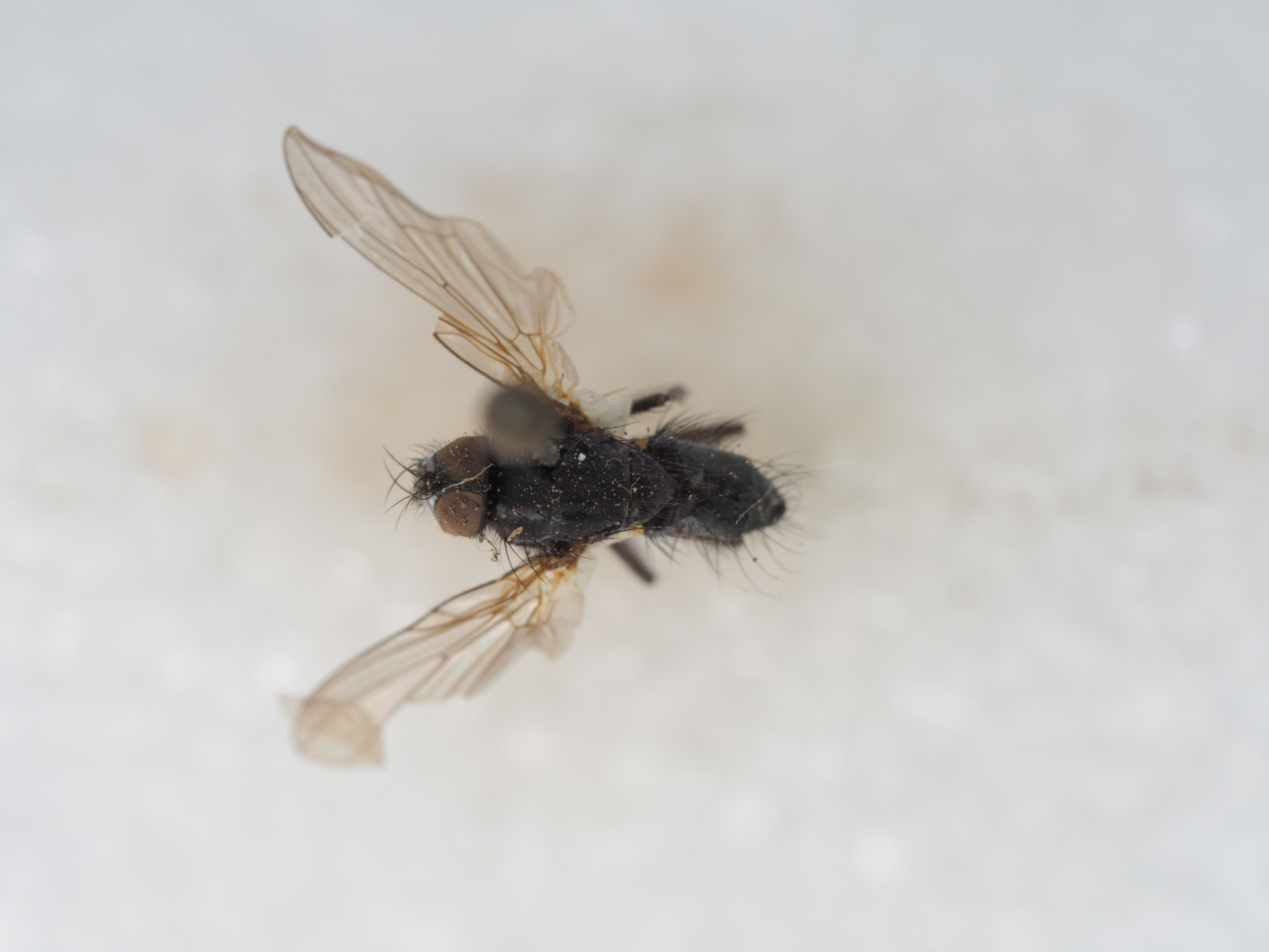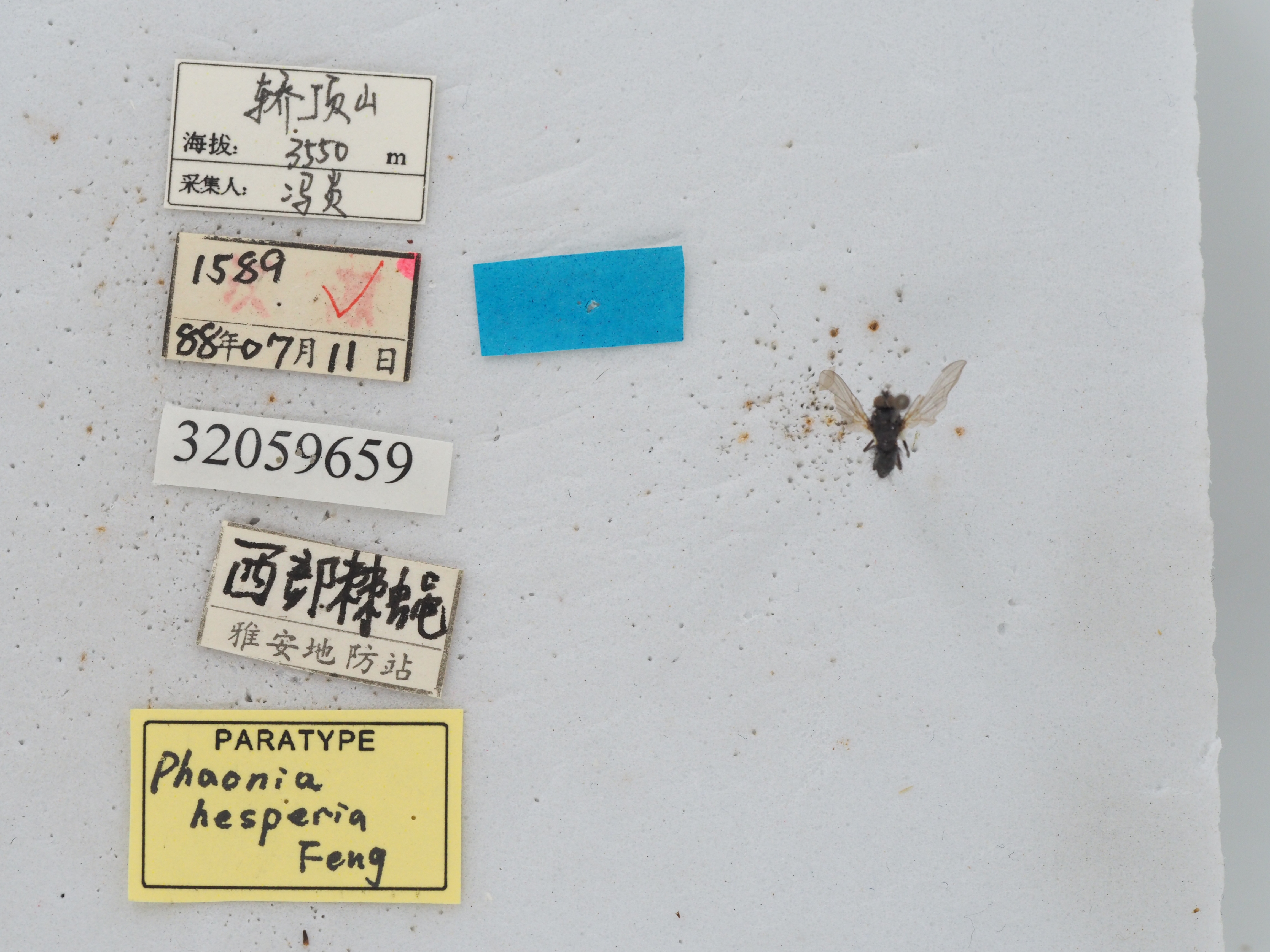 描述:雄:体长6.0 -7.0mm , 体足全黑。眼具密长毛;额为前单眼2 倍宽或稍狭, 间额消失;在侧额全长度内具下眶鬃11 -13 ;侧颜为触角第3 节宽的1 .2 倍;触角黑, 第3 节中段细缢, 其长为宽的2 .5 倍, 亦为第2 节长的2 倍, 芒长羽状;中颜板凹入, 上部具低平颜脊;口前缘突出于额前缘或相齐;颊毛及下后头毛黑, 口缘鬃4 列;颊部为眼的1/3 高, 下颚须黑, 棍棒状;前颏长为高3 倍。胸黑, 具青灰粉被和4 宽黑条, 后者中间1 对达小盾沟;前盾片中部具小毛8 列;中鬃0 +1 , 背中鬃2 +4 , 翅内鬃0 +2 , 翅前鬃为后背侧片鬃长的2 倍;小盾片黑, 背中线略短于小盾沟长, 缘鬃2 , 缘鬃外侧具小毛1 列, 侧、腹面裸;气门大, 黑褐色;背侧片及后气门前肋具毛;前胸基腹片、翅侧片、下侧片及后胸侧板前区均裸;腹侧片鬃1 :2 。翅棕黄, 翅肩鳞及前缘基鳞黑褐;径脉结节裸, r4+5与m1 +2两脉在翅缘背离, m -m 横脉微弯, 腋瓣污白;平衡棒淡红棕。足全黑;前胫具后鬃2 , 其长度为该胫节的1/2 长;中股具细而短的前腹、后腹鬃各1列, 在后腹鬃列的紧外上方具后鬃1 列, 该鬃列仅端半部5 -6 根长大;中胫具后鬃和后腹鬃各2 , 亚端位具后背鬃1 ;后股具前腹、前背鬃各1 列, 前者仅端半6 根长大;后胫微弯, 具前腹鬃7-8 , 前背鬃1 列(仅中段2 根长大), 后背鬃1 , 另在亚基位具前背、后背鬃各1 。腹黑, 具浓青灰粉被, 第3 、4 背板具窄纵条。无侧斑, 第4 、5 背板具后缘鬃, 后者具2 列心鬃;第6 背板及第1 腹板裸;第5 腹板侧叶内缘棕黄。雌:不详。