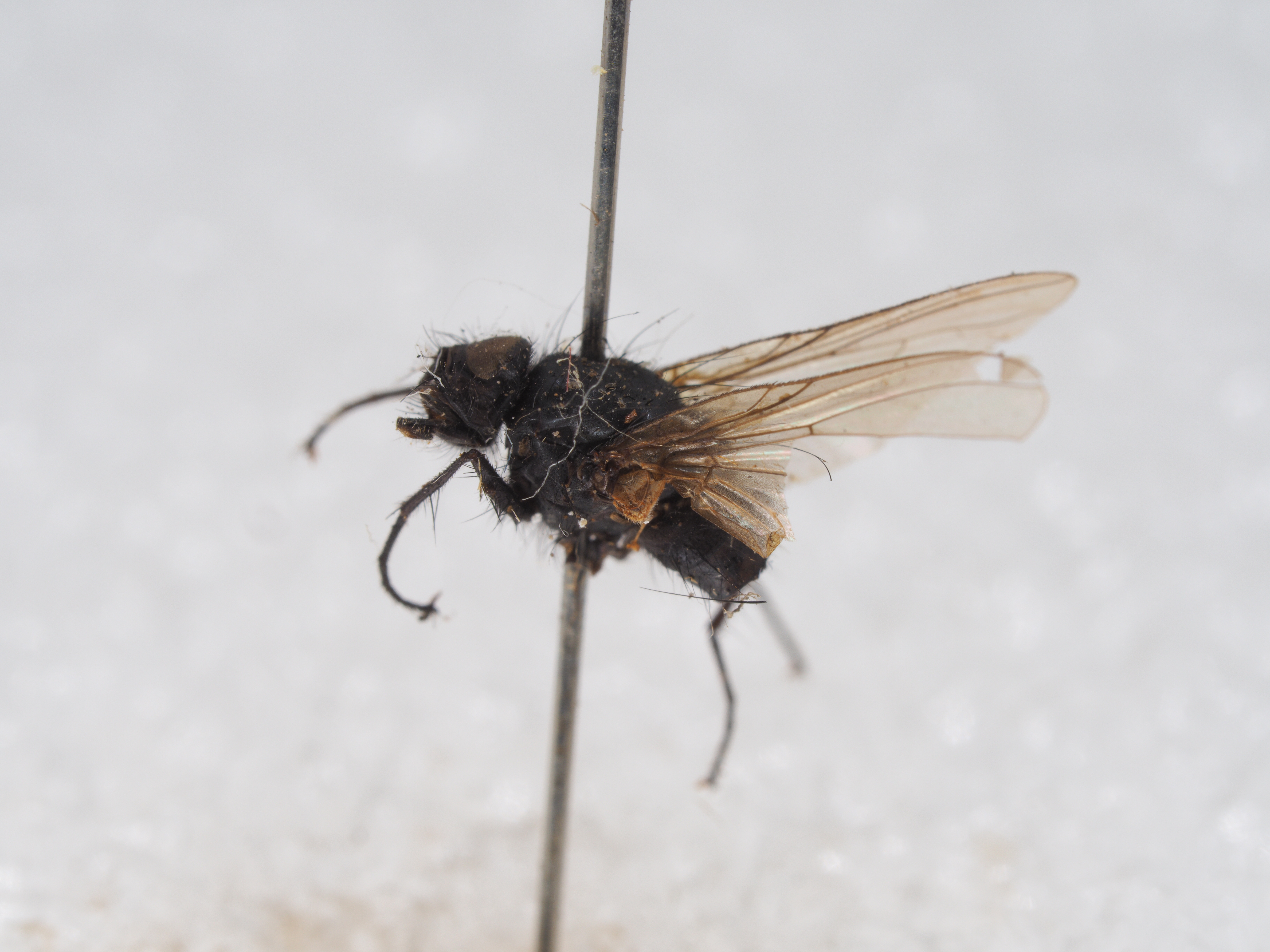 描述:雄:体长6.0 -7.0mm , 体足全黑。眼具密长毛;额为前单眼2 倍宽或稍狭, 间额消失;在侧额全长度内具下眶鬃11 -13 ;侧颜为触角第3 节宽的1 .2 倍;触角黑, 第3 节中段细缢, 其长为宽的2 .5 倍, 亦为第2 节长的2 倍, 芒长羽状;中颜板凹入, 上部具低平颜脊;口前缘突出于额前缘或相齐;颊毛及下后头毛黑, 口缘鬃4 列;颊部为眼的1/3 高, 下颚须黑, 棍棒状;前颏长为高3 倍。胸黑, 具青灰粉被和4 宽黑条, 后者中间1 对达小盾沟;前盾片中部具小毛8 列;中鬃0 +1 , 背中鬃2 +4 , 翅内鬃0 +2 , 翅前鬃为后背侧片鬃长的2 倍;小盾片黑, 背中线略短于小盾沟长, 缘鬃2 , 缘鬃外侧具小毛1 列, 侧、腹面裸;气门大, 黑褐色;背侧片及后气门前肋具毛;前胸基腹片、翅侧片、下侧片及后胸侧板前区均裸;腹侧片鬃1 :2 。翅棕黄, 翅肩鳞及前缘基鳞黑褐;径脉结节裸, r4+5与m1 +2两脉在翅缘背离, m -m 横脉微弯, 腋瓣污白;平衡棒淡红棕。足全黑;前胫具后鬃2 , 其长度为该胫节的1/2 长;中股具细而短的前腹、后腹鬃各1列, 在后腹鬃列的紧外上方具后鬃1 列, 该鬃列仅端半部5 -6 根长大;中胫具后鬃和后腹鬃各2 , 亚端位具后背鬃1 ;后股具前腹、前背鬃各1 列, 前者仅端半6 根长大;后胫微弯, 具前腹鬃7-8 , 前背鬃1 列(仅中段2 根长大), 后背鬃1 , 另在亚基位具前背、后背鬃各1 。腹黑, 具浓青灰粉被, 第3 、4 背板具窄纵条。无侧斑, 第4 、5 背板具后缘鬃, 后者具2 列心鬃;第6 背板及第1 腹板裸;第5 腹板侧叶内缘棕黄。雌:不详。