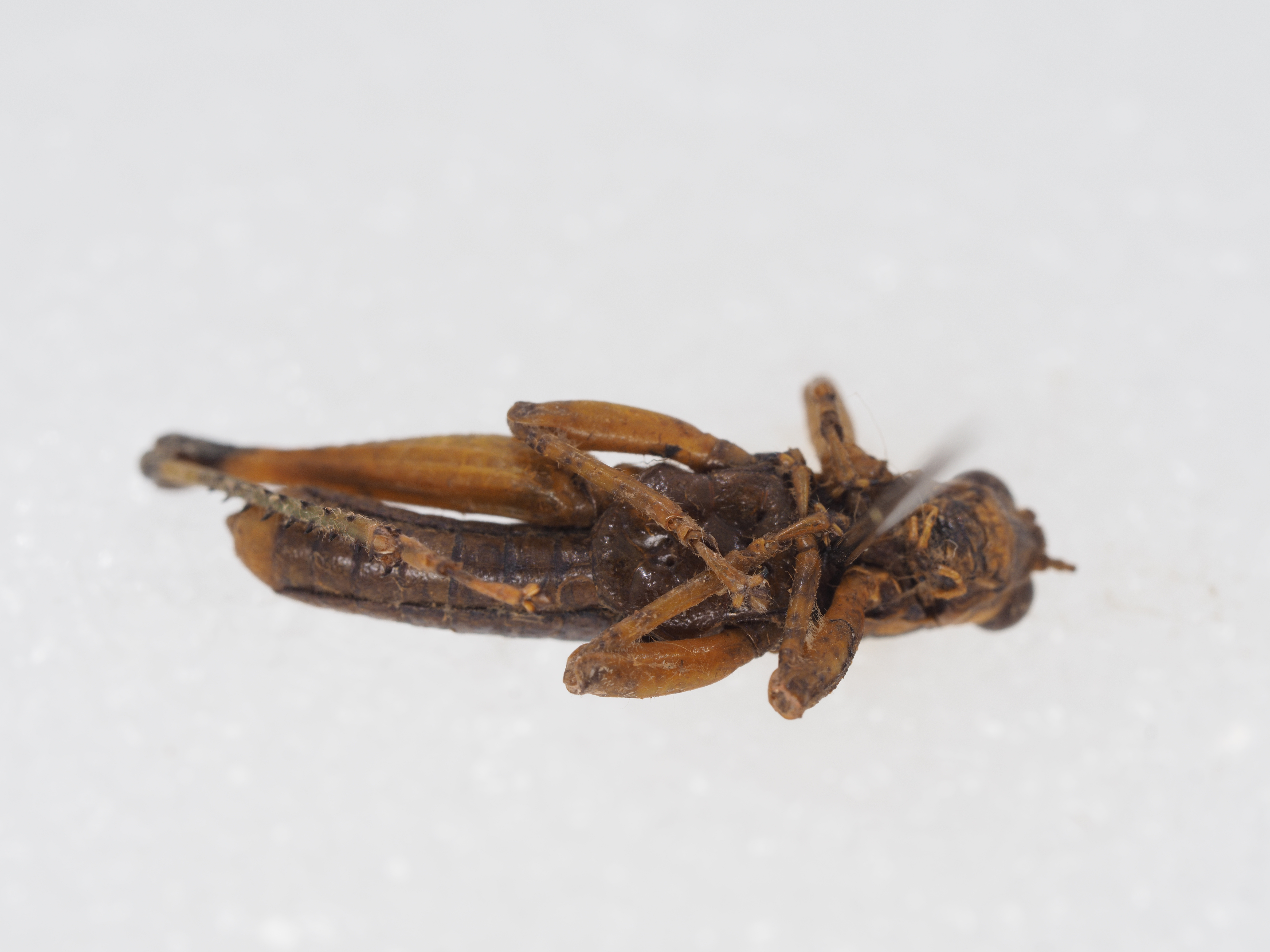 体长:♂18.0~21.0mm,♀25.0~29.0mm;前胸背板:♂5.0~5.5mm,♀6.0~8.0mm;前翅:♂3.0~3.8mm,♀4.0~6.0mm;后足股节:♂11.0~13.0mm,♀13.5~16.0mm。