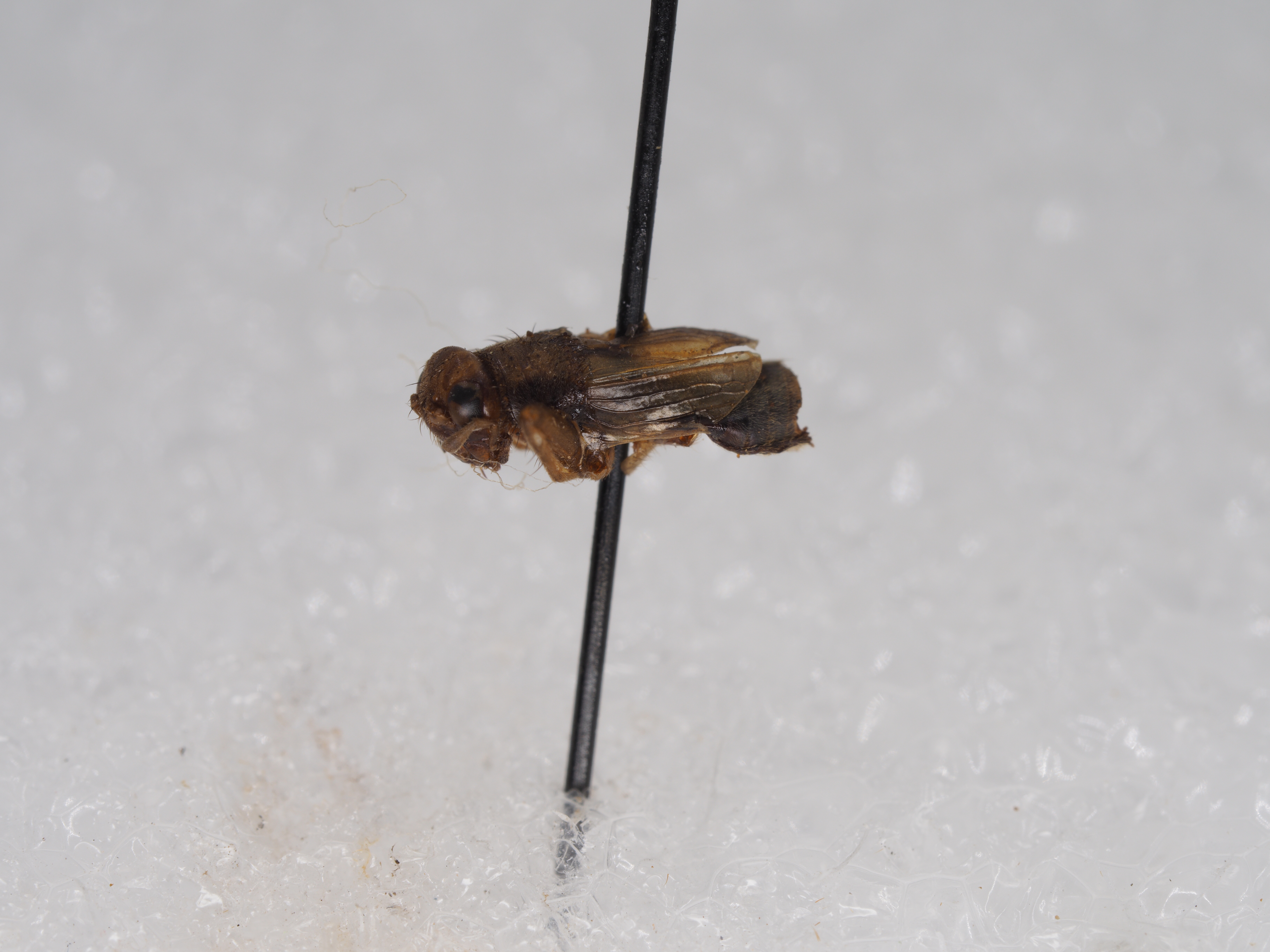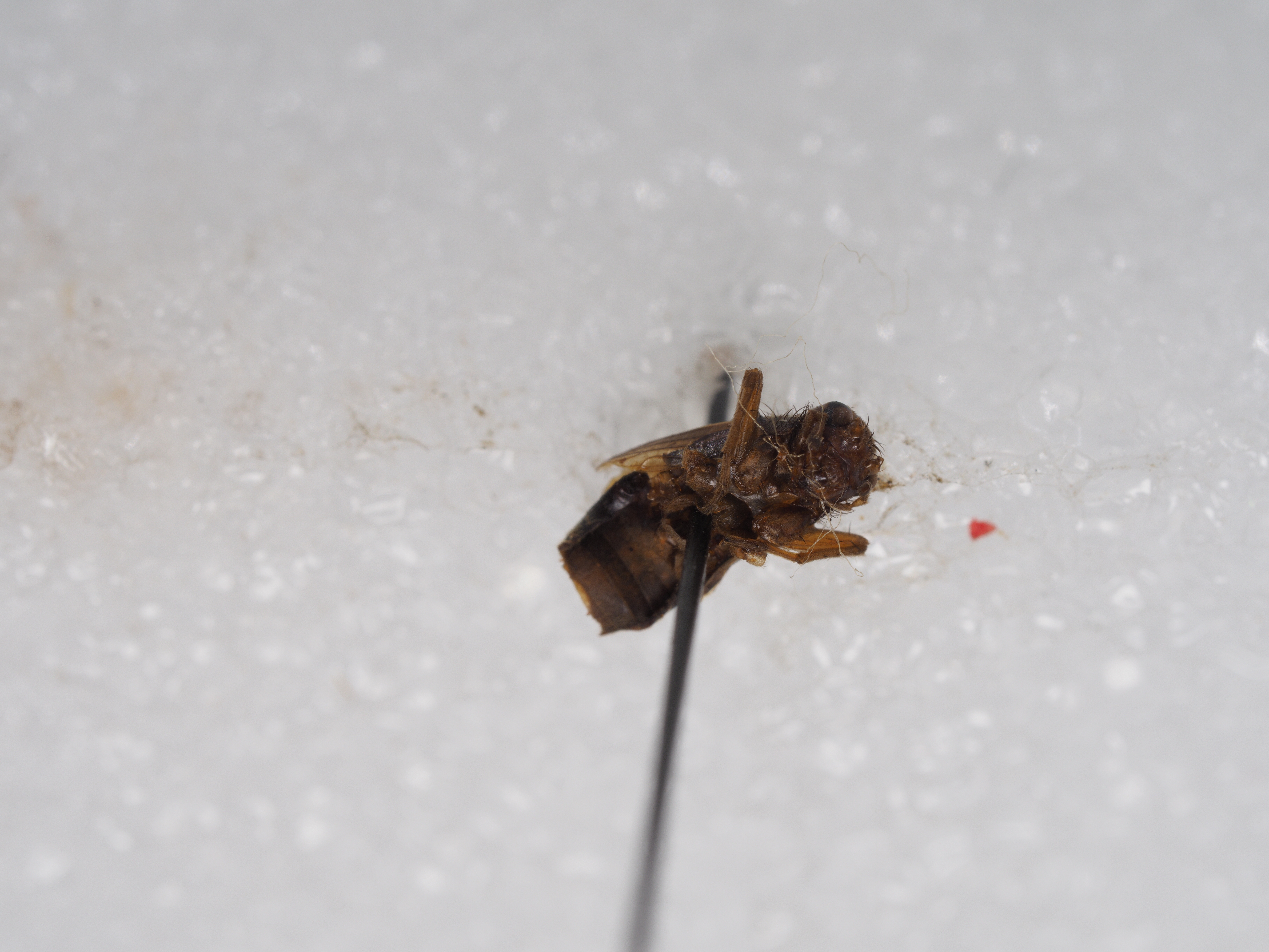 描述:雄性: 体较小。头圆凸 ,头顶和额突具刚毛 ,额突与触角第 1节等宽;复眼较大 ,单眼排亚前缘脉域 )褐色。足黄褐色 ,杂有褐色斑点。腹部和产卵瓣褐色