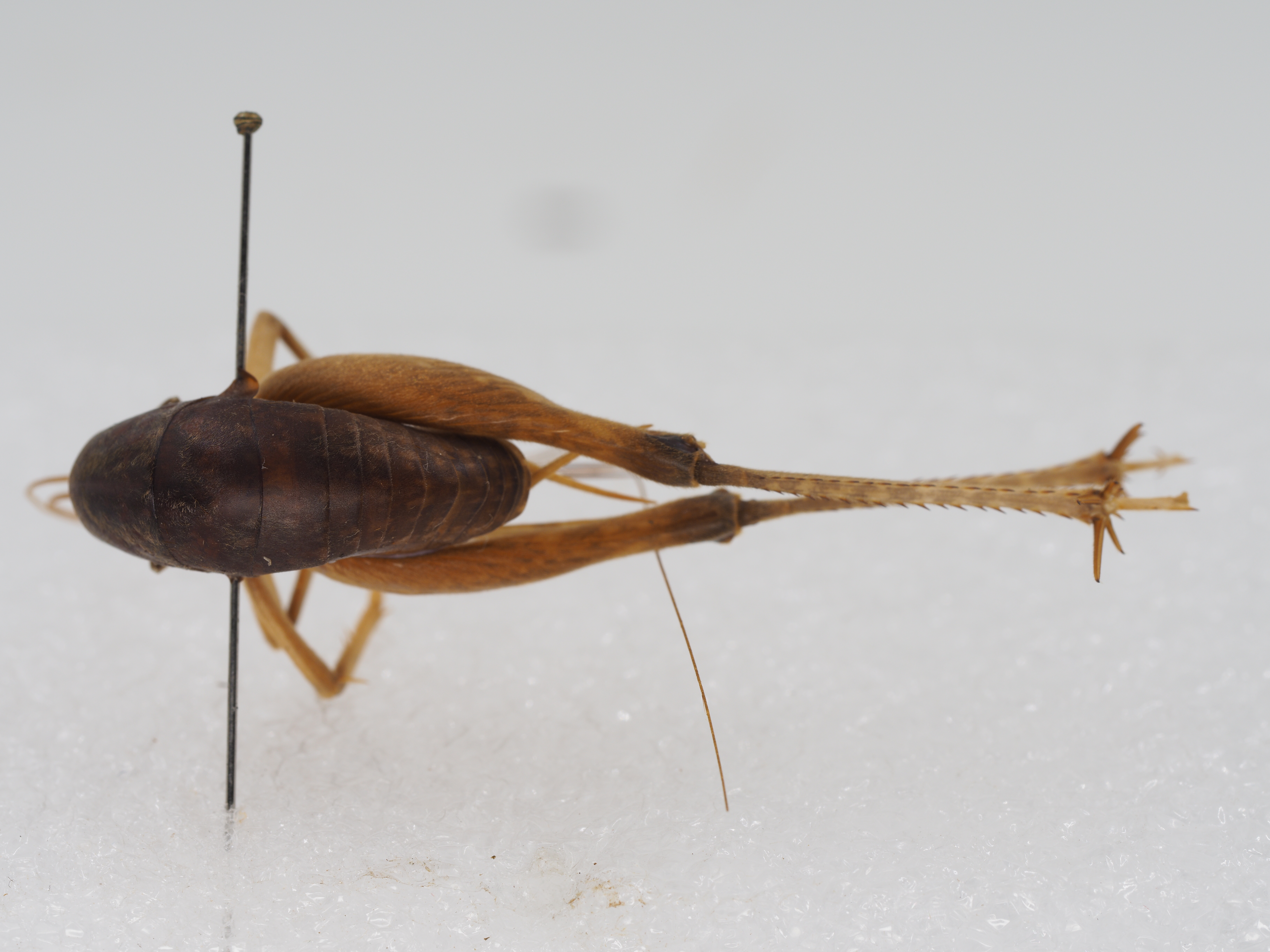 内膝叶具 1个 (不能活动的 )短刺 ,后足胫节背面具 17~ 18个外刺和 16~ 17个内刺 ,内侧