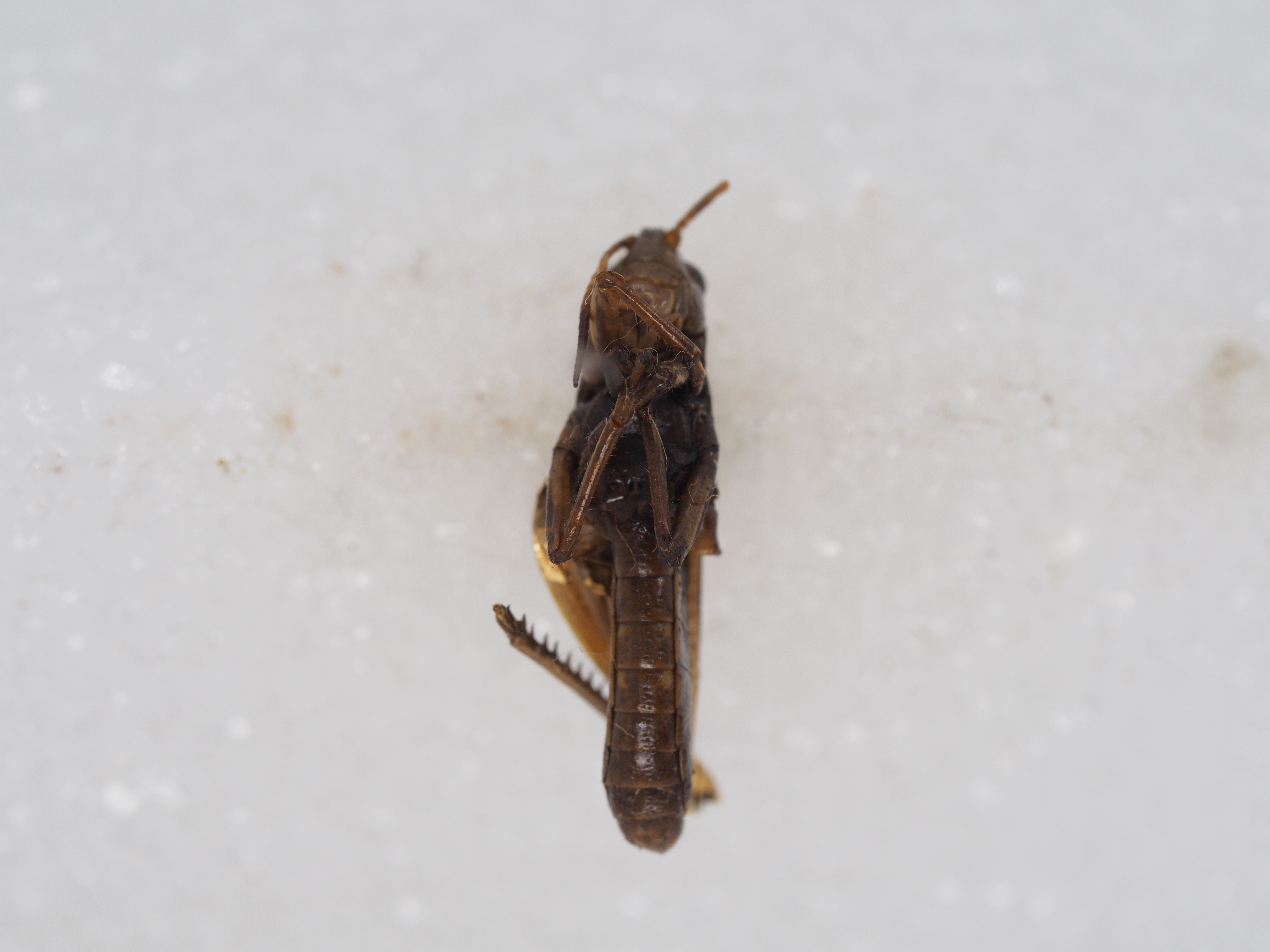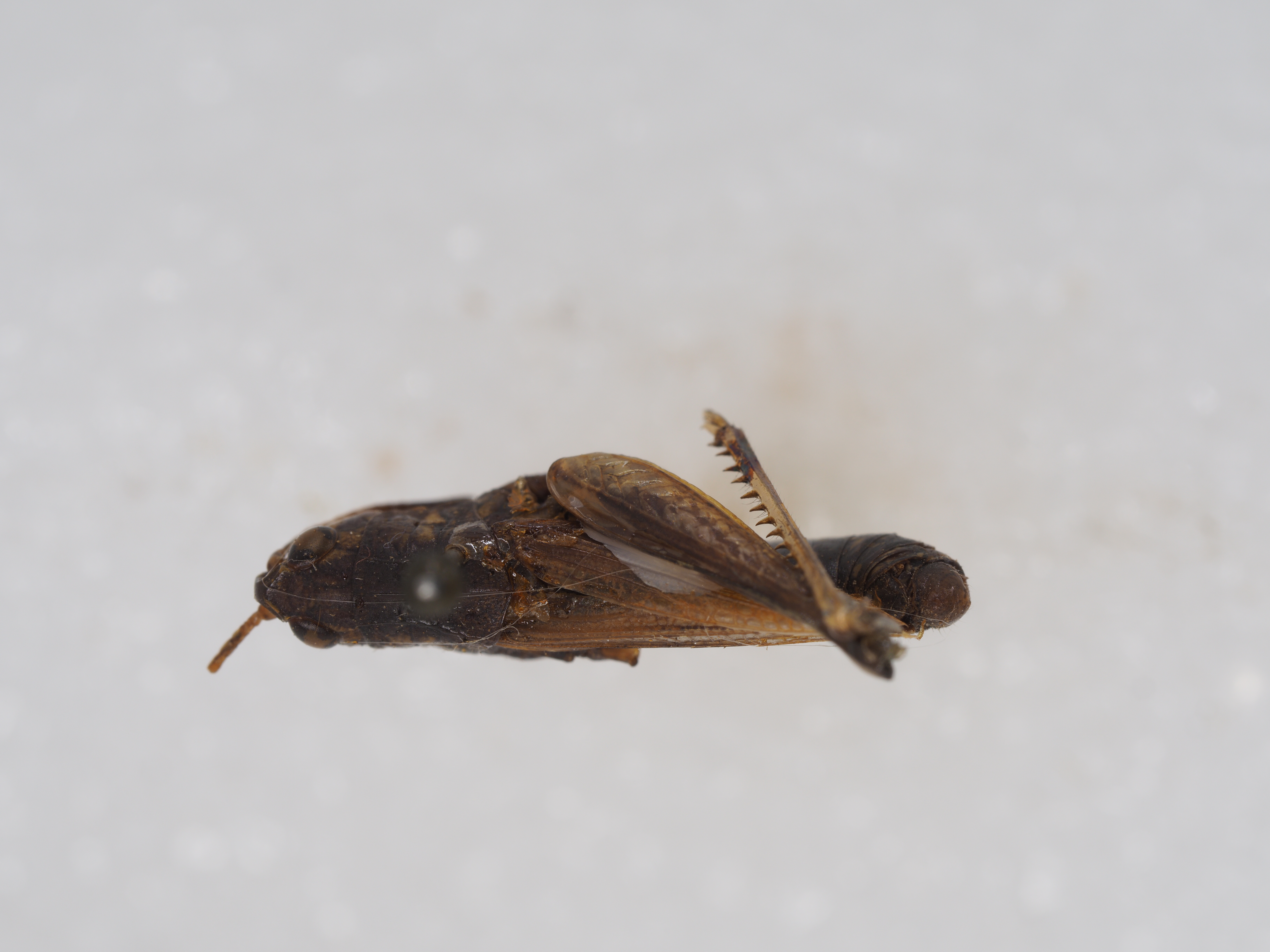 雌性 头侧窝长为宽的2.5倍。颜面隆起平坦,中央无纵沟。前翅较短,到达第5腹节,在背部互相毗连。后翅短于前翅。产卵瓣粗短,端部呈钩状。