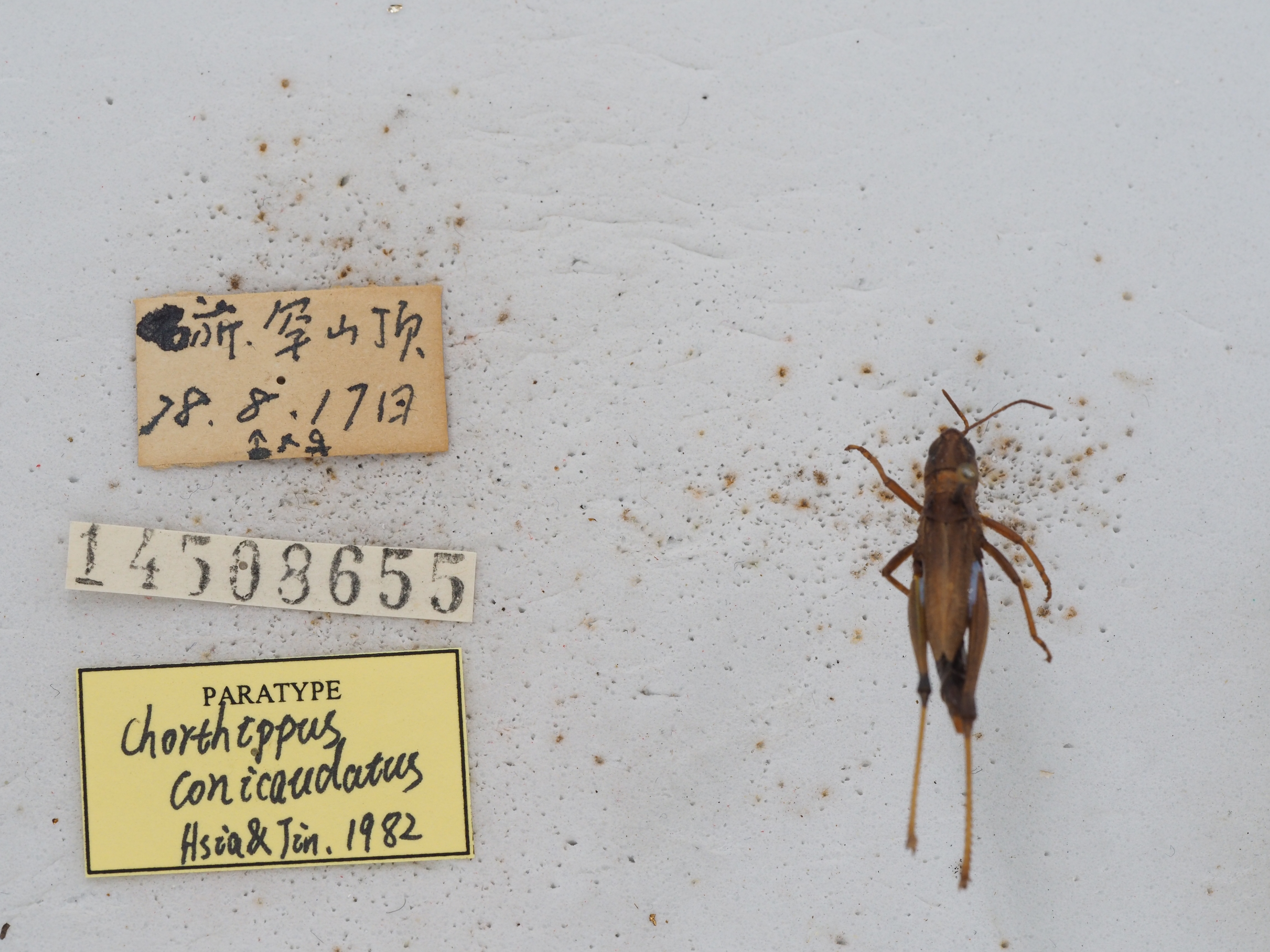 描述:雄性 体中小型。头较短,明显短于前胸背板。头顶前缘近乎直角形。头侧窝狭长四角形,其长为宽的4倍。颜面隆起明显,中央低凹,形成较深的纵沟。触角丝状,细长,超过前胸背板的后缘,中段一节的长度为宽度的2倍。复眼卵形,较突出。前胸背板前缘平直,后缘弧形;中隆线明显,侧隆线在沟前区略呈弧形弯曲,在沟后区扩宽;后横沟位于背板中部略偏前处,切断中、侧隆线,沟后区稍长于沟前区,前横沟不切断中、侧隆线,中横沟不明显。前胸腹板平坦,中胸腹板侧叶间中隔长略大于宽。前翅发达,到达或超过腹端,但不到达后足股节的顶端;缘前脉域不到达前翅之中部,内不具闰脉;前缘脉较弯曲,前缘脉域较宽于亚前缘脉域的1.5倍;中脉域宽于肘脉域的2—3倍,内具不规则的横脉。后翅短小。后足股节匀称,内侧具音齿153(±8),音齿为锥形,音齿列长4.6(±1.1)mm;膝侧片顶圆形。跗节爪间中垫宽大,超过爪之中部。鼓膜孔宽卵形,其长为宽的2倍。肛上板三角形。尾须长为基部宽的2.5倍,略超过肛上板端部。下生殖板锥形,端部向上翘,顶较尖。阳具基背片及阳茎复合体如图。