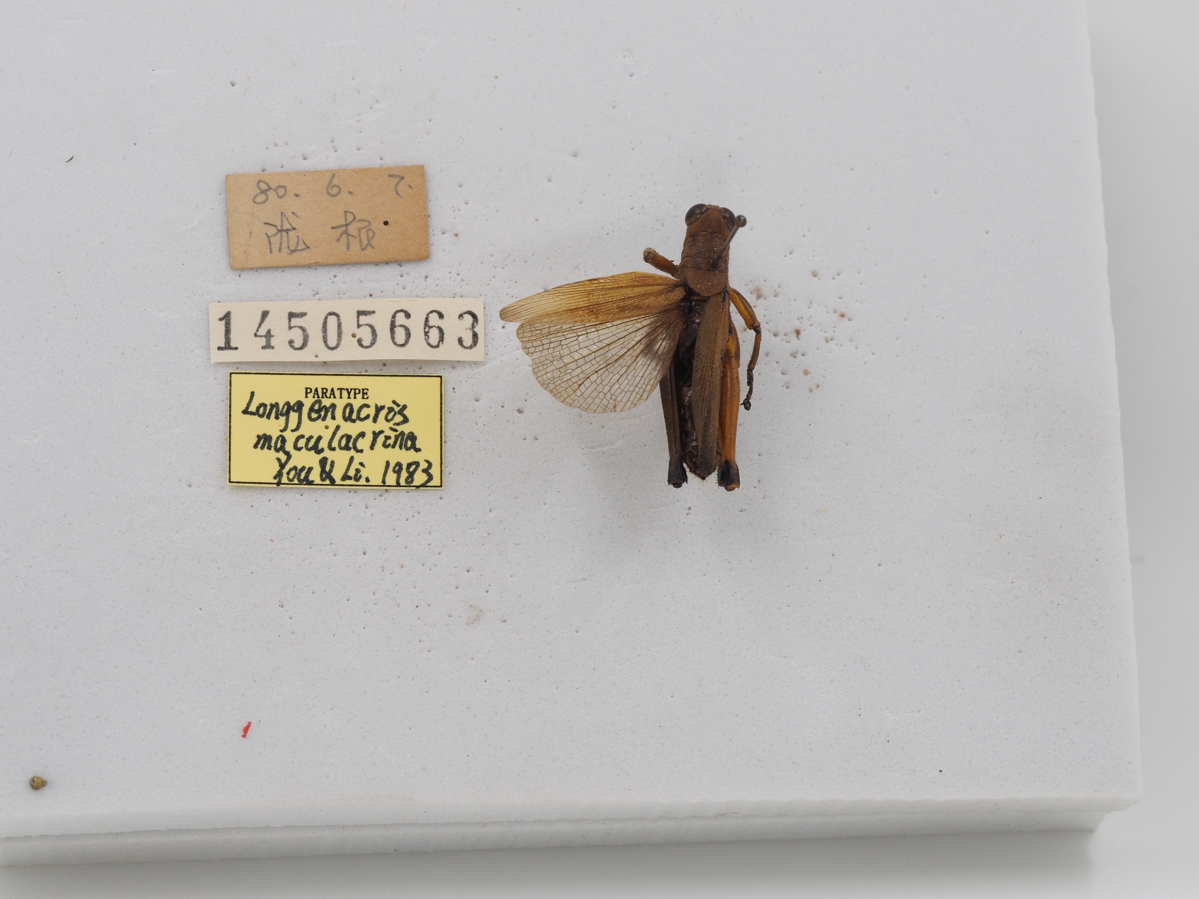 描述:雄性 体型中等,粗壮,具有较密的绒毛。头顶颇向前倾斜,背面中央低凹,复眼间之距离较狭于颜面隆起在触角之间的宽度(图114b)。颜面侧面观向后倾斜,颜面隆起侧缘几乎平行,不到达唇基,在触角之间纵沟较深,并延伸到头顶前端。复眼较小,短卵形,其垂直直径为水平直径的1.25~1.29倍,约为眼下沟的1.6~2倍(图114c)。前胸背板前缘为圆弧形,后缘略成钝角形突出;侧片前下角近乎直角;中隆线在沟前区较弱,在沟后区较明显,缺侧隆线;前横沟和中横沟均呈波浪状,前横沟较短,中横沟不甚明显;3条横沟均割断中隆线,后横沟位近后端,沟前区的长度为沟后区长度的1.3~1.5倍。前胸腹板突短锥状,顶端尖锐。中胸腹板侧叶宽略大于长,侧叶间中隔的长度为其宽度的1.18~1.36倍。后胸腹板侧叶的后端部分彼此分开。前、后翅均较发达,不到达或刚到达后足股节端部。后足股节粗短,其上侧的中隆线无细齿;上、下膝侧片顶端宽圆。后足胫节具较密的白色绒毛,端部缺外端刺,外缘通常具刺9~10个(个别14个),内缘具刺10~11个。后足附节到达或略超过胫节的中部,爪间中垫较发达,超过爪的中部甚长。腹部第1节背板侧面具有较发达的鼓膜器;末节背板后缘分开,具有两个小三角形尾片。肛上板略呈三角形,背面中央具纵沟,其基部较宽,端部较狭;背面基部两侧各具一短隆线,端部两侧各具长方形隆起(图114g)。下生殖板呈短锥形,末端突出,形成短柱状突起。尾须侧扁,基部宽,端部细狭,顶端宽圆(图114d)。阳具基背片宽桥状,其上缘中部稍呈凹弧形,下缘中部呈圆弧形突出;锚状突与后突均呈三角形。