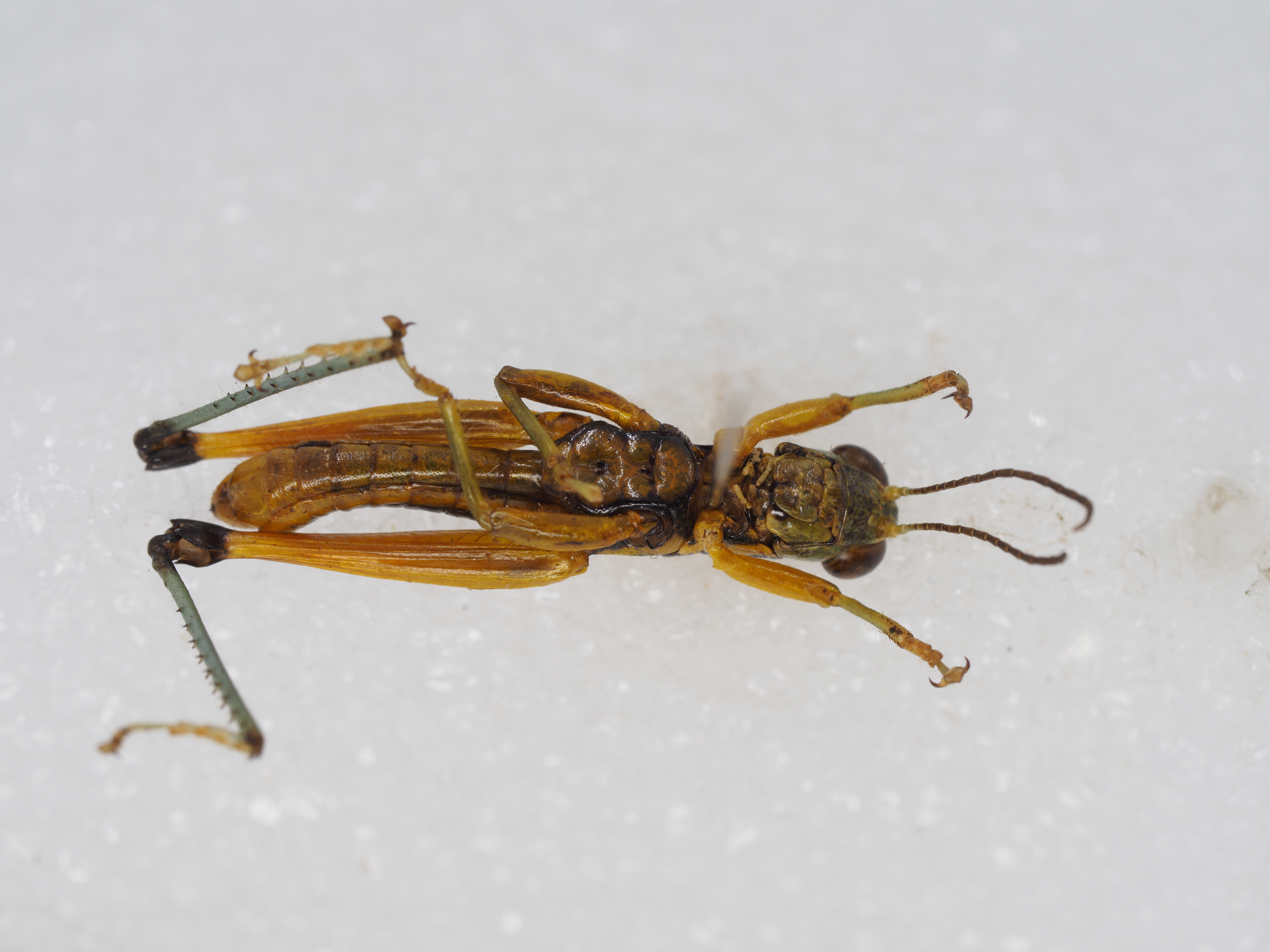 体长:♂18.6~21.5mm,旱24.7~28.5mm;前胸背板:♂3.0~3.9mm,♀4.9~5.5mm;前翅:♂3.4~4.1mm,♀3.7~4.8mm;后足股节:♂11.0~12.1mm,♀13.7~16.0mm。
