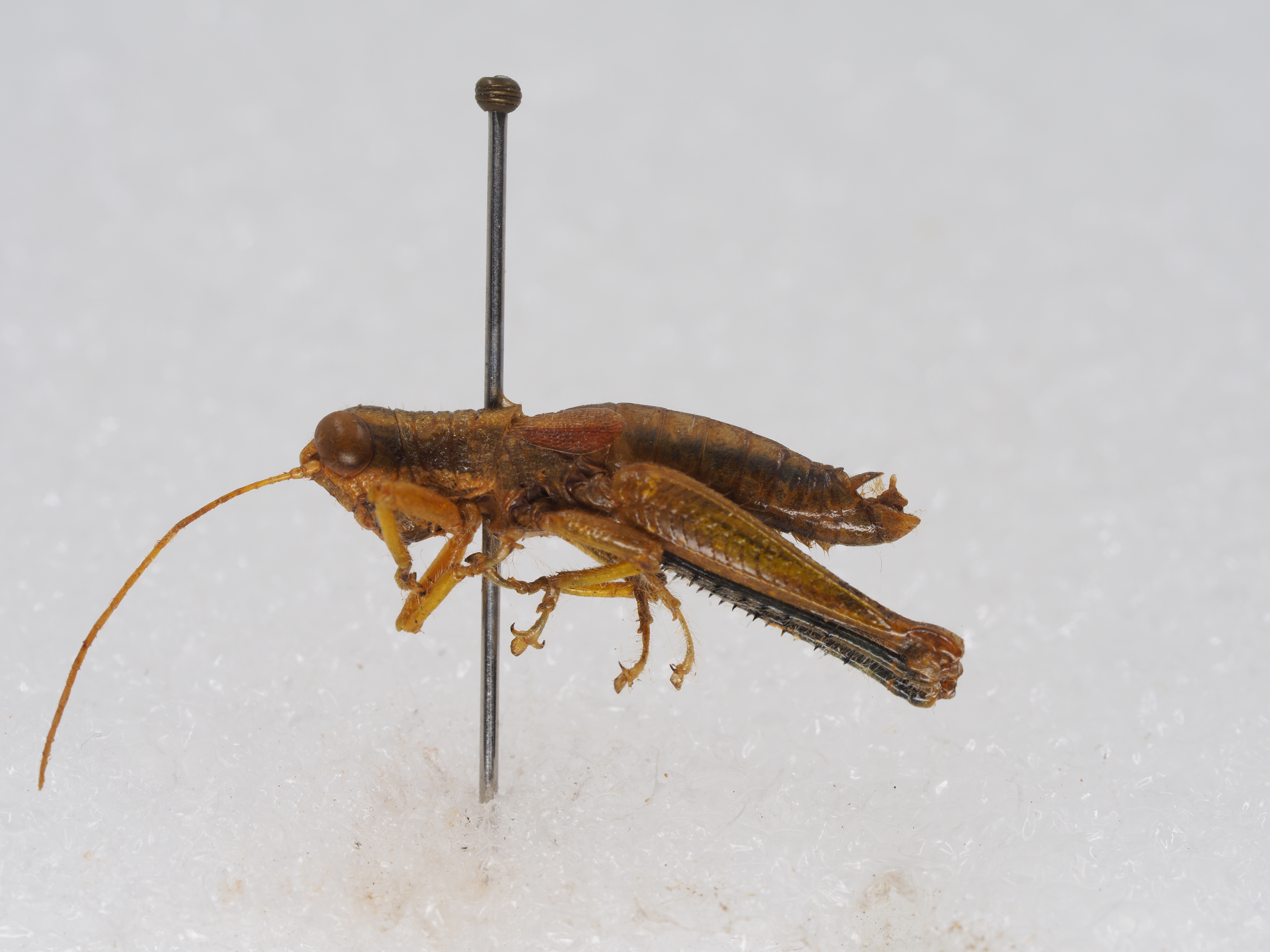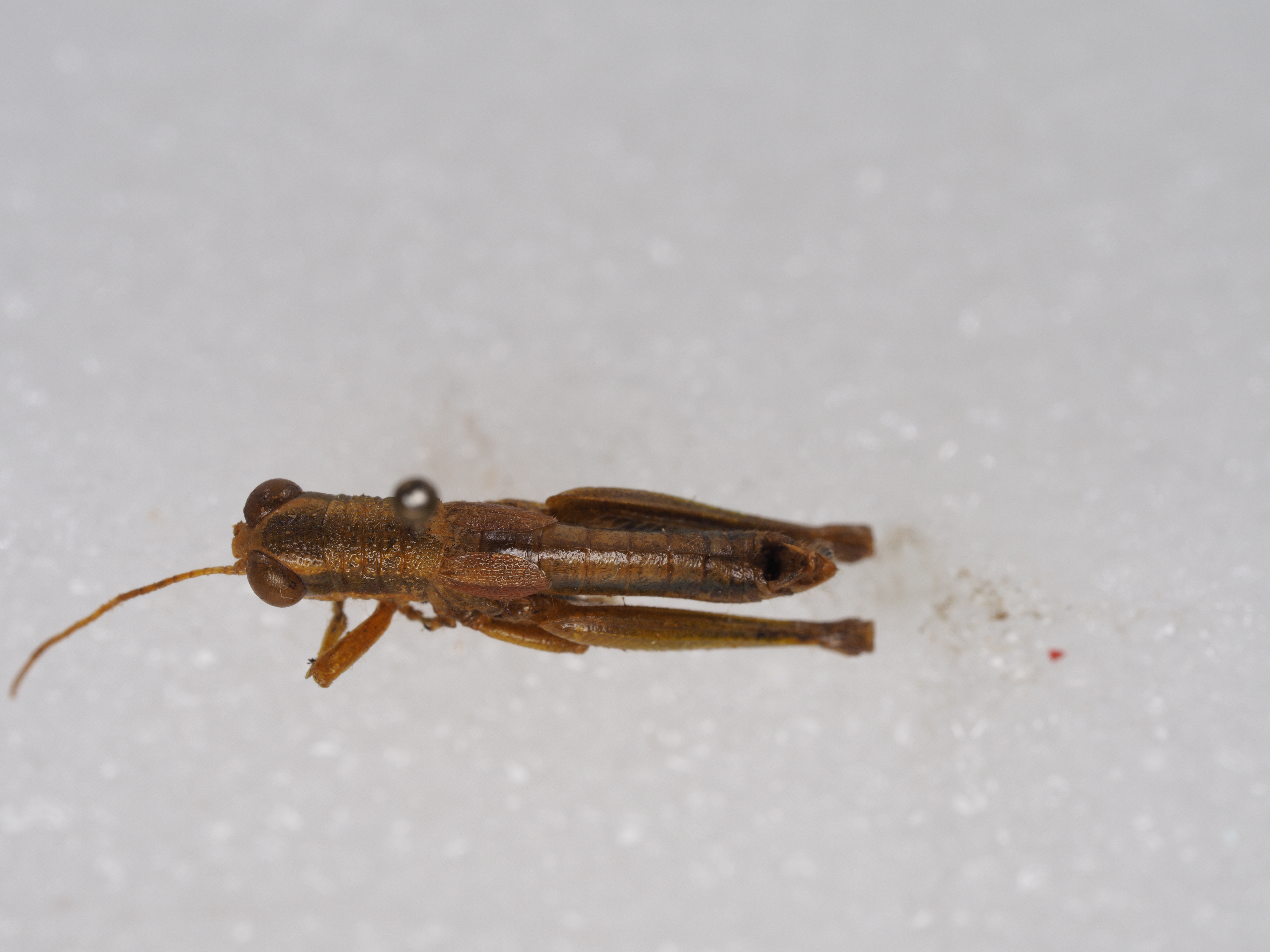 描述:雄性 体型中等。头短于前胸背板。头顶略向前倾斜。缺头侧窝。颜面侧观略向后倾斜,颜面隆起自中单眼之下略凹陷。复眼卵形。触角丝状,到达前胸背板的后缘,中段一节的长略大于宽。前胸背板前缘平直,后缘呈钝角状;中隆线细,缺侧隆线;3条横沟明显割断中隆线,后横沟位于中部,沟前区和沟后区近等长。前胸腹板突圆柱状,顶端钝圆。中胸腹板侧叶间之中隔较狭,中隔的长度约为其最狭处的3倍;后胸腹板侧叶的端部相互毗连。前、后翅发达,前翅超过后足股节的端部。后足股节匀称,长约为宽的4倍,上侧的中隆线具细齿。腹部第1节背板两侧的鼓膜孔呈宽卵形。肛上板端部呈锐角状,基部中央具一仅达中部的短宽纵沟。下生殖板长锥形,端部甚尖。尾须细长,端部弯曲,超过肛上板的顶端。阳具基背片见图284f。