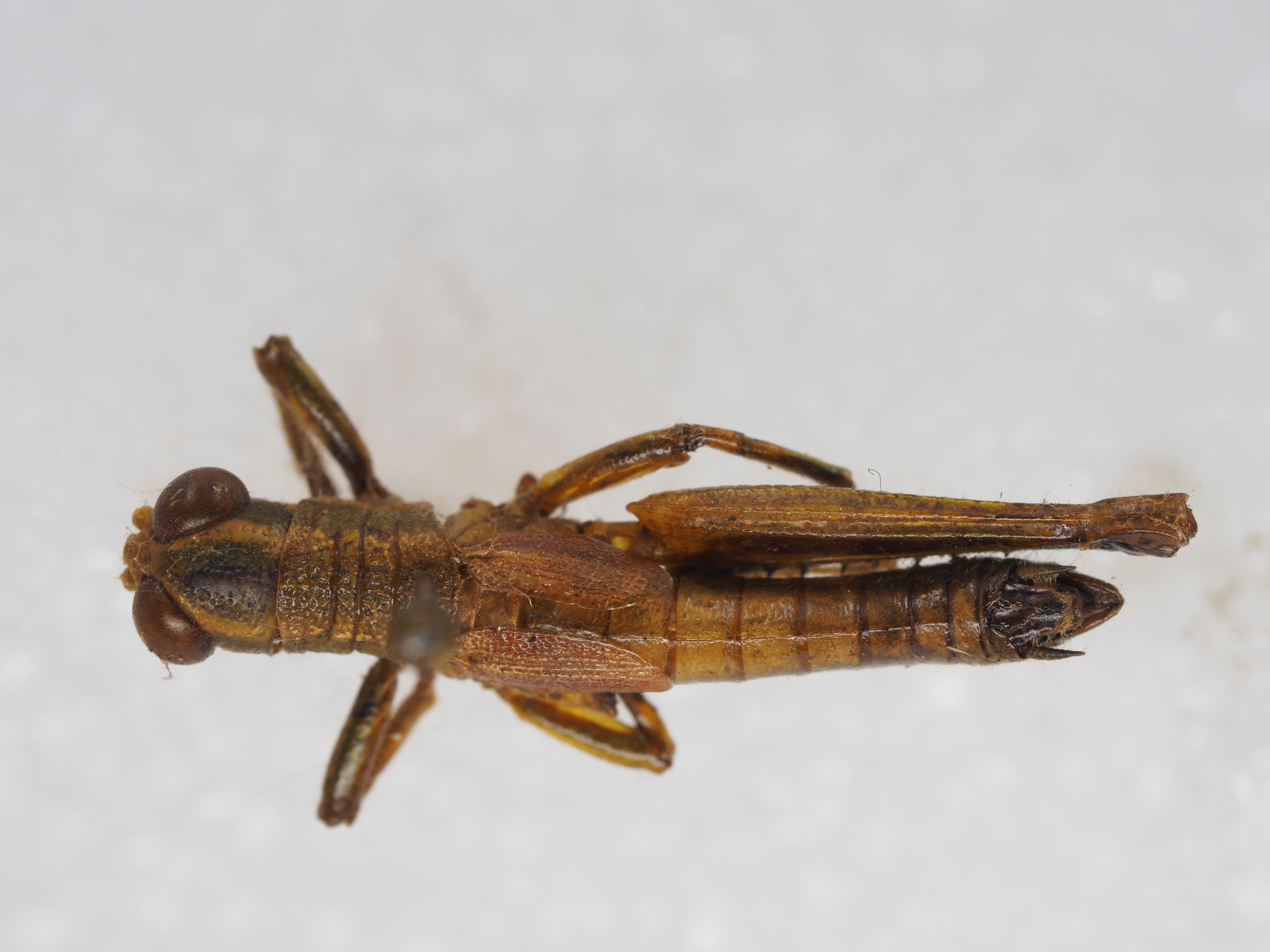 雌性 体型较大且粗壮。颜面隆起较平坦。触角近基部2/3处较宽。上、下产卵瓣外缘具钝齿。肛上板短三角形,中央具一宽纵沟。