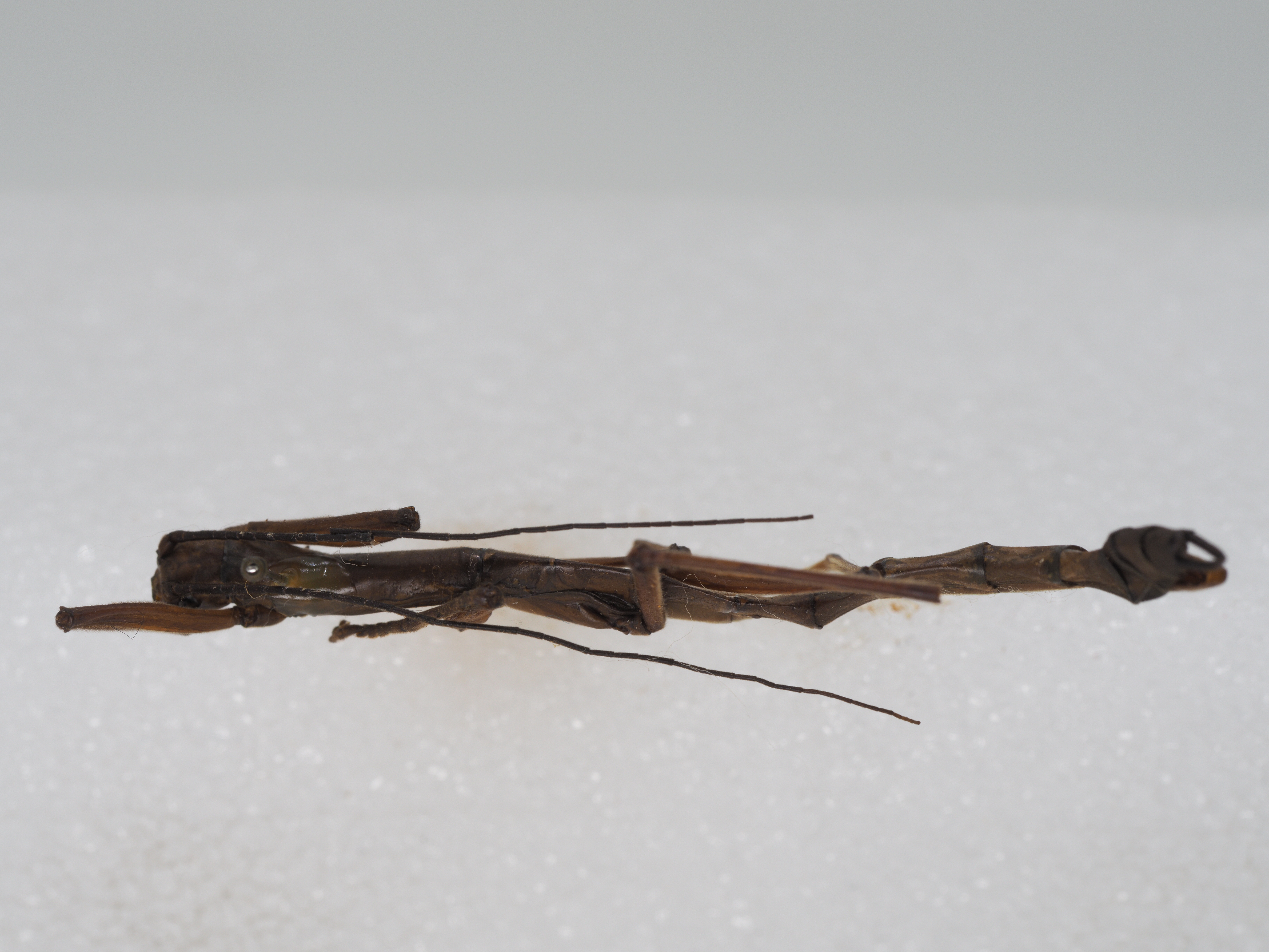 描述:雄性: 体型中等。体表光滑, 缺刺和齿突体腹面, 足及尾须等具绒毛。头方圆形; 复眼近半球形突出, 位于头部侧面; 触角丝状, 其长到达腹部第四节。前胸背板长形, 其前缘两侧各具狭椭圆形凹窝, 背板长约为宽的2 倍, 长于后胸背板( 不含中节) , 约等于中节长,横沟位于前胸背板的中部, 并割断细中隆线; 中节较长, 长为宽的2 倍, 其长大于后胸背板。前、后翅均缺。前足股节较直, 圆弧形( 横切面) , 其股节腹面较平, 具内、外隆线。胫节圆筒形, 附节5 节, 爪的内侧具细齿, 呈梳形。中、后足胫节顶端腹面具凹窝。腹部圆筒形,末端三节较短, 肛节更短, 其后缘中央深内凹, 圆弧形, 两侧角为菱角, 背面具中隆线。肛上板露出较短, 端部圆弧形。下生殖板较短, 顶端圆弧形; 尾须较长, 圆柱形, 端部略内弯, 顶端为锐角形。雌性: 体较大于雄性。肛节较短, 后缘截平, 两侧角为小三角形, 背面具中隆线, 其两边各具一个圆形凹陷; 肛上板较短, 圆弧形, 顶端钝; 尾须较长, 圆柱形, 端部略微弯, 顶端钝形, 其长超出腹部末端, 超出的部分为肛节的1.5 倍。腹瓣较短, 腹面平直, 中部之前两侧缘向顶端斜切, 顶端平切, 其长未到达肛节的中部。体色: 褐黄色或褐黑色。