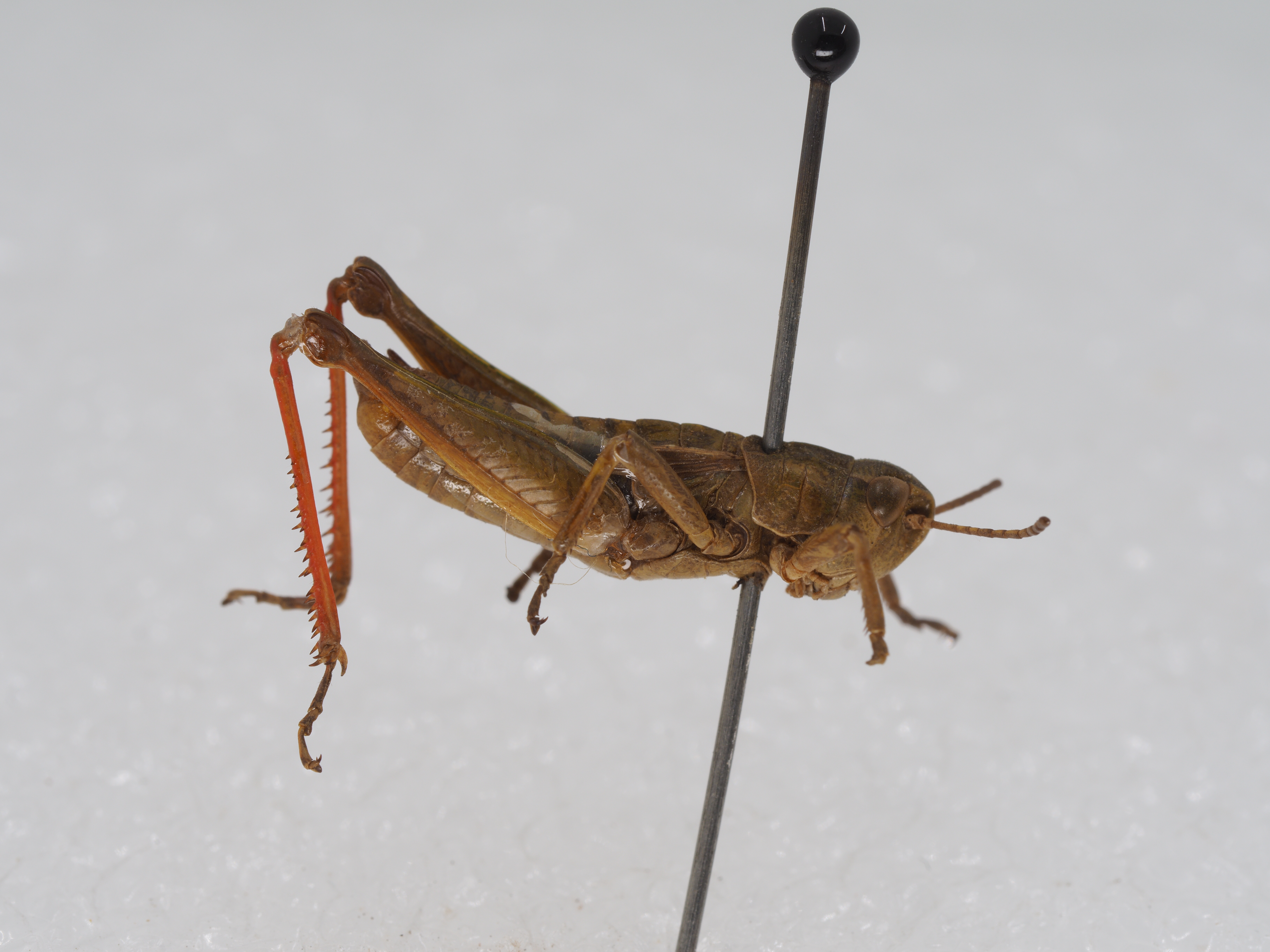 描述:雄性 头短。头顶宽短,头顶部自复眼前缘到头顶顶端的距离小于复眼横径的1.2—1.4倍。缺头侧窝。颜面极向后倾斜,颜面隆起宽平,仅在中眼处略凹陷。触角较细长,超过前胸背板后缘,22—23节,中段一节的长度为宽度的2.14倍。复眼近圆形,复眼纵径等于眼下沟长度。前胸背板较短,前缘略呈弧形突出,后缘中央具三角形切口;中隆线明显,侧隆线在中部向内弯曲,在沟后区几平行,侧隆线间最狭处小于最宽处的1.44—1.56倍;后横沟位近背板中后部,沟前区长度为沟后区长度的1.7倍。中胸腹板侧叶间中隔较宽,其最狭处为长度的1.9倍,而小于侧叶宽度的1.2倍。前翅狭长,披针形,侧置,到达或略不到达第3腹节背板后缘,翅长为宽的4.2倍,翅脉发达。后足股节匀称,长为宽的5倍。后足胫节外侧具刺12—13个,内侧具刺10个。后足跗节第一节长于第三节,爪间中垫大,几达爪顶端。腹部背板具中、侧隆线。鼓膜器大。腹部末节背板具尾片。尾须长圆筒状,略向内曲。肛上板宽平,近半圆形,顶端具三角形突出。下生殖板锥状,顶端较尖。