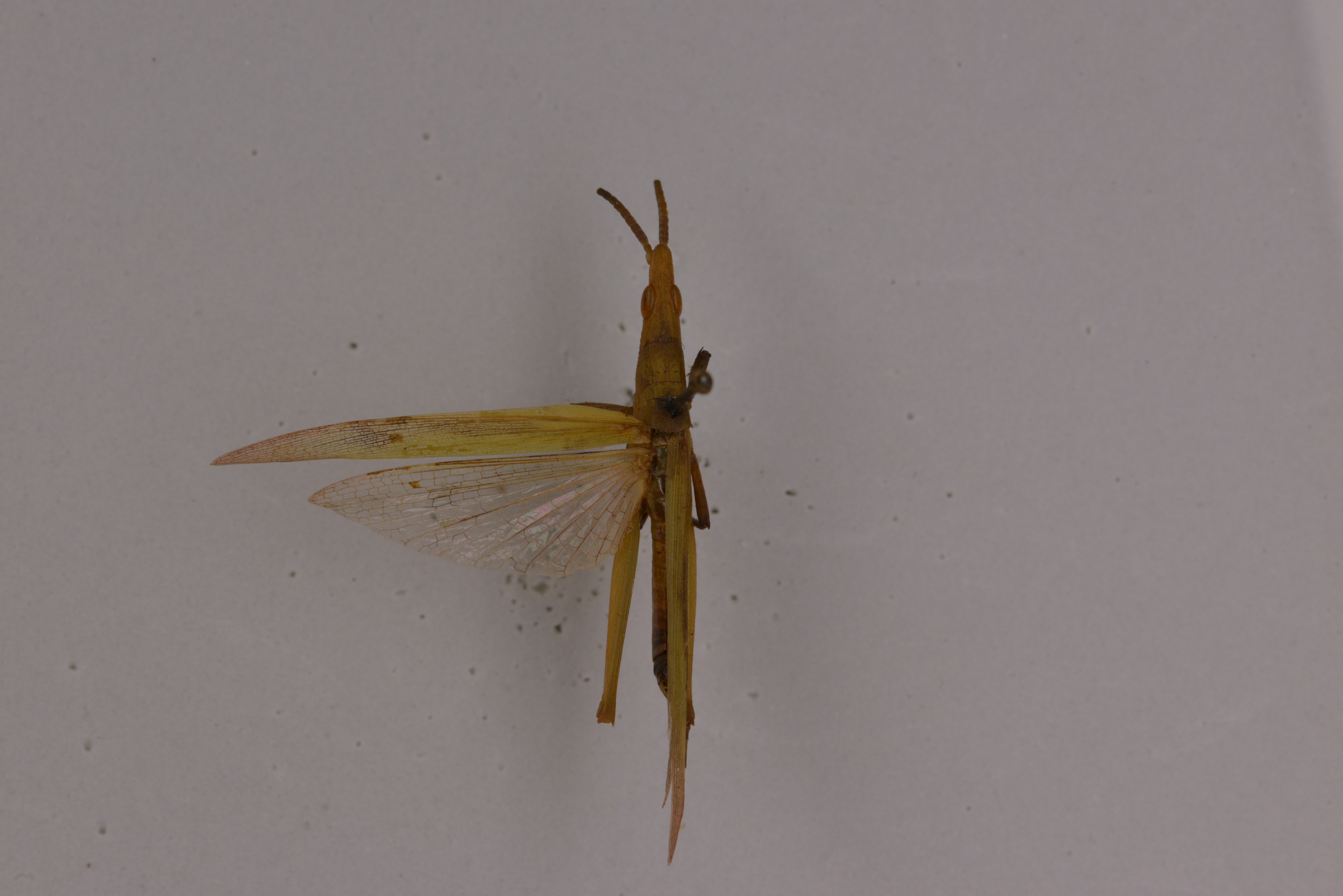 体色 草绿色或黄绿色,雄性多数个体的前翅端部略呈淡红色,后翅具不明显的淡粉红色。