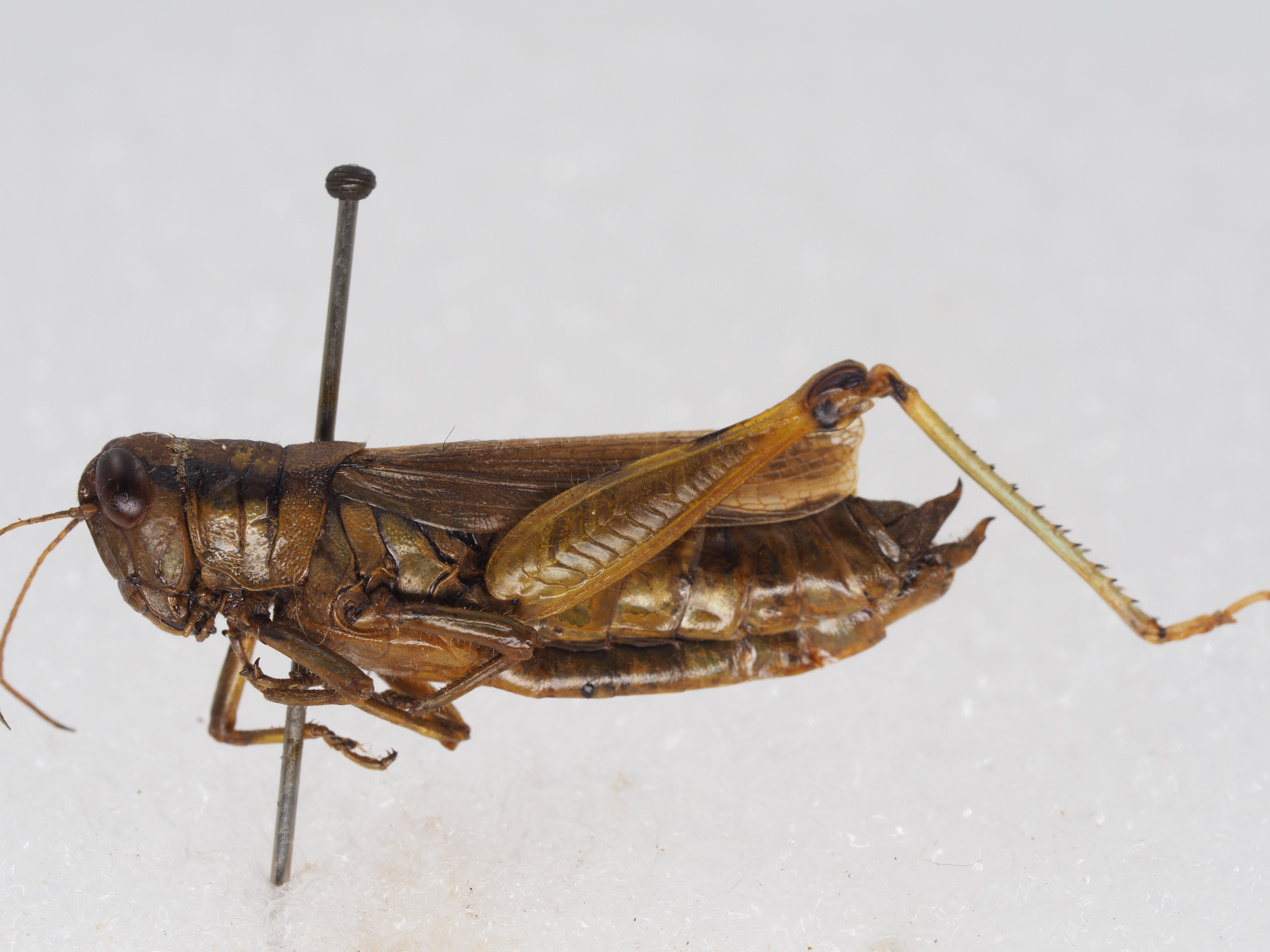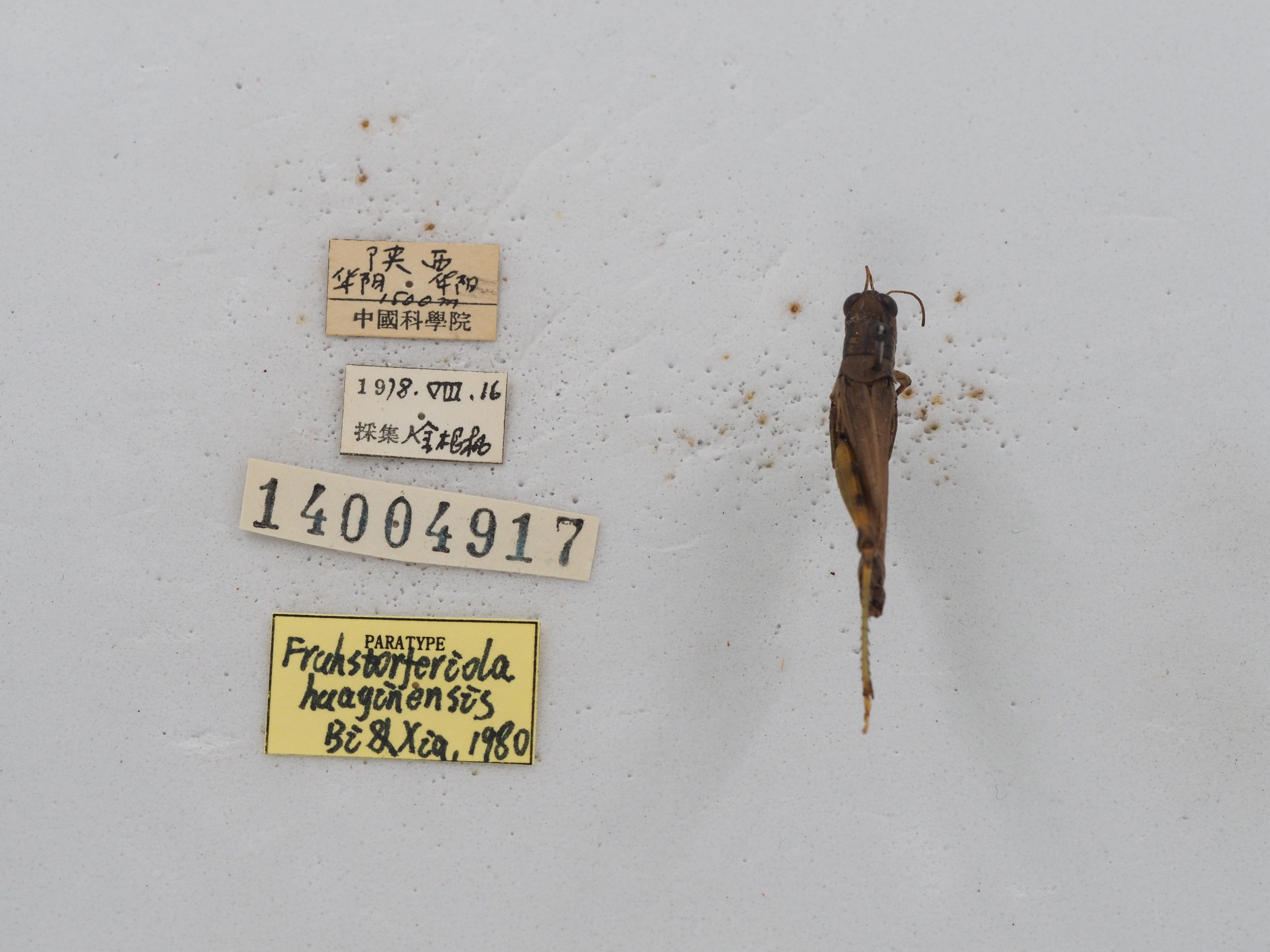 描述:雄性 体型显著较小,腹面具有较密的绒毛。头部短小,向上隆起,明显高出于前胸背板。头顶略向前倾斜,两侧缘隆线明显,中央低凹,其在复眼前之最宽处明显宽于颜面隆起。颜面明显向后倾斜,颜面隆起侧缘平行,在中央单眼之下具纵沟,到达唇基。复眼大而突出,卵圆形,其垂直的直径为其水平直径的1.1~1.4倍,为其眼下沟长度的1.4~2.0倍。触角细长,远远超过前胸背板后缘,24节。前胸背板狭长,其前缘宽平,后缘为圆弧形,缺侧隆线;中隆线在沟后区较明显;3条横沟均切断中隆线;后横沟位于后端,为沟前区的长度的1.2倍,沟后区具粗大刻点。前胸腹板突为短锥形,略向后倾斜,端部狭锐。前、后翅均发达,几乎等长,但都不超过后足股节端部,刚到达或略不到达股节端部;端部狭圆。后足股节匀称,上隆线缺细齿;上侧外缘具刺8~11个,缺外端刺,内缘具刺10~11个(包括内端刺)。腹端最后一节后缘具有较不明显的尾片,圆形,基部明显分开。肛上板为短三角形,其宽略大于长,中央自基部具有细长纵沟,纵沟之两侧低凹;基部两侧各具一短隆线,端部两侧也各具一短线。尾须侧扁,端部明显向内弯曲,其长刚超过肛上板端部;由侧面观之,中部略狭,基部较宽,端部明显膨大(图118f)。下生殖板为短锥形,端部细狭而向上延伸。