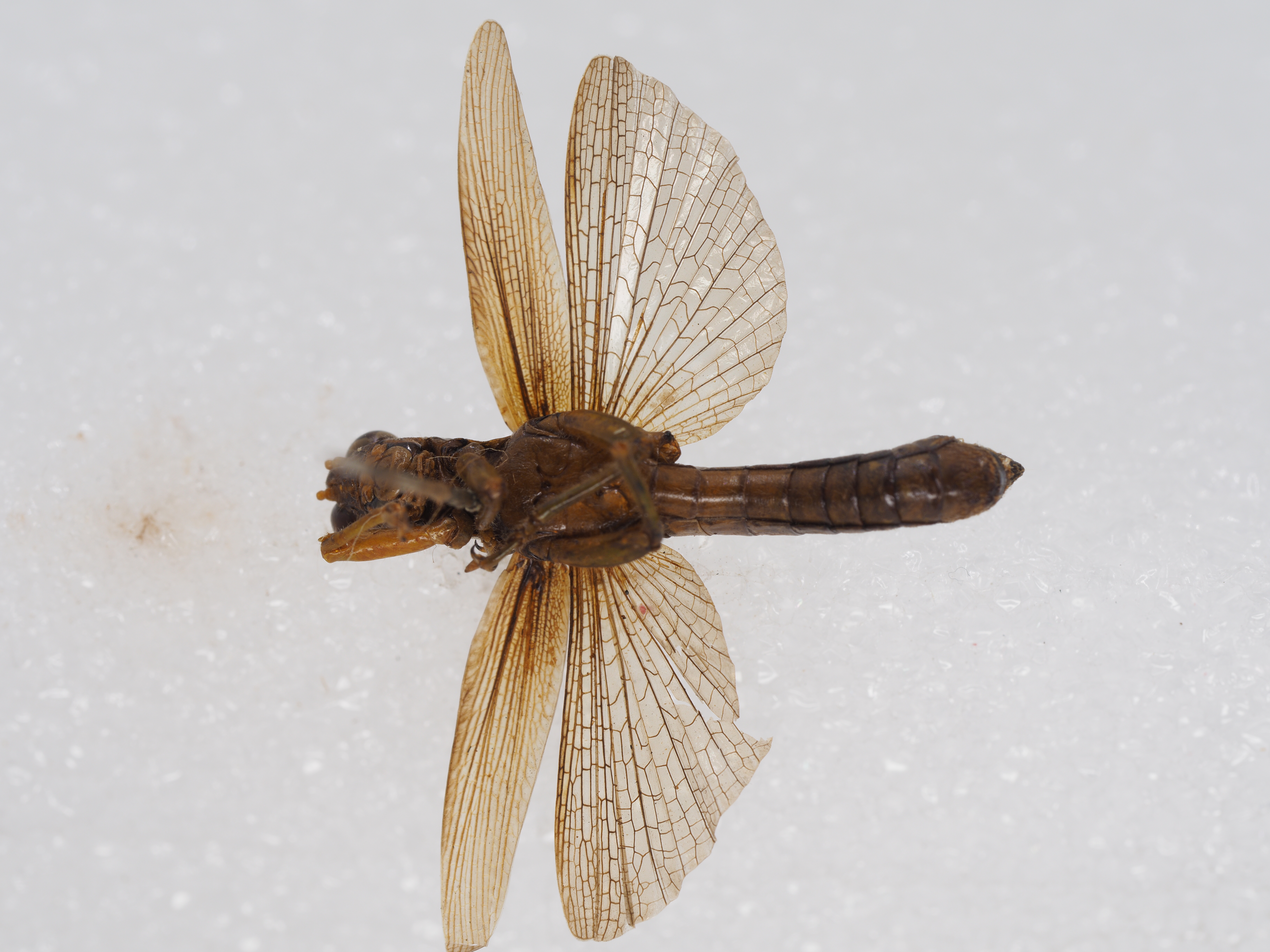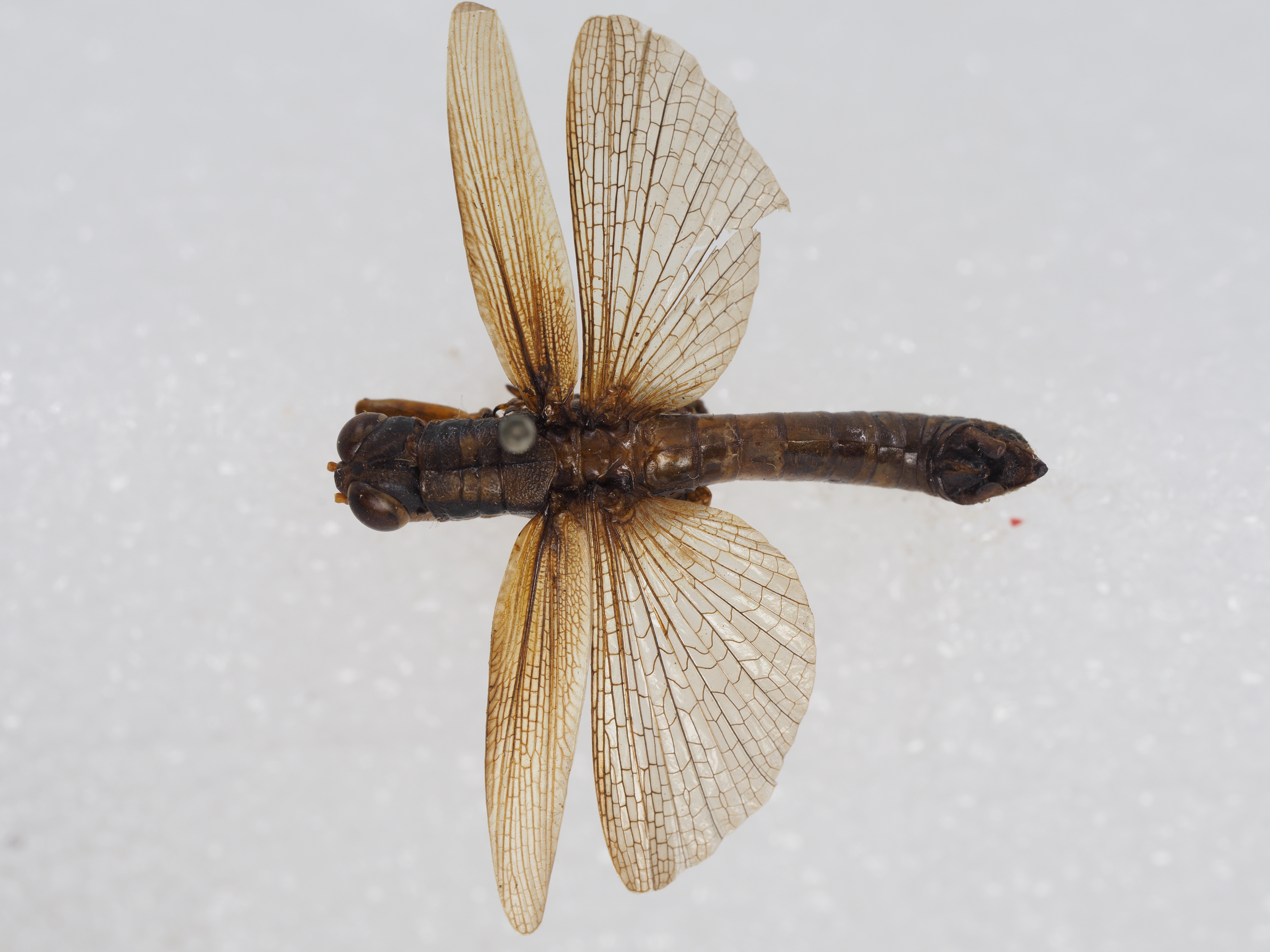 雌性 同雄性,但体型显著较大。肛上板为长三角形,基部中央具不明显的卵形凹陷。尾须为短锥形,远远不到达肛上板端部。下生殖板宽短,其后缘中央之三个齿较靠近,且较突出。体色同雄性。