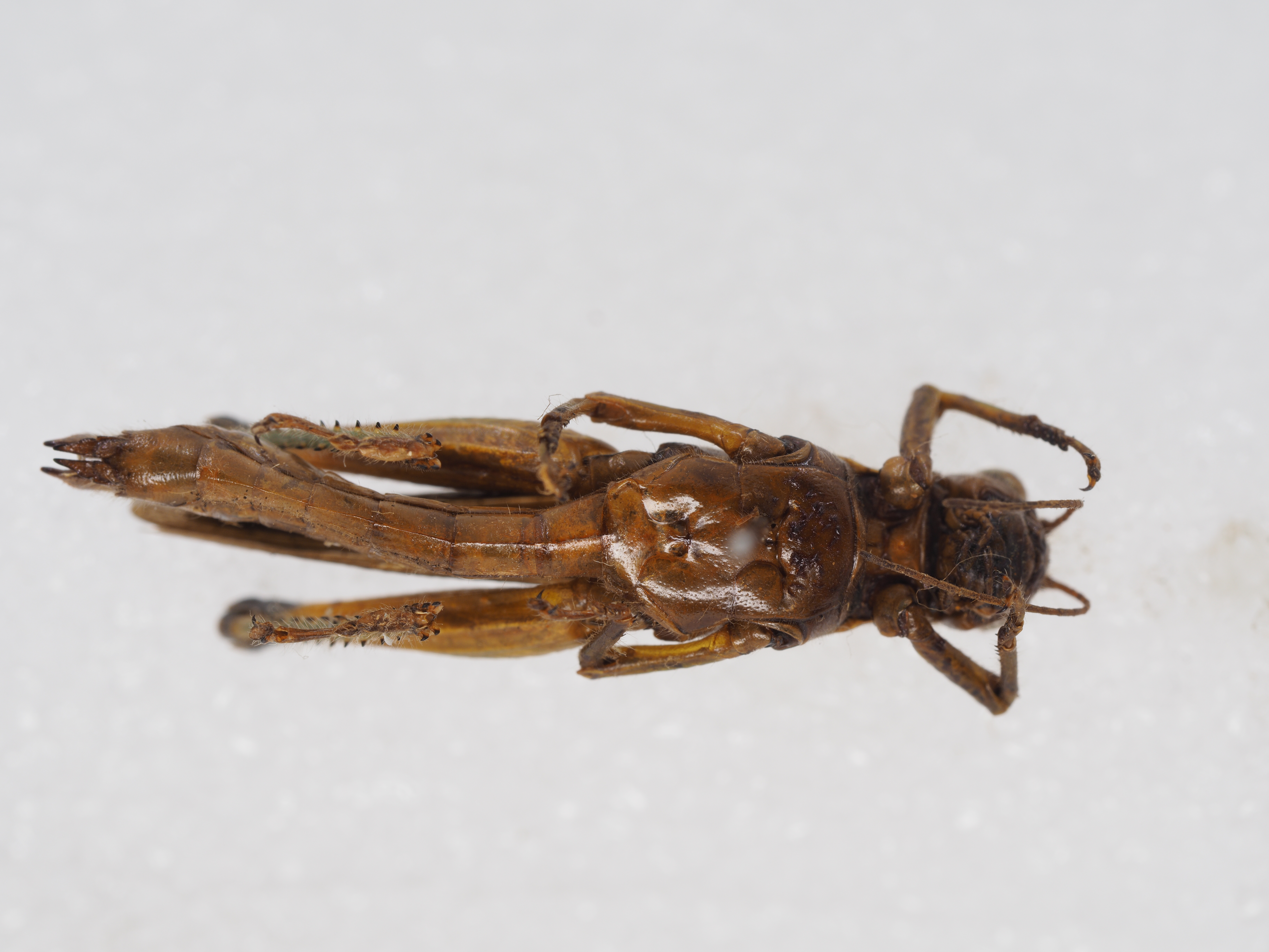 体长:♂24~28mm,♀29~35mm;前胸背板:♂5.5~5.7mm,♀6.6~7.1mm;前翅:♂17~19mm,♀21.25mm;后足股节:♂12.5~14mm,♀15~19mm。