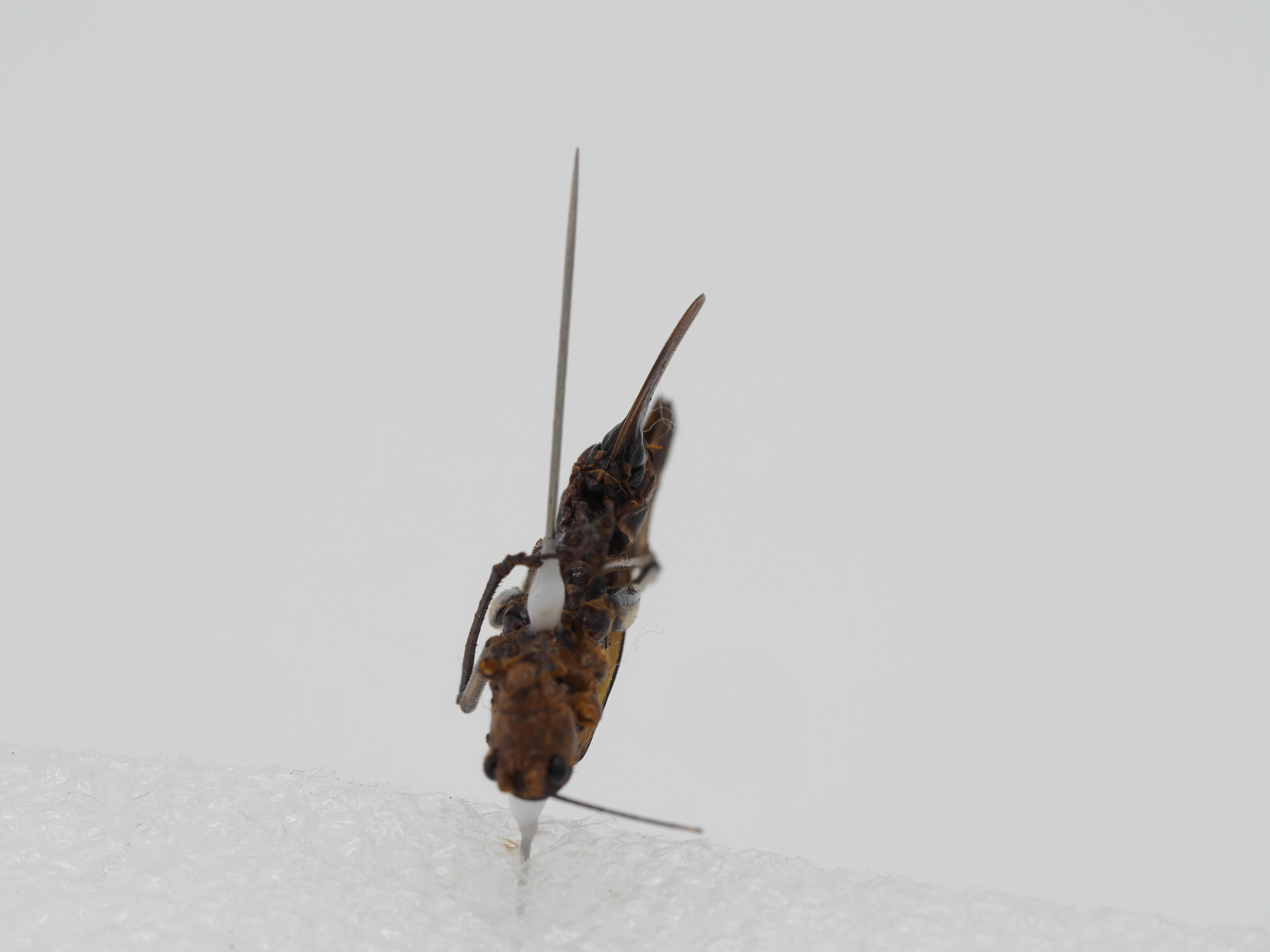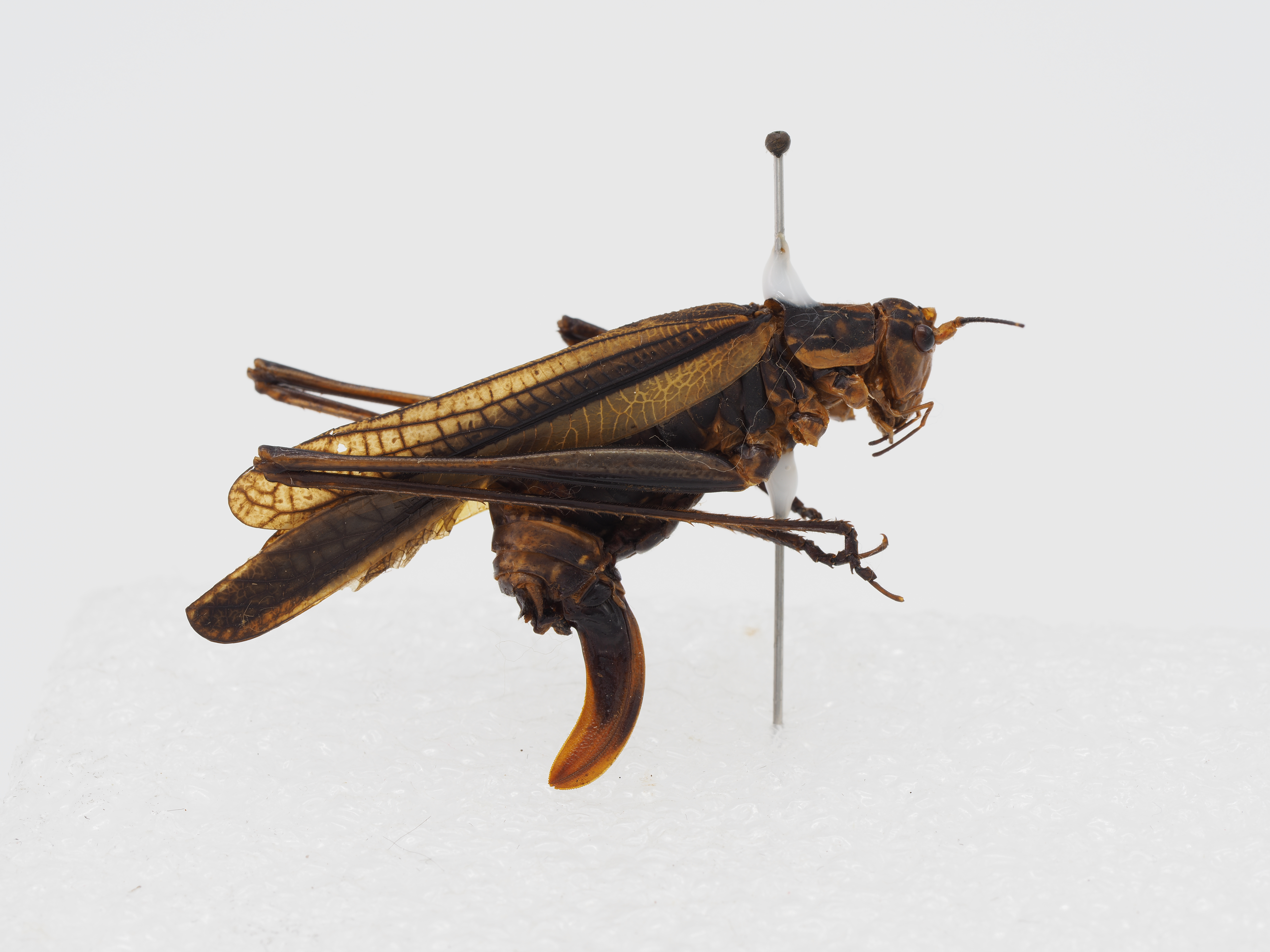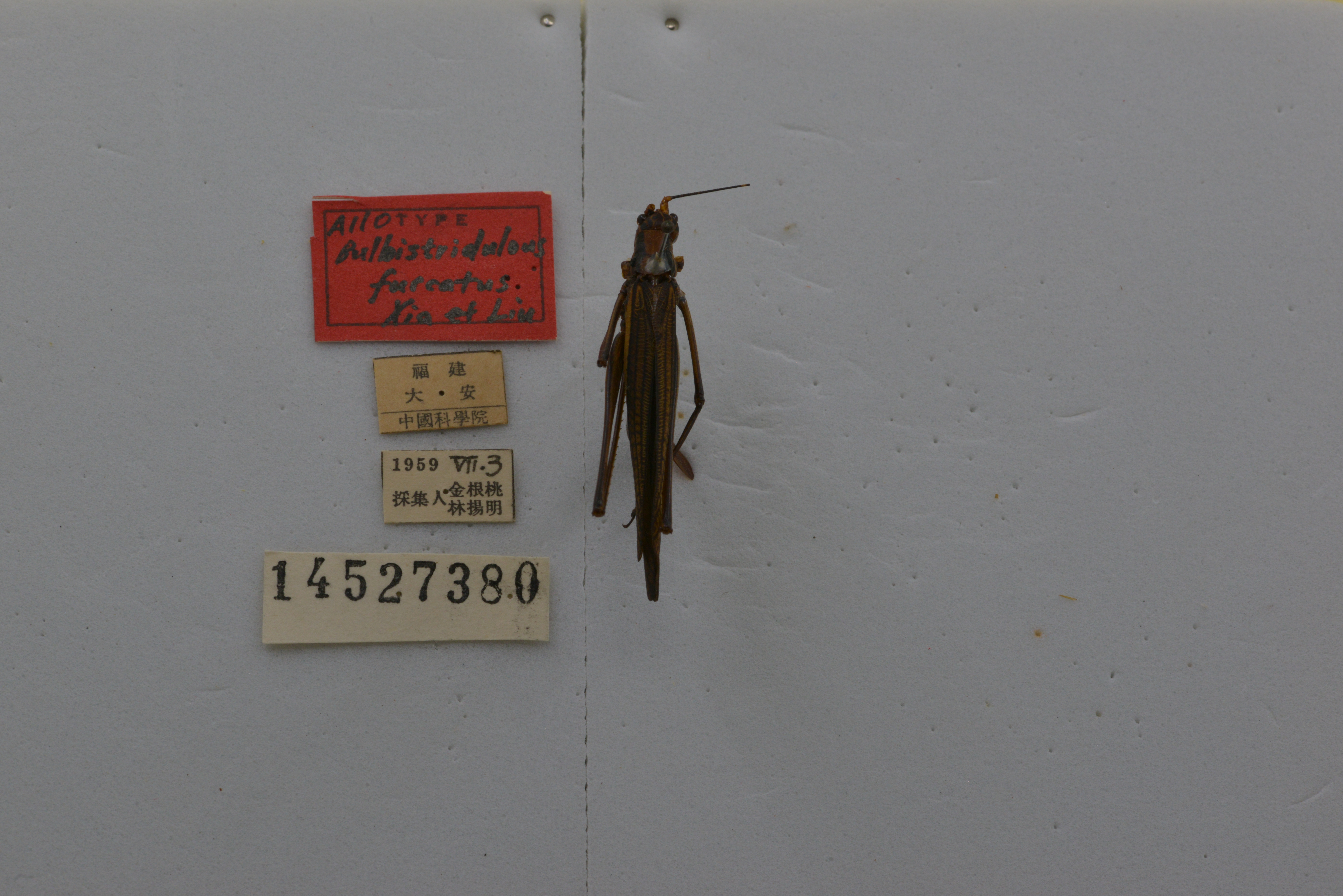 描述:雄性:头顶侧扁, 狭于触角第一节,背面具沟。复眼卵圆形,突出。前胸背板后缘平切形或微内凹,缺侧隆线,侧片长大于高,肩凹不明显。前翅稍微超过后足股节端部,缺光泽和不透明,R脉具3 分枝,Rs脉简单或中部之后具分叉; Cu2脉甚粗大;后缘在发音区之后具较深的凹口。第十腹节骨板后缘两侧稍微增厚。肛上板甚大,向端部渐扩宽,后缘微内凹;端半部较强地向上弯曲,基部表面具纵沟。尾须延长,圆柱形,端部分成2枝,上枝较长,锐齿形,其腹缘具细齿。下生殖板稍短,纵裂大于其全长的1/2,裂叶较宽地分开并较强地向上弯曲,末端向外弯曲呈钩状。雌性肛上板近似矩形,后缘呈宽圆形,背面具沟。尾须短而细,圆锥形。下生殖板三角形,顶端圆形。体杂色具黑色和黄褐色。头部背面黑色,具5条较明显的黄线,触角(除基部两节外)黑色,具稀疏的白色环纹。前胸背板背面赤褐色,侧片黑色,沿下缘具较宽的边。前翅前缘脉域黄色,其他脉域暗褐色;翅室内的网状脉稍带黄色。腹部睛黑色,背面两侧各具一条淡黄色狭条纹。尾须黄褐色, 端部暗色,产卵瓣基半部黑色,端半部褐色。