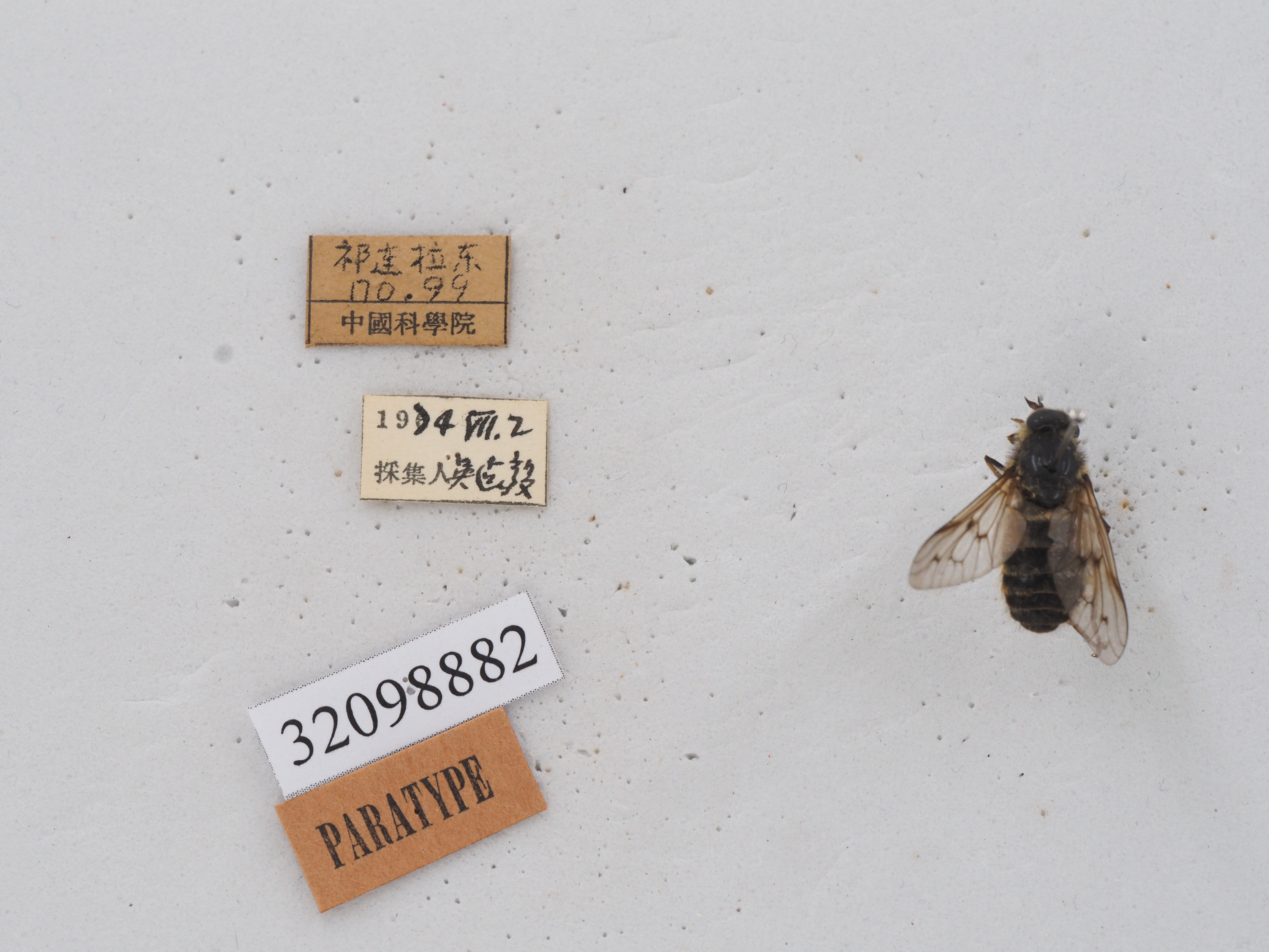 描述:雌虫体长14-15毫米。头部:前额黑色,复灰黑色粉被,具少量黑毛,两侧大致平行,高度为基部宽度的3倍,额板半圆形,与眼及额下板接触。中额板线形不显著,与额板分离。额下板及颊黑色,复灰粉被。颊上部具黒毛,下部及磨具淡黄色毛。单眼瘤明显。触角黑色,第1、2节具黑色长毛,第3节第1环节背缘有不明显的钝突,基部橙色,第1环节长度约其余几个环节总长的1.6倍。下颚须灰黑色,具黑毛及少量淡黄色毛。长度为最宽处宽的4倍。