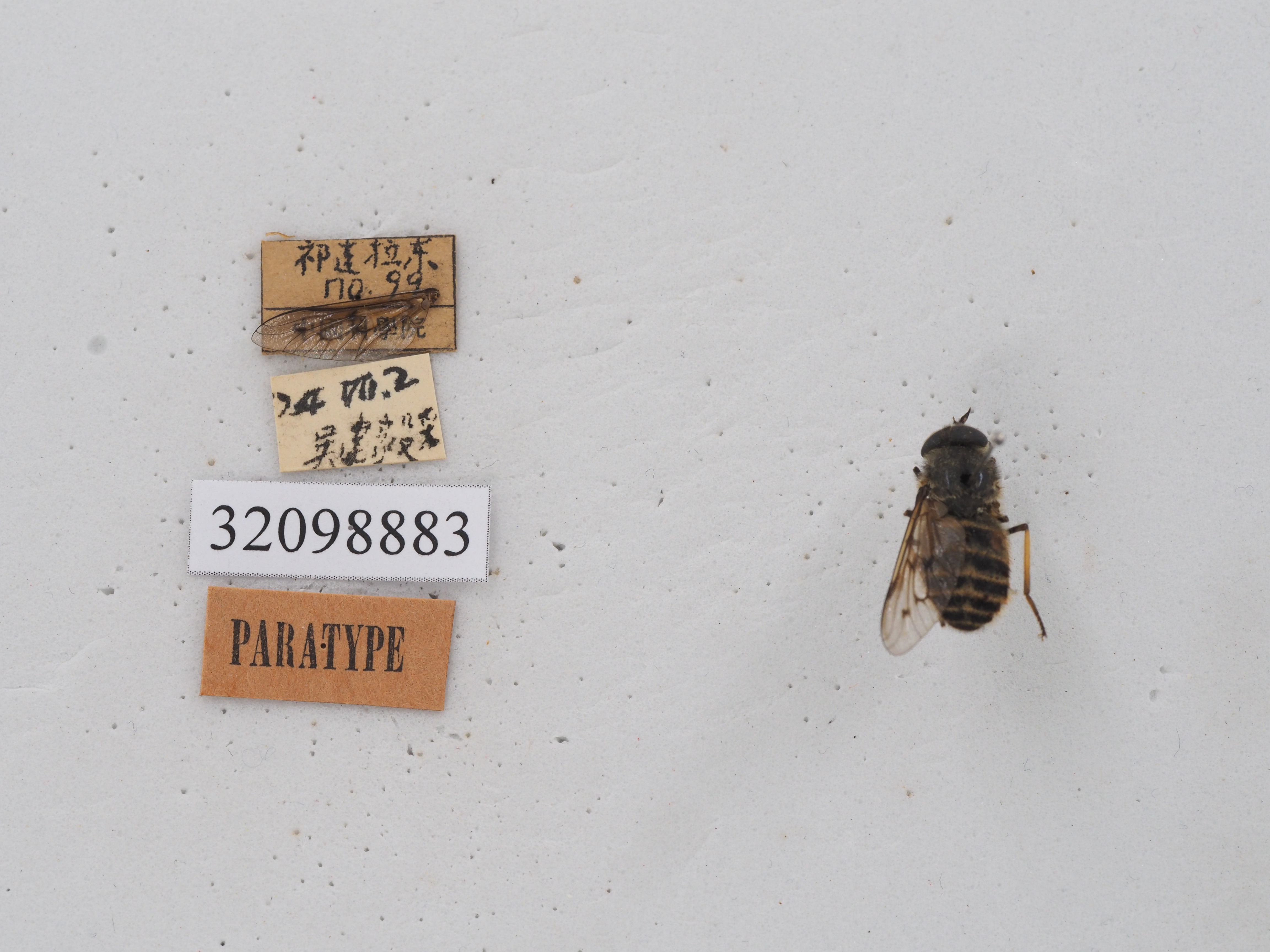 描述:雌虫体长14-15毫米。头部:前额黑色,复灰黑色粉被,具少量黑毛,两侧大致平行,高度为基部宽度的3倍,额板半圆形,与眼及额下板接触。中额板线形不显著,与额板分离。额下板及颊黑色,复灰粉被。颊上部具黒毛,下部及磨具淡黄色毛。单眼瘤明显。触角黑色,第1、2节具黑色长毛,第3节第1环节背缘有不明显的钝突,基部橙色,第1环节长度约其余几个环节总长的1.6倍。下颚须灰黑色,具黑毛及少量淡黄色毛。长度为最宽处宽的4倍。