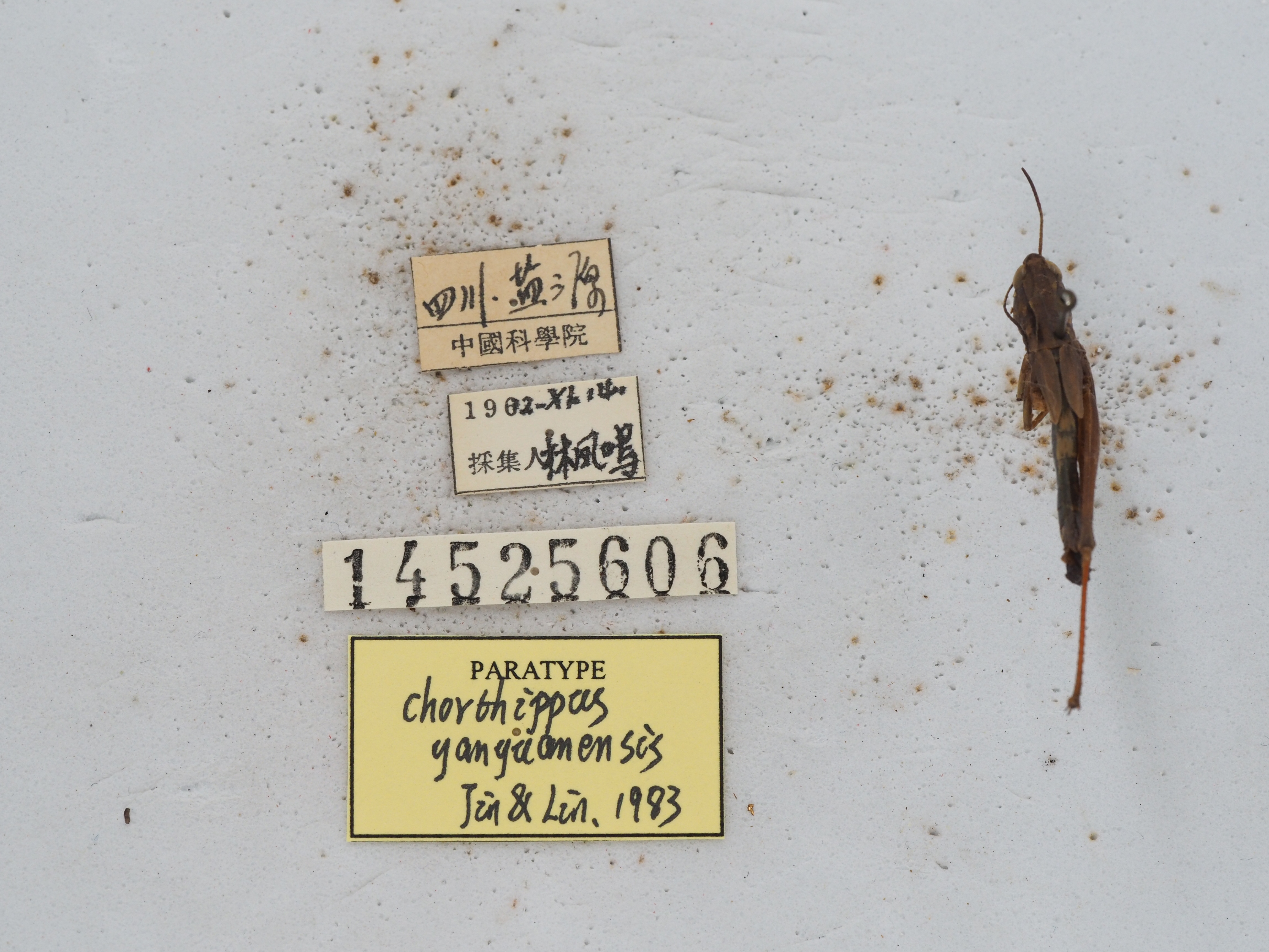 描述:雄性 体小型。头顶前缘呈锐角形,接近直角。头侧窝狭长方形,其长为宽的4.3倍。颜面倾斜,颜面隆起边缘不明显,中央略凹陷。触角细长,超过后足股节基部,不到达中部,中段一节长为宽的1.5倍。复眼较小,纵径为眼下沟长的1.5—1.7倍。后横沟位于中部之后,其中央略向前弯曲,切断中、侧隆线,沟前区略长于沟后区;前、中横沟均不切断侧隆线。中腹腹板侧叶间中隔较宽,其宽大于长。前翅短,不到达腹端,仅超过第6腹节背板的后缘,前翅长约为宽的3倍,缘前脉域略超过前翅中部,具闰脉;前缘脉域宽约等于中脉域之宽,并与肘脉域等宽。后翅极小,呈翅芽状。后足股节匀称,内侧下隆线具音齿104(±3),音齿列长3.2mm,音齿短锥形。跗节爪间中垫宽大,长于爪之一半。鼓膜孔宽卵形,长为宽的2倍。肛上板三角形,基部中央具一短纵沟,不到达端部。下生殖板短锥形,顶钝。尾须锥形,略超过肛上板端部。阳具基背片及阳茎复合体如图。