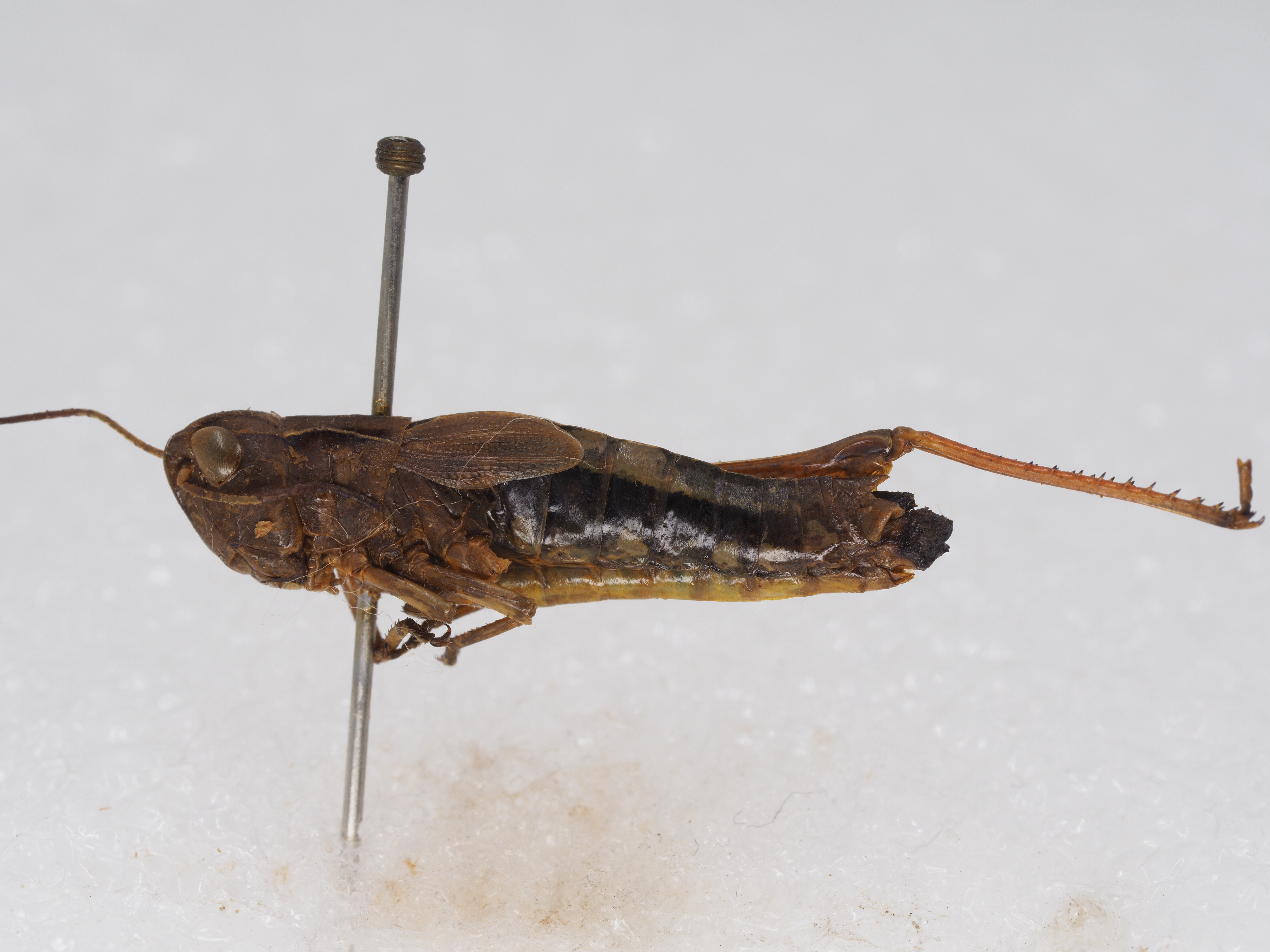 前胸背板长:♂3.1—3.3mm,♀4—4.2mm;后股节长:♂10.1—10.7mm,♀11.7—12.7mm。