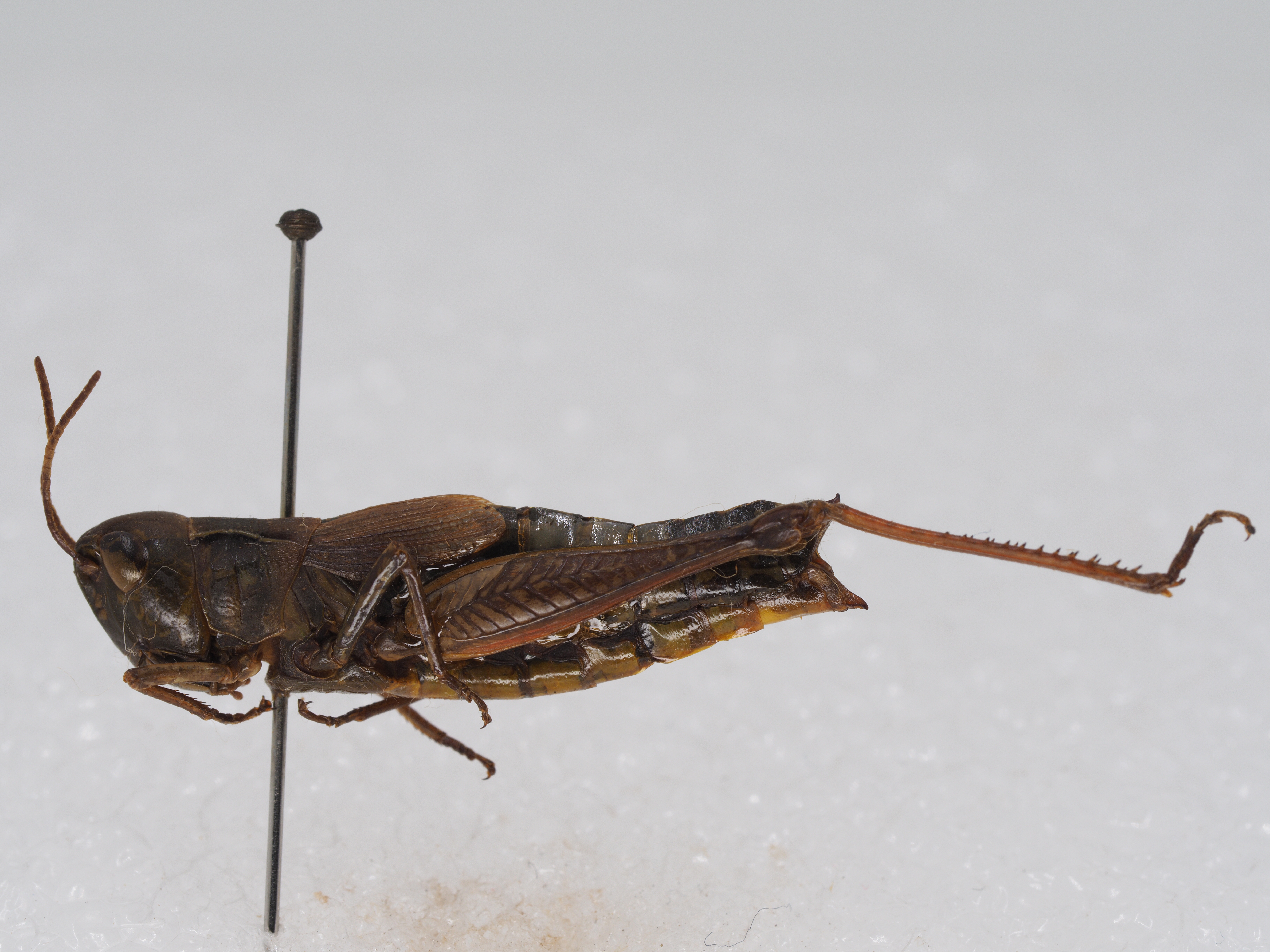 前胸背板长:♂3.1—3.3mm,♀4—4.2mm;后股节长:♂10.1—10.7mm,♀11.7—12.7mm。