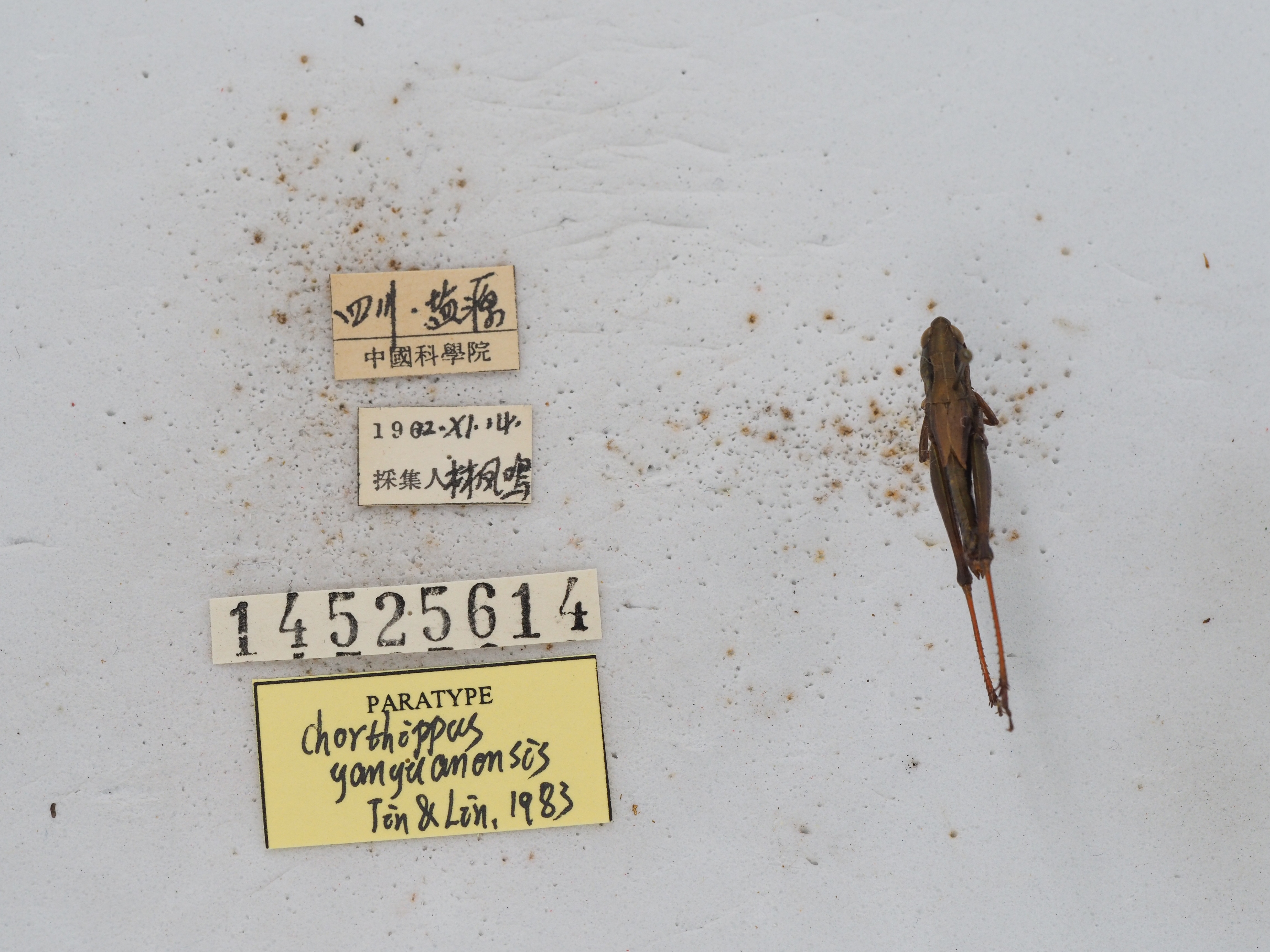 描述:雄性 体小型。头顶前缘呈锐角形,接近直角。头侧窝狭长方形,其长为宽的4.3倍。颜面倾斜,颜面隆起边缘不明显,中央略凹陷。触角细长,超过后足股节基部,不到达中部,中段一节长为宽的1.5倍。复眼较小,纵径为眼下沟长的1.5—1.7倍。后横沟位于中部之后,其中央略向前弯曲,切断中、侧隆线,沟前区略长于沟后区;前、中横沟均不切断侧隆线。中腹腹板侧叶间中隔较宽,其宽大于长。前翅短,不到达腹端,仅超过第6腹节背板的后缘,前翅长约为宽的3倍,缘前脉域略超过前翅中部,具闰脉;前缘脉域宽约等于中脉域之宽,并与肘脉域等宽。后翅极小,呈翅芽状。后足股节匀称,内侧下隆线具音齿104(±3),音齿列长3.2mm,音齿短锥形。跗节爪间中垫宽大,长于爪之一半。鼓膜孔宽卵形,长为宽的2倍。肛上板三角形,基部中央具一短纵沟,不到达端部。下生殖板短锥形,顶钝。尾须锥形,略超过肛上板端部。阳具基背片及阳茎复合体如图。