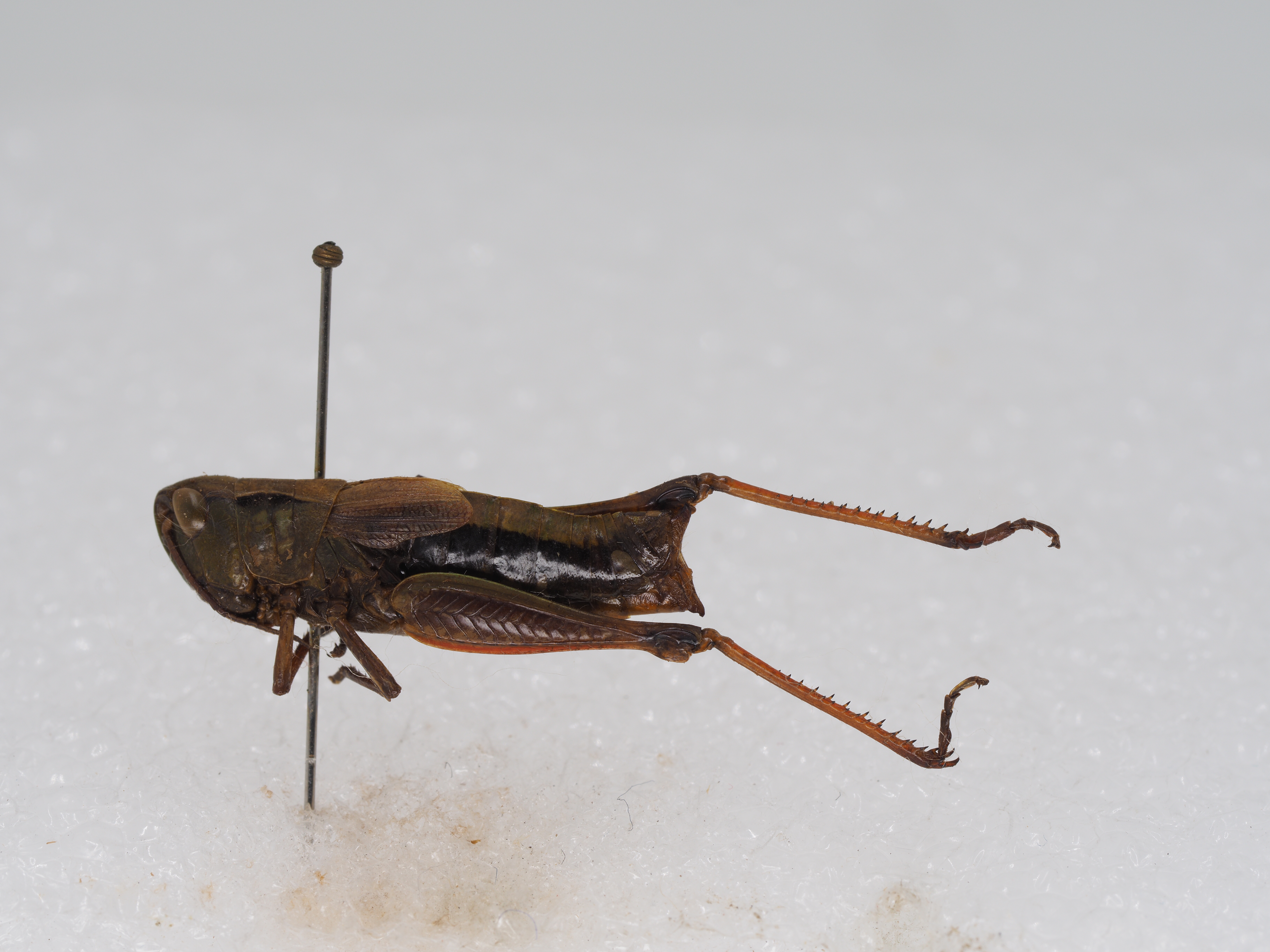 前胸背板长:♂3.1—3.3mm,♀4—4.2mm;后股节长:♂10.1—10.7mm,♀11.7—12.7mm。