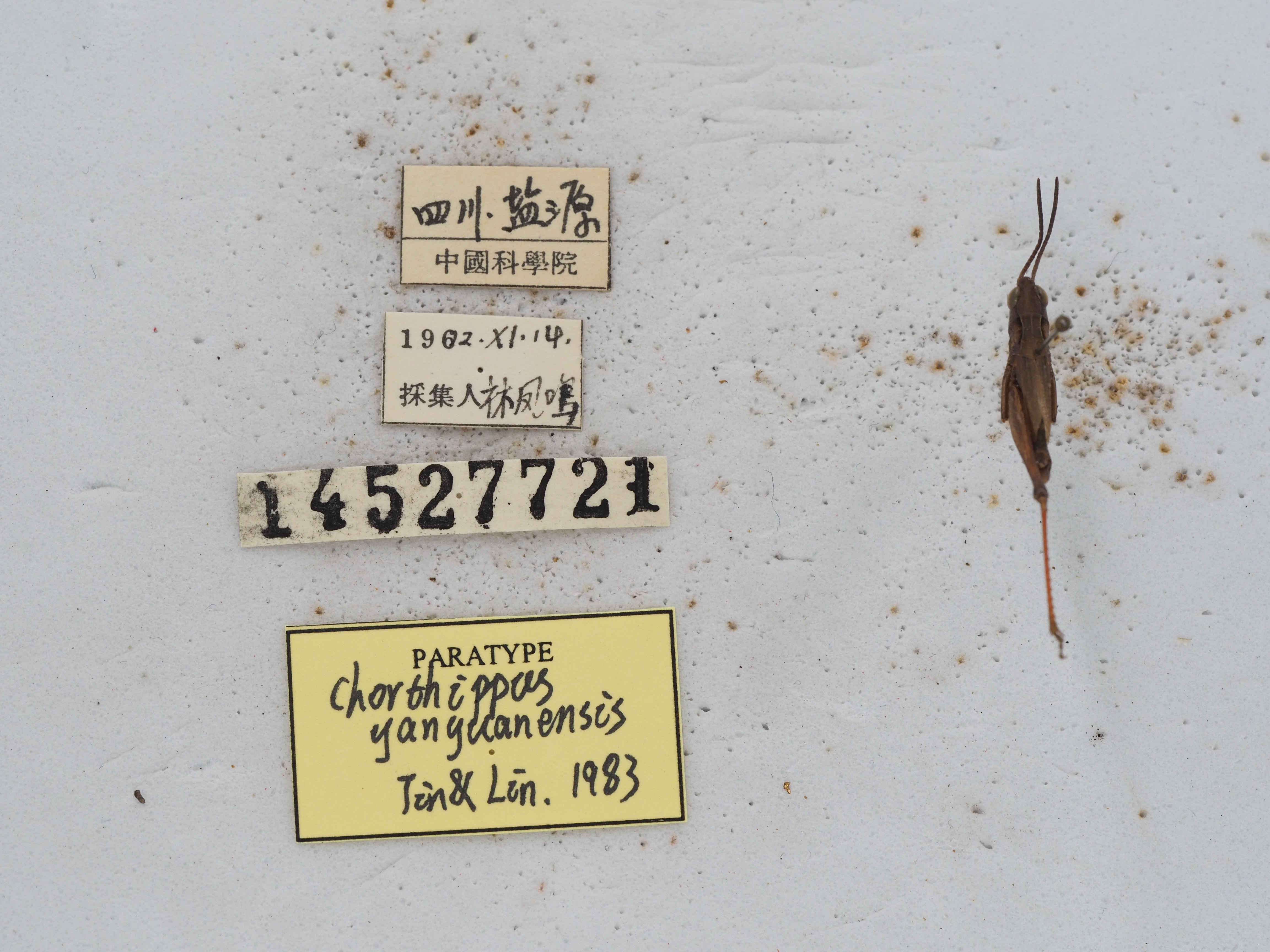 描述:雄性 体小型。头顶前缘呈锐角形,接近直角。头侧窝狭长方形,其长为宽的4.3倍。颜面倾斜,颜面隆起边缘不明显,中央略凹陷。触角细长,超过后足股节基部,不到达中部,中段一节长为宽的1.5倍。复眼较小,纵径为眼下沟长的1.5—1.7倍。后横沟位于中部之后,其中央略向前弯曲,切断中、侧隆线,沟前区略长于沟后区;前、中横沟均不切断侧隆线。中腹腹板侧叶间中隔较宽,其宽大于长。前翅短,不到达腹端,仅超过第6腹节背板的后缘,前翅长约为宽的3倍,缘前脉域略超过前翅中部,具闰脉;前缘脉域宽约等于中脉域之宽,并与肘脉域等宽。后翅极小,呈翅芽状。后足股节匀称,内侧下隆线具音齿104(±3),音齿列长3.2mm,音齿短锥形。跗节爪间中垫宽大,长于爪之一半。鼓膜孔宽卵形,长为宽的2倍。肛上板三角形,基部中央具一短纵沟,不到达端部。下生殖板短锥形,顶钝。尾须锥形,略超过肛上板端部。阳具基背片及阳茎复合体如图。