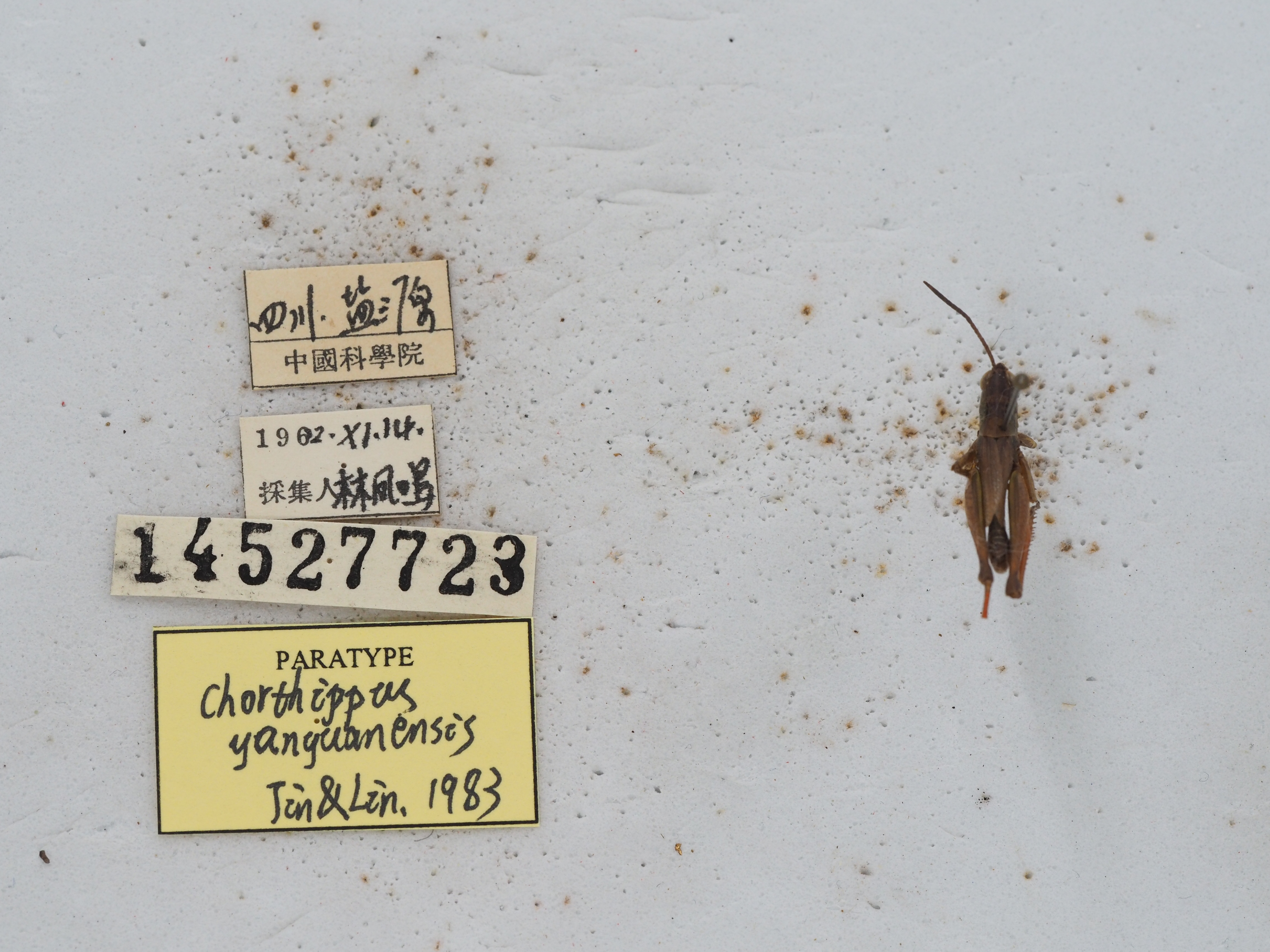 描述:雄性 体小型。头顶前缘呈锐角形,接近直角。头侧窝狭长方形,其长为宽的4.3倍。颜面倾斜,颜面隆起边缘不明显,中央略凹陷。触角细长,超过后足股节基部,不到达中部,中段一节长为宽的1.5倍。复眼较小,纵径为眼下沟长的1.5—1.7倍。后横沟位于中部之后,其中央略向前弯曲,切断中、侧隆线,沟前区略长于沟后区;前、中横沟均不切断侧隆线。中腹腹板侧叶间中隔较宽,其宽大于长。前翅短,不到达腹端,仅超过第6腹节背板的后缘,前翅长约为宽的3倍,缘前脉域略超过前翅中部,具闰脉;前缘脉域宽约等于中脉域之宽,并与肘脉域等宽。后翅极小,呈翅芽状。后足股节匀称,内侧下隆线具音齿104(±3),音齿列长3.2mm,音齿短锥形。跗节爪间中垫宽大,长于爪之一半。鼓膜孔宽卵形,长为宽的2倍。肛上板三角形,基部中央具一短纵沟,不到达端部。下生殖板短锥形,顶钝。尾须锥形,略超过肛上板端部。阳具基背片及阳茎复合体如图。