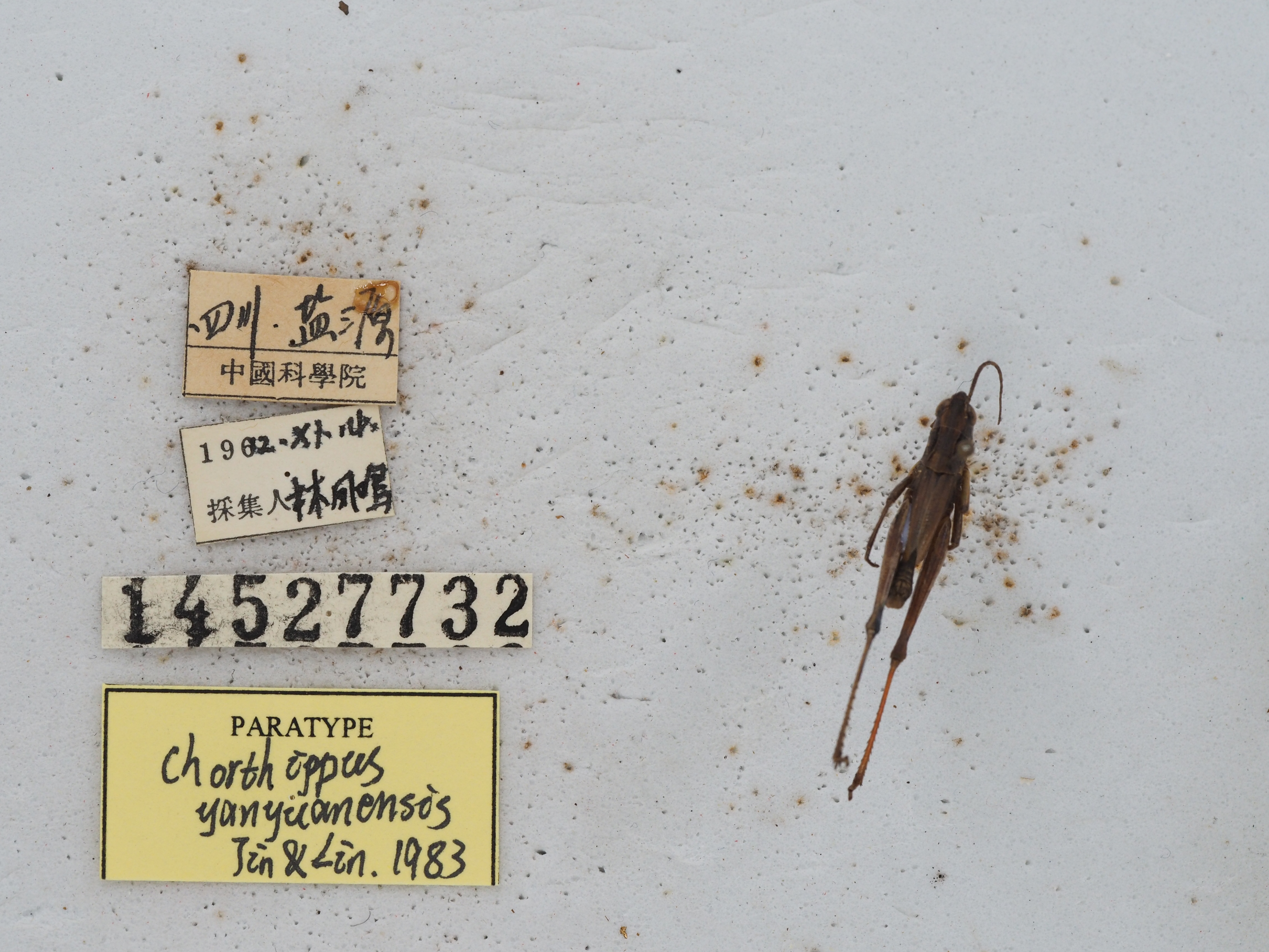 描述:雄性 体小型。头顶前缘呈锐角形,接近直角。头侧窝狭长方形,其长为宽的4.3倍。颜面倾斜,颜面隆起边缘不明显,中央略凹陷。触角细长,超过后足股节基部,不到达中部,中段一节长为宽的1.5倍。复眼较小,纵径为眼下沟长的1.5—1.7倍。后横沟位于中部之后,其中央略向前弯曲,切断中、侧隆线,沟前区略长于沟后区;前、中横沟均不切断侧隆线。中腹腹板侧叶间中隔较宽,其宽大于长。前翅短,不到达腹端,仅超过第6腹节背板的后缘,前翅长约为宽的3倍,缘前脉域略超过前翅中部,具闰脉;前缘脉域宽约等于中脉域之宽,并与肘脉域等宽。后翅极小,呈翅芽状。后足股节匀称,内侧下隆线具音齿104(±3),音齿列长3.2mm,音齿短锥形。跗节爪间中垫宽大,长于爪之一半。鼓膜孔宽卵形,长为宽的2倍。肛上板三角形,基部中央具一短纵沟,不到达端部。下生殖板短锥形,顶钝。尾须锥形,略超过肛上板端部。阳具基背片及阳茎复合体如图。