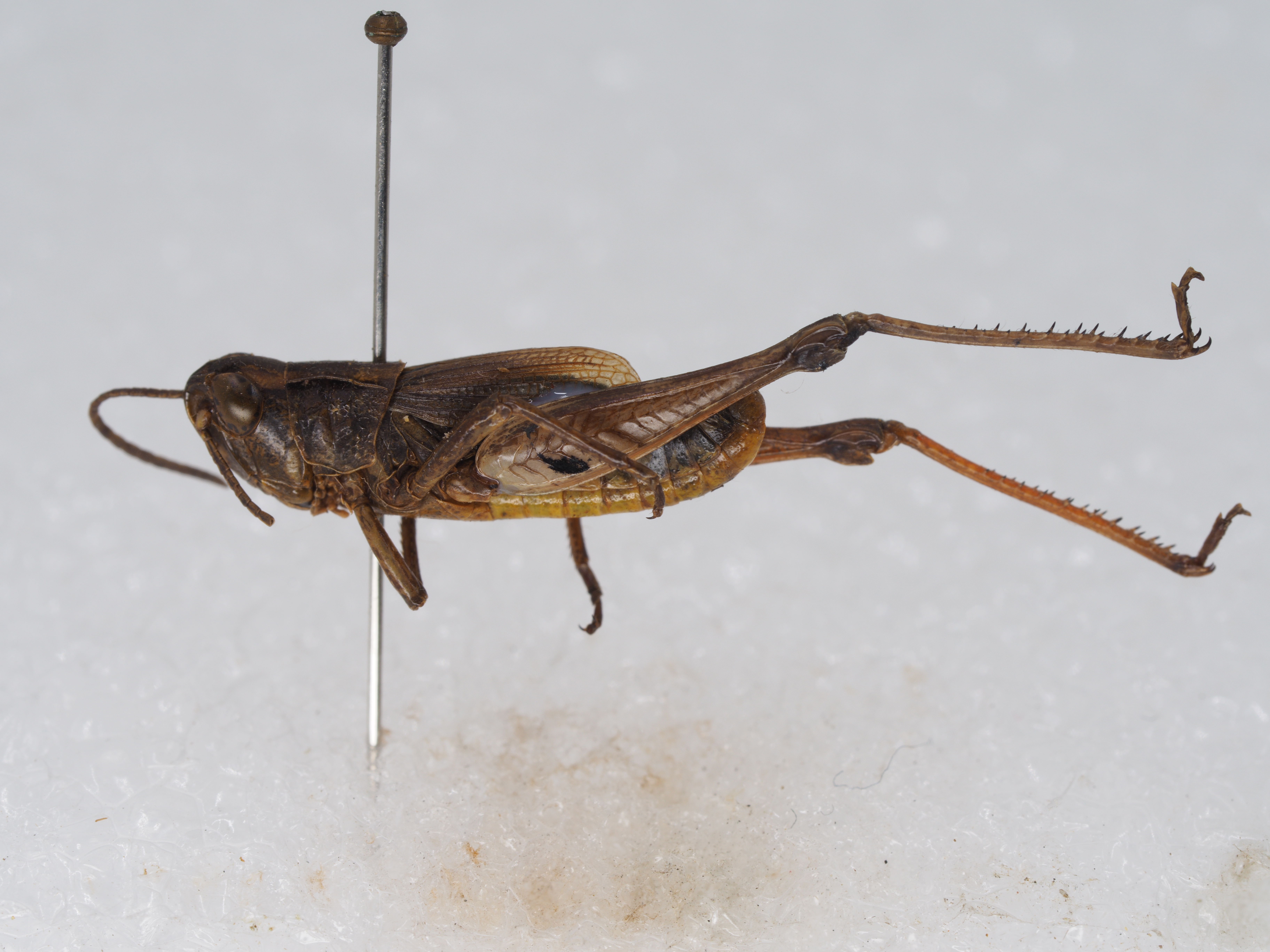 前胸背板长:♂3.1—3.3mm,♀4—4.2mm;后股节长:♂10.1—10.7mm,♀11.7—12.7mm。