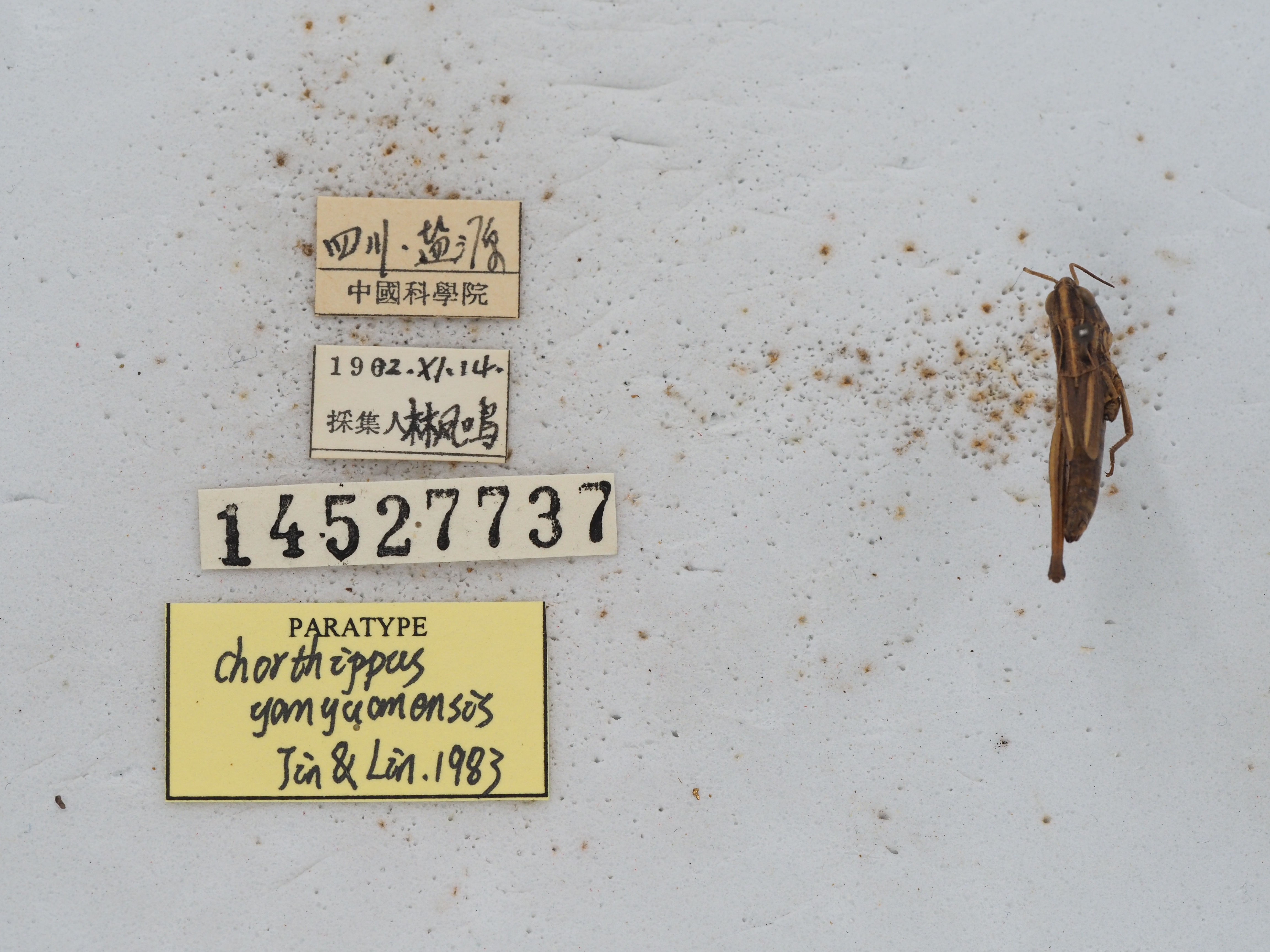 描述:雄性 体小型。头顶前缘呈锐角形,接近直角。头侧窝狭长方形,其长为宽的4.3倍。颜面倾斜,颜面隆起边缘不明显,中央略凹陷。触角细长,超过后足股节基部,不到达中部,中段一节长为宽的1.5倍。复眼较小,纵径为眼下沟长的1.5—1.7倍。后横沟位于中部之后,其中央略向前弯曲,切断中、侧隆线,沟前区略长于沟后区;前、中横沟均不切断侧隆线。中腹腹板侧叶间中隔较宽,其宽大于长。前翅短,不到达腹端,仅超过第6腹节背板的后缘,前翅长约为宽的3倍,缘前脉域略超过前翅中部,具闰脉;前缘脉域宽约等于中脉域之宽,并与肘脉域等宽。后翅极小,呈翅芽状。后足股节匀称,内侧下隆线具音齿104(±3),音齿列长3.2mm,音齿短锥形。跗节爪间中垫宽大,长于爪之一半。鼓膜孔宽卵形,长为宽的2倍。肛上板三角形,基部中央具一短纵沟,不到达端部。下生殖板短锥形,顶钝。尾须锥形,略超过肛上板端部。阳具基背片及阳茎复合体如图。